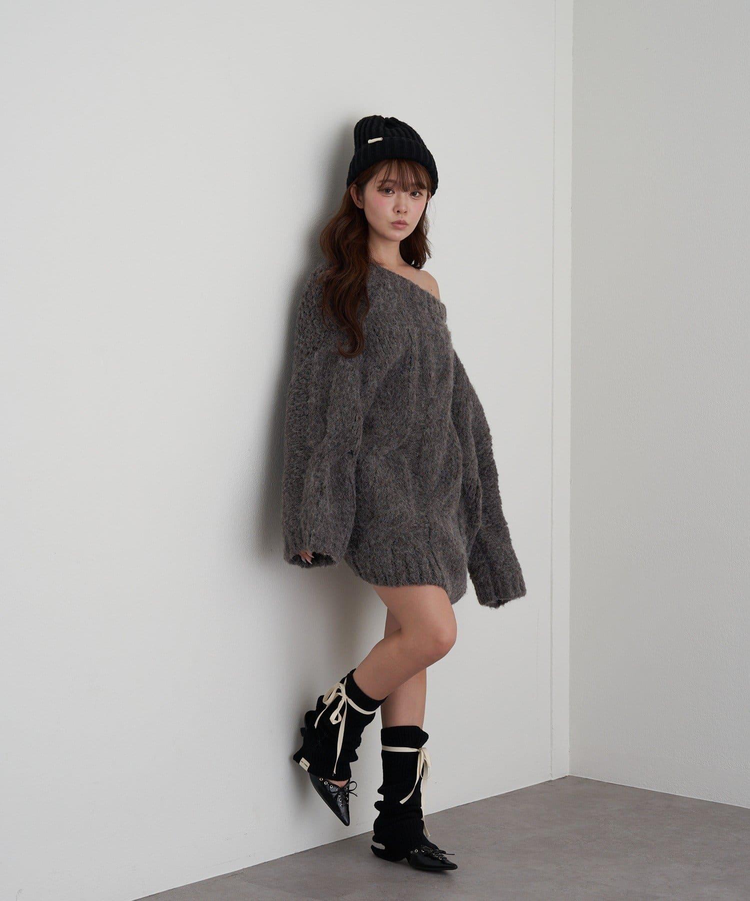 立體的針織面料為簡單的服飾增添了點睛之筆。