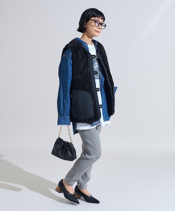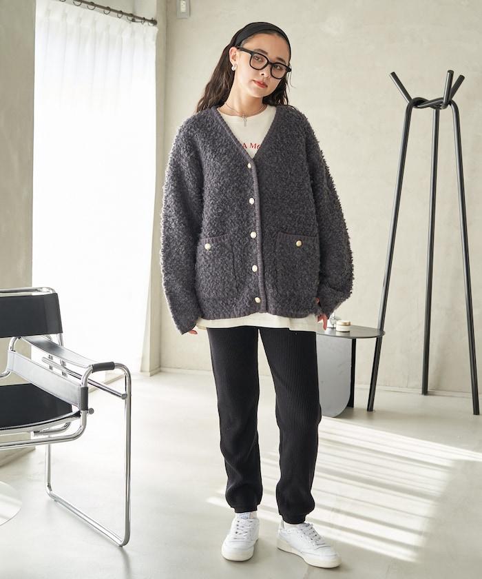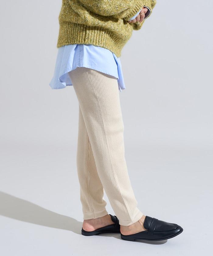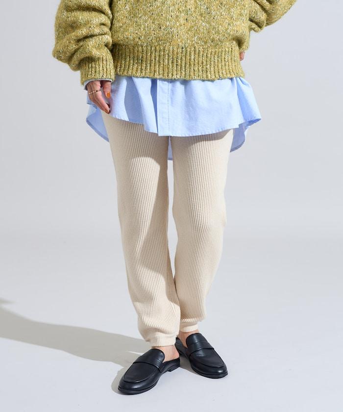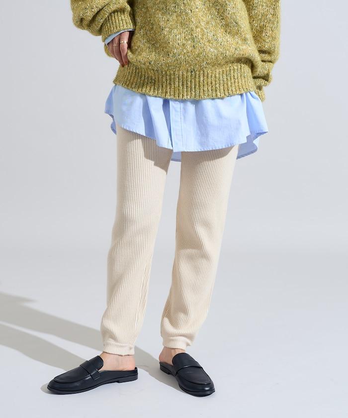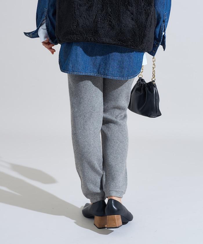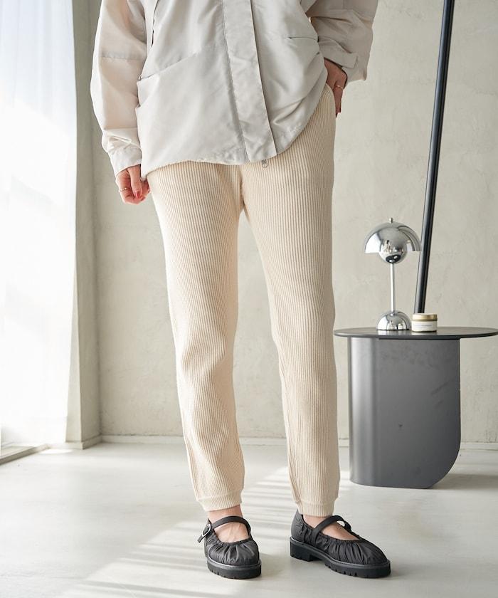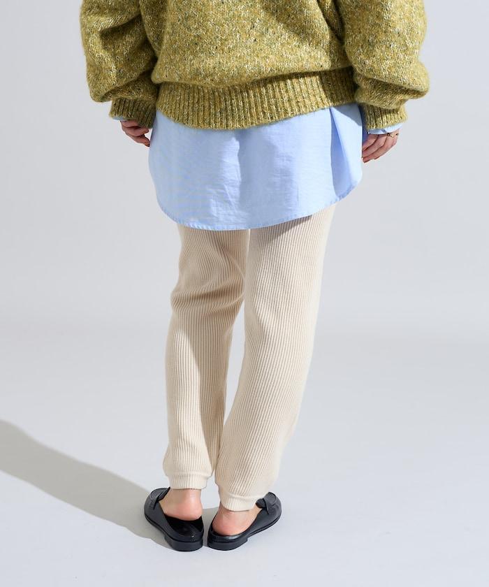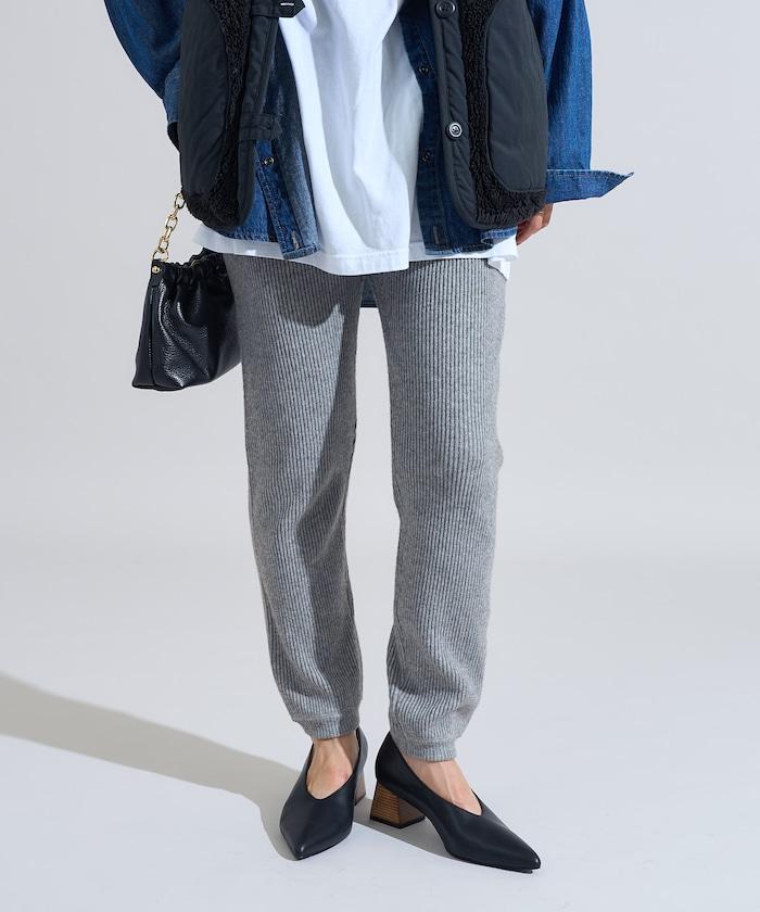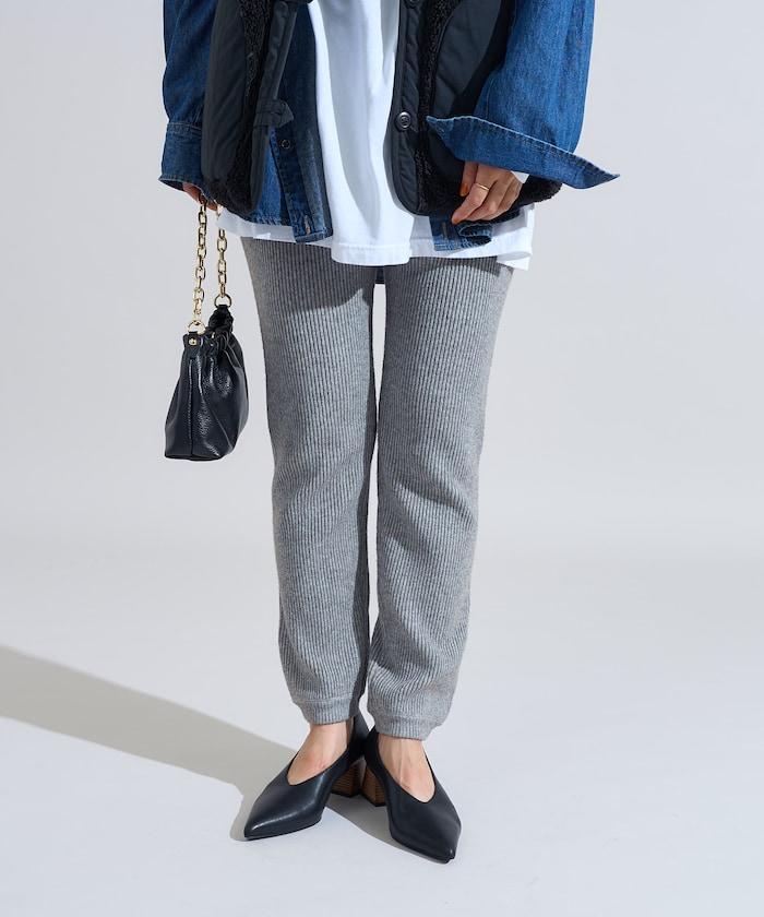 寬鬆的羅紋針織長褲,手感舒適迷人。