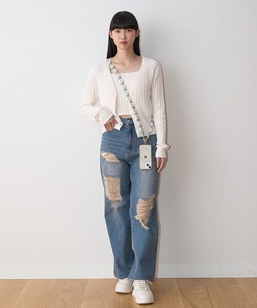 除了與休閒褲、喇叭褲等搭配美觀外,與牛仔褲、寬下裝等休閒單品搭配,成熟的造型會給你帶來舒適的氛圍。如果將開衫👍下面的紐扣解開,就能打造出收腰的輪廓。