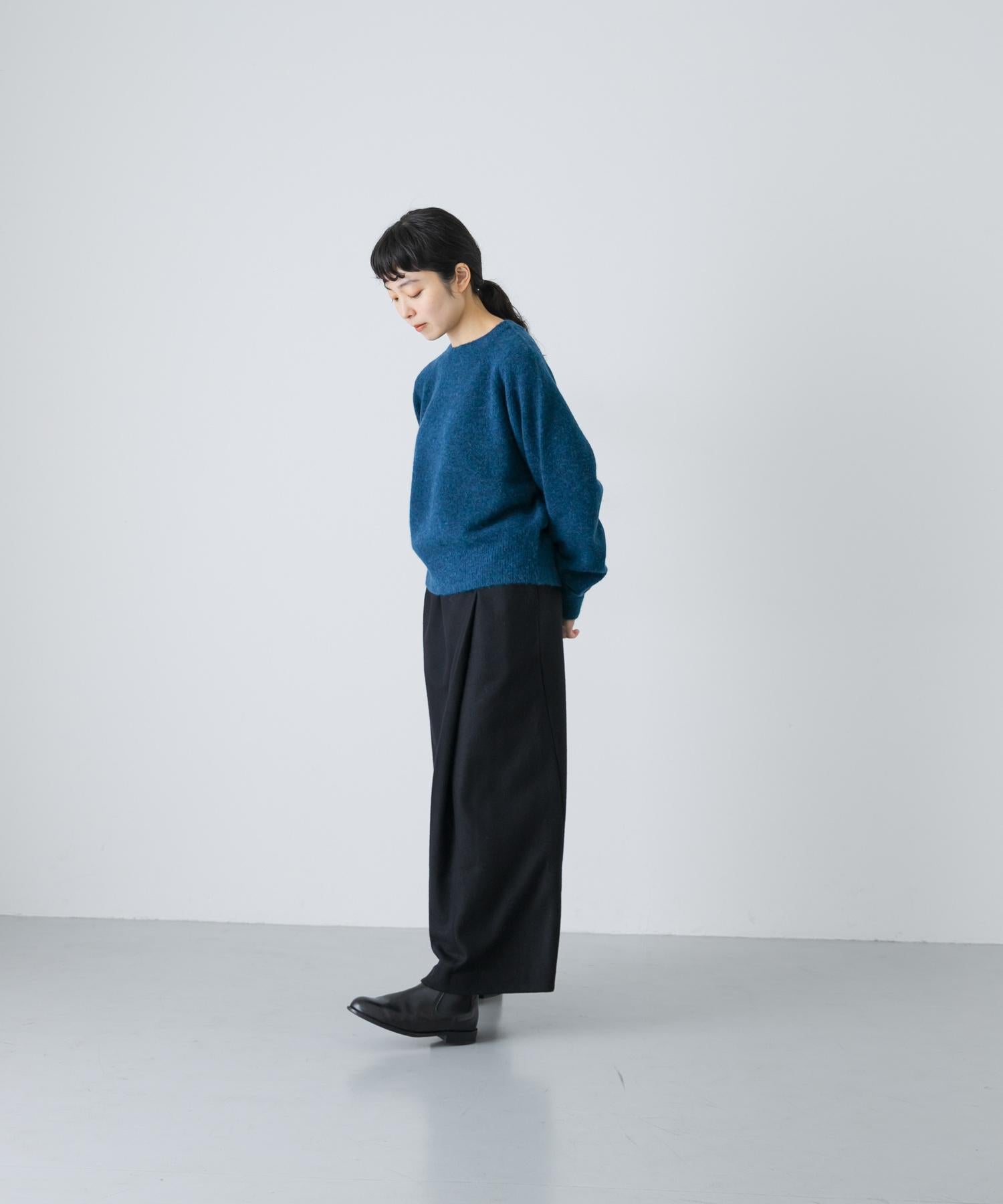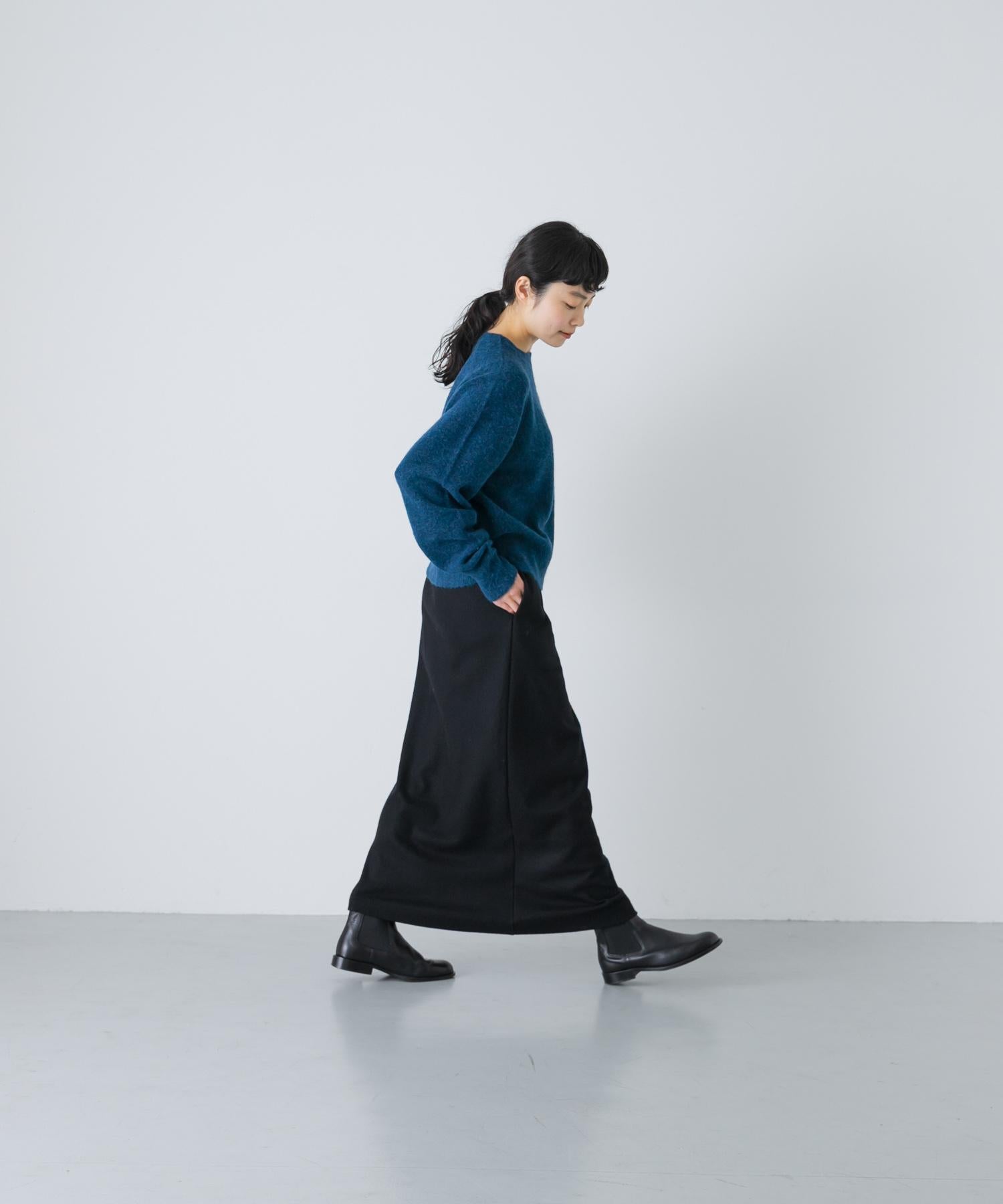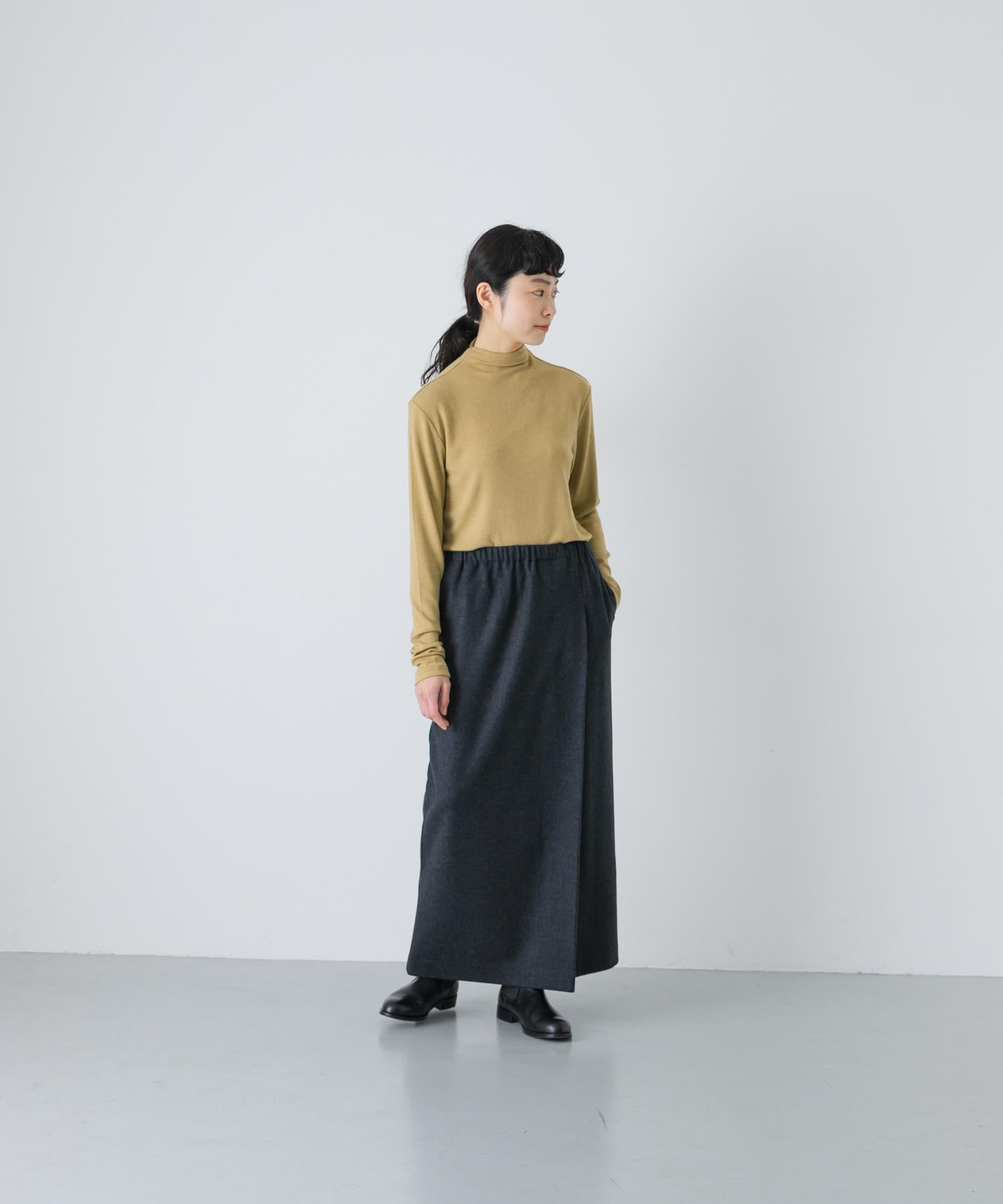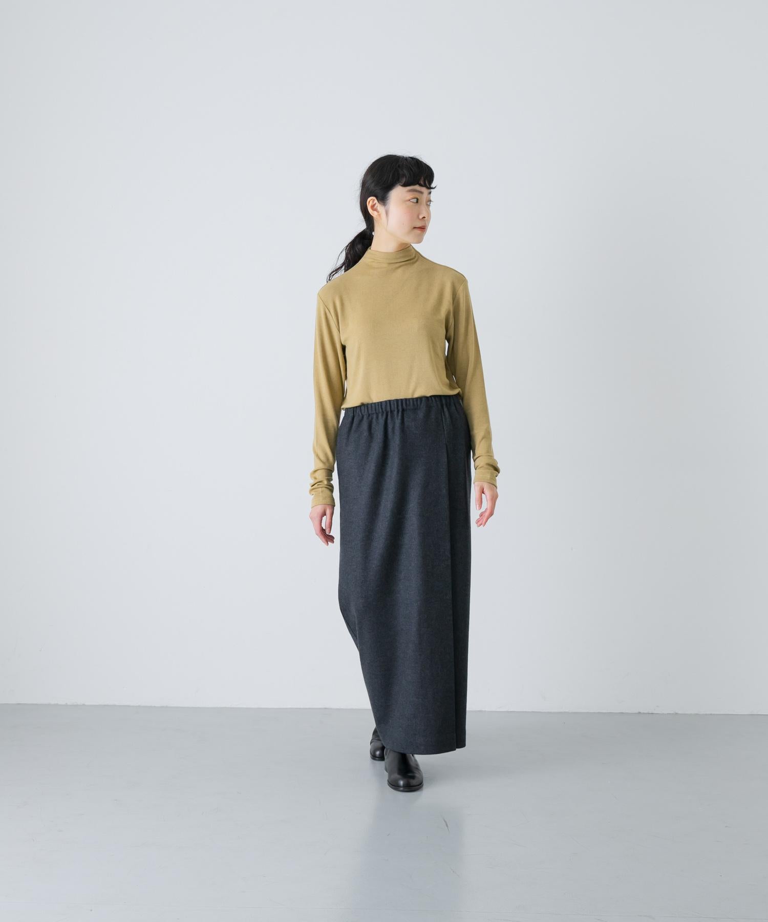 此款採用裹身式設計,左側有褶襉。簡潔的下裝搭配冬季造型。重點是柔和的 I 字型設計,寬鬆適中,又不失時尚感。建議成人搭配。光滑的針織面料質地略顯臃腫,即使在寒冷的天氣裡也能穿著保暖。可水洗的面料可以在家清洗,這是一大亮點。裁剪縫製的面料彈性柔和,穿著方便,腳感舒適。您可以將它與其他上衣搭配在一起,盡享搭配樂趣。
