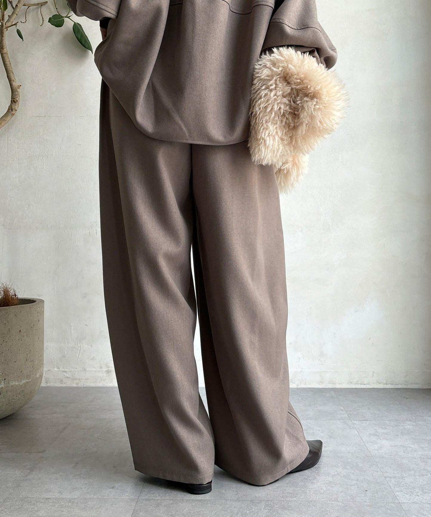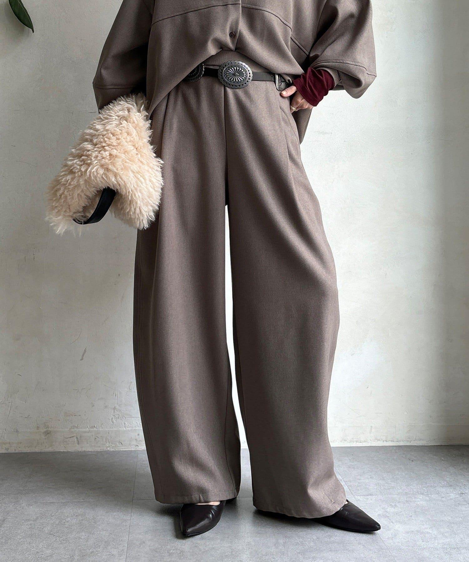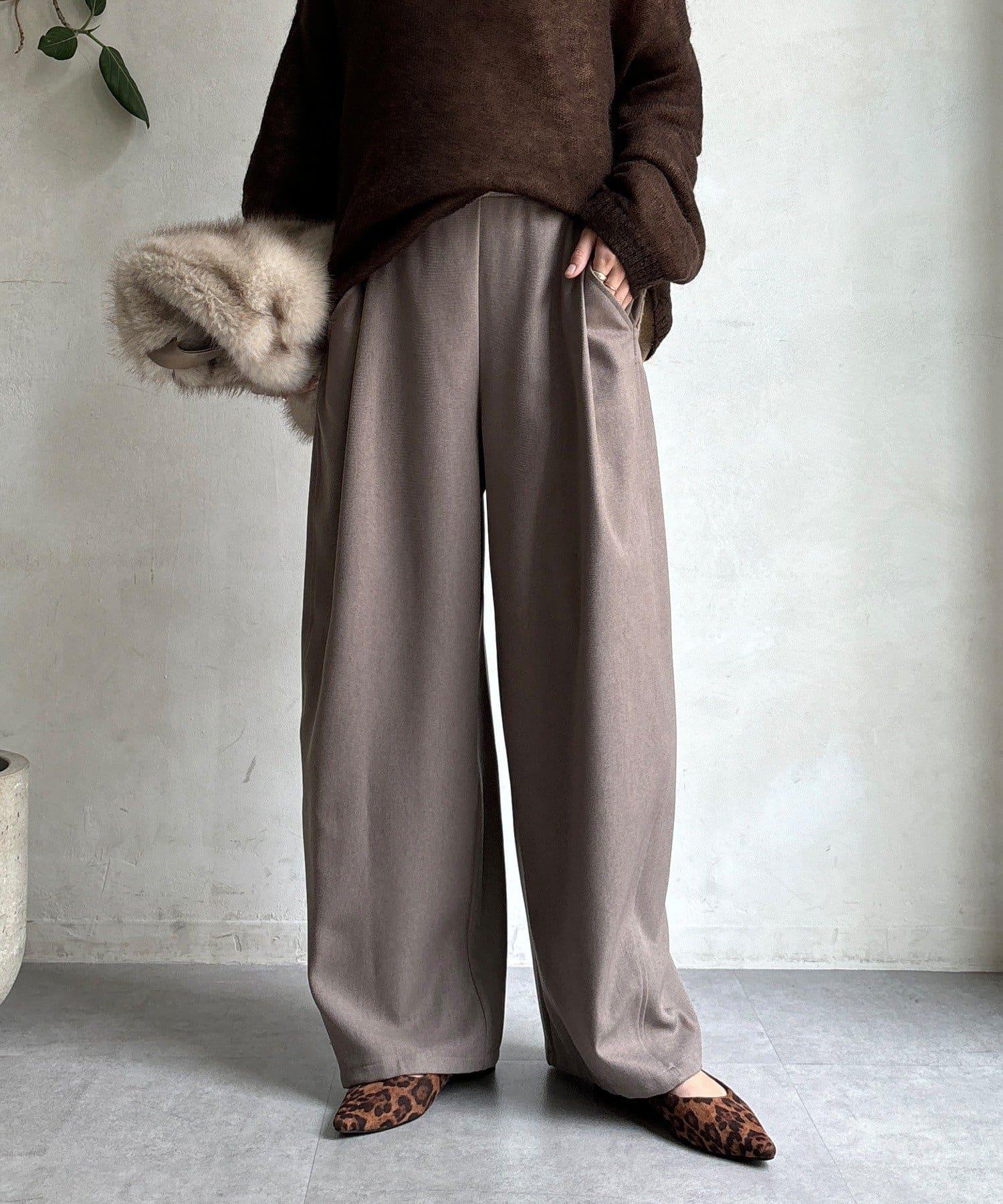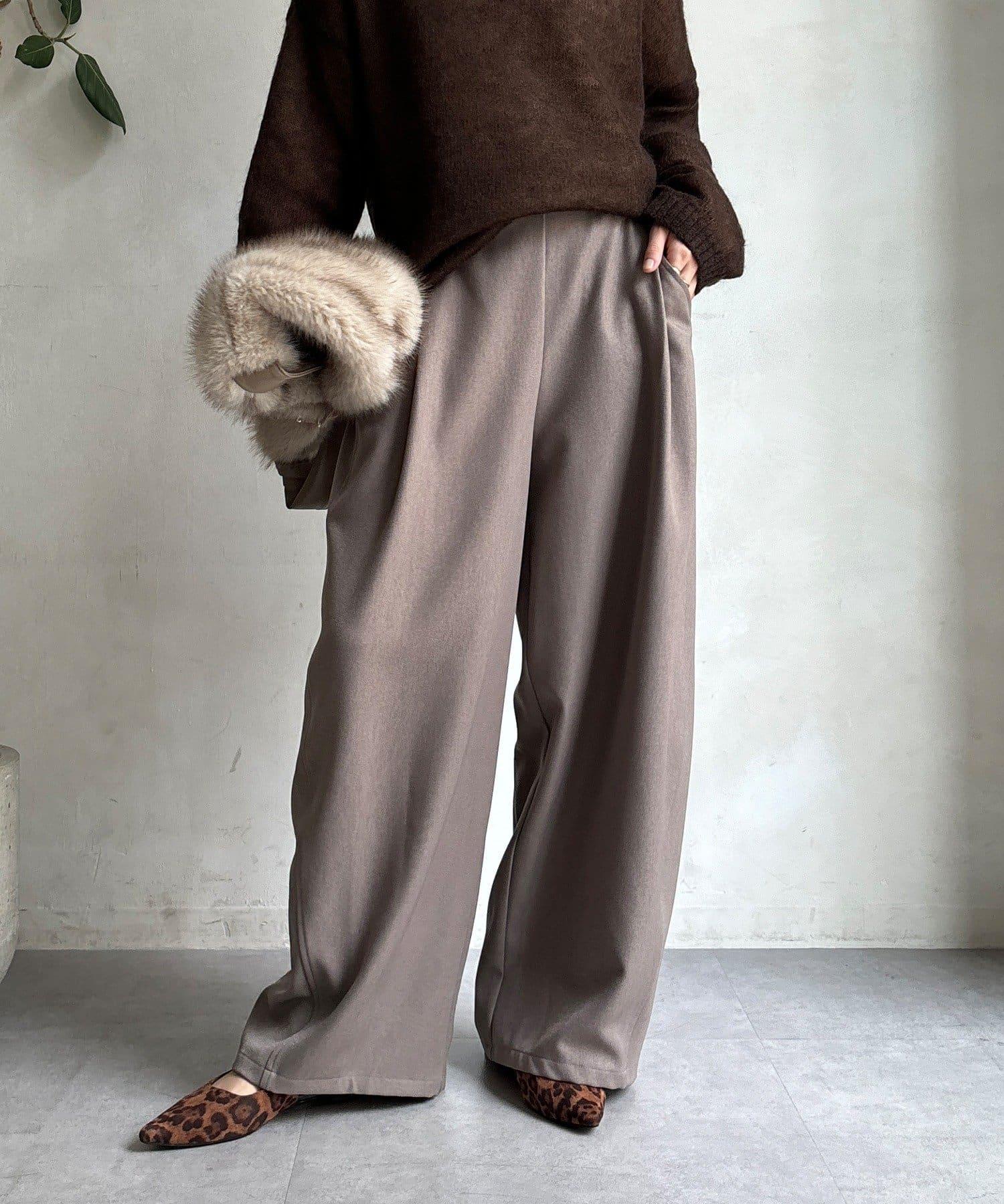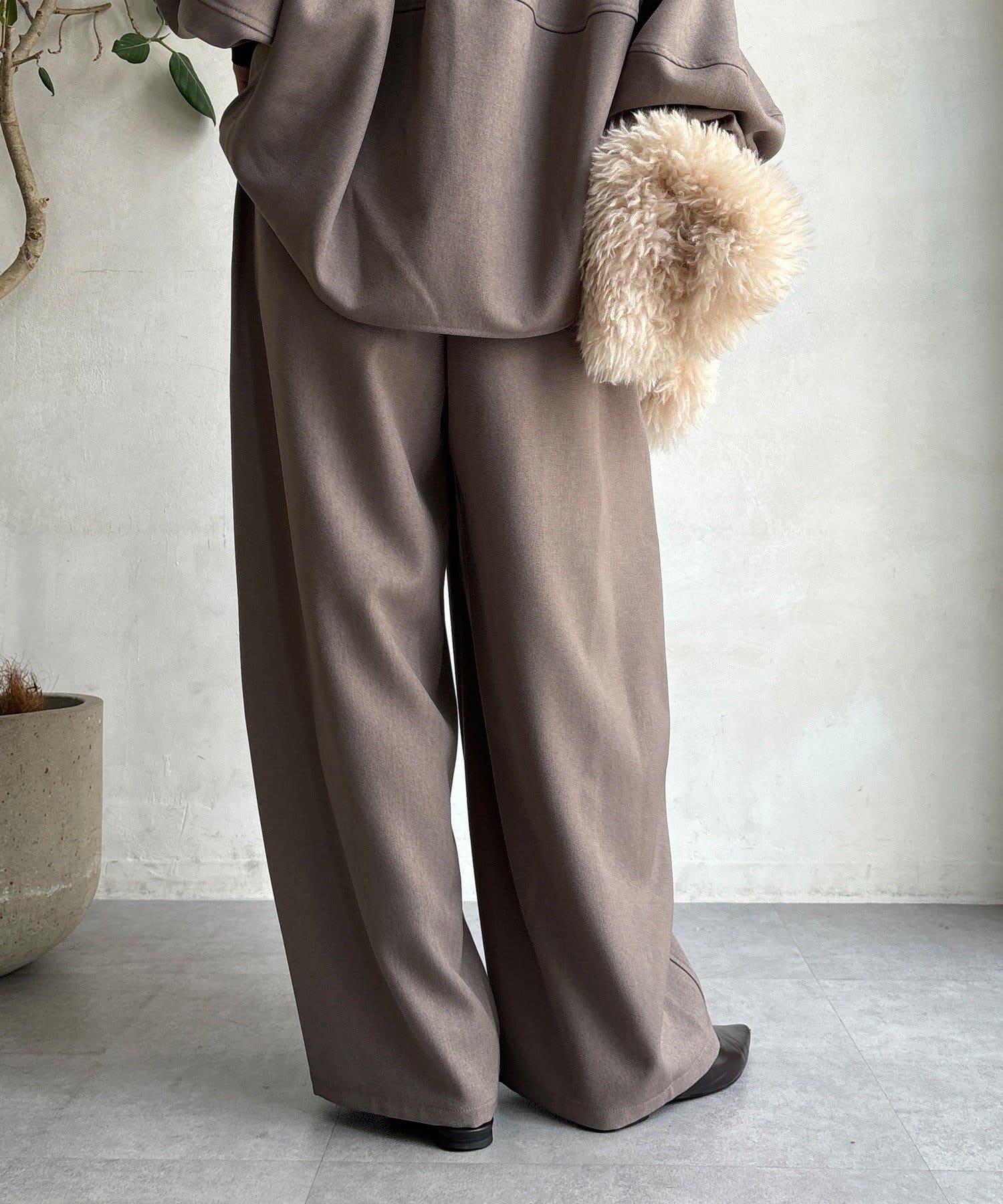 羊毛感前褶休閒褲