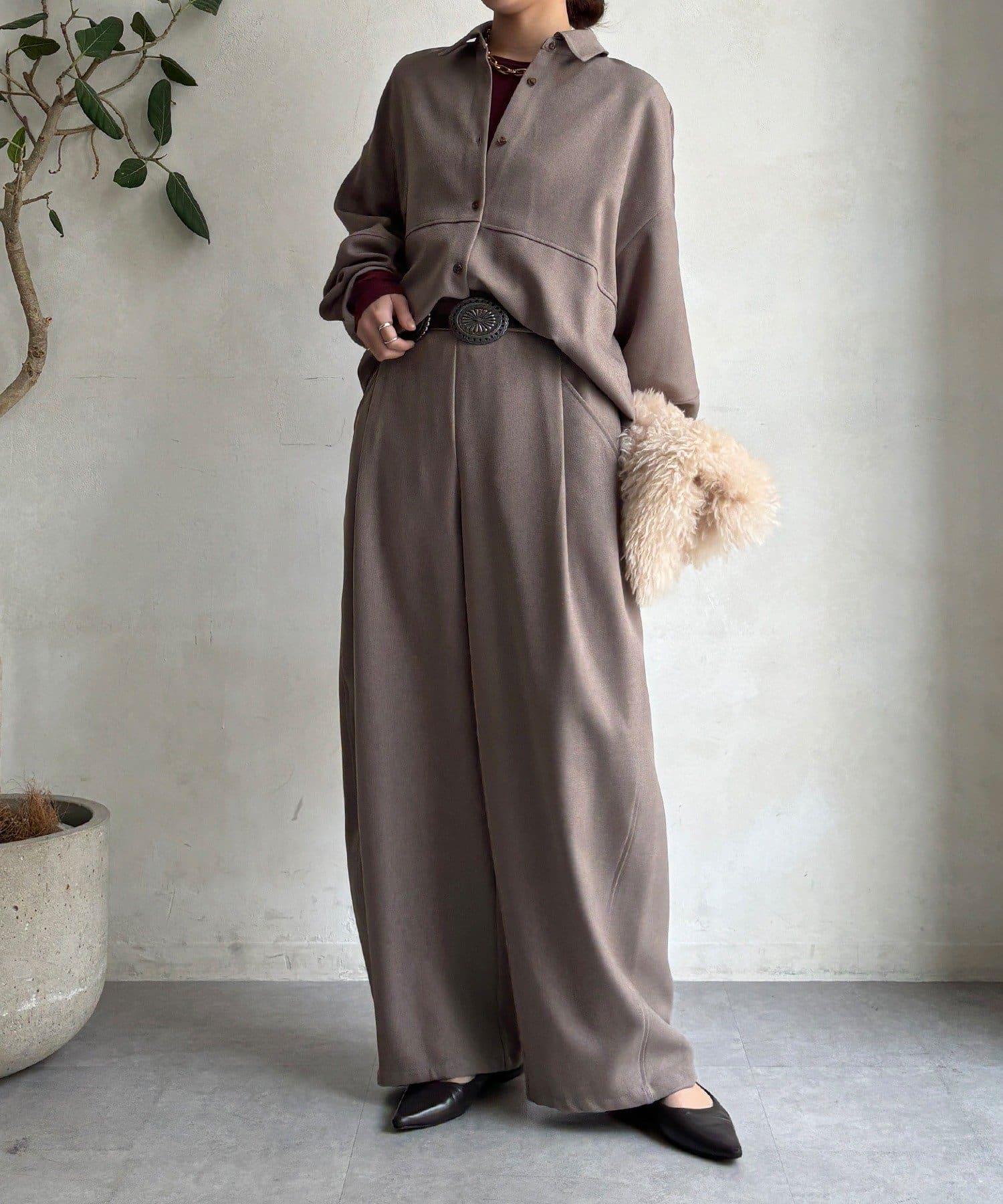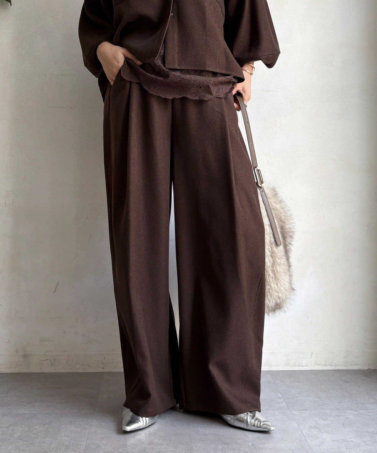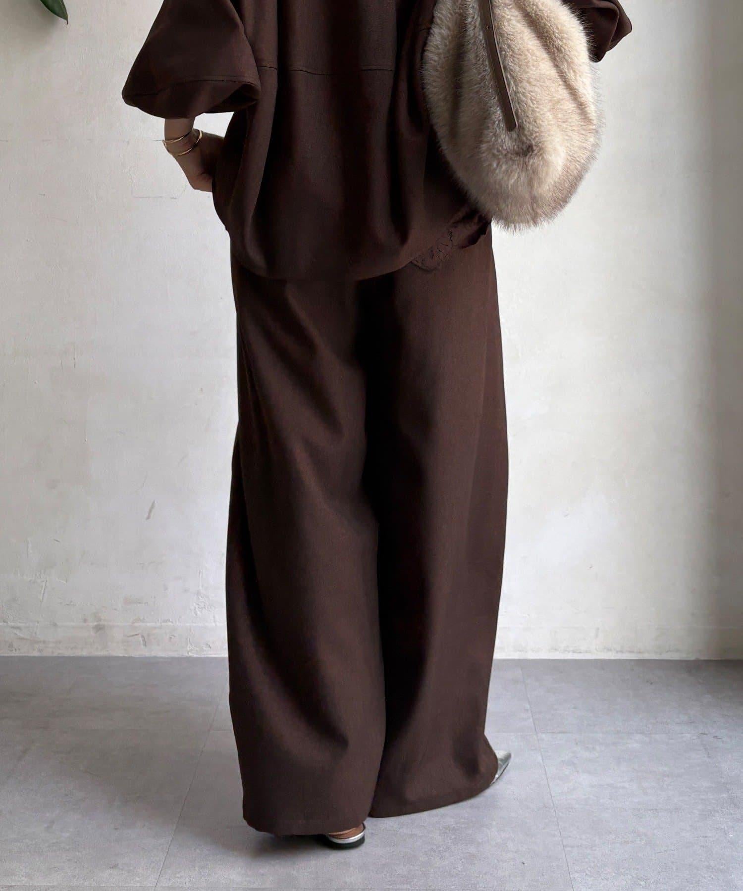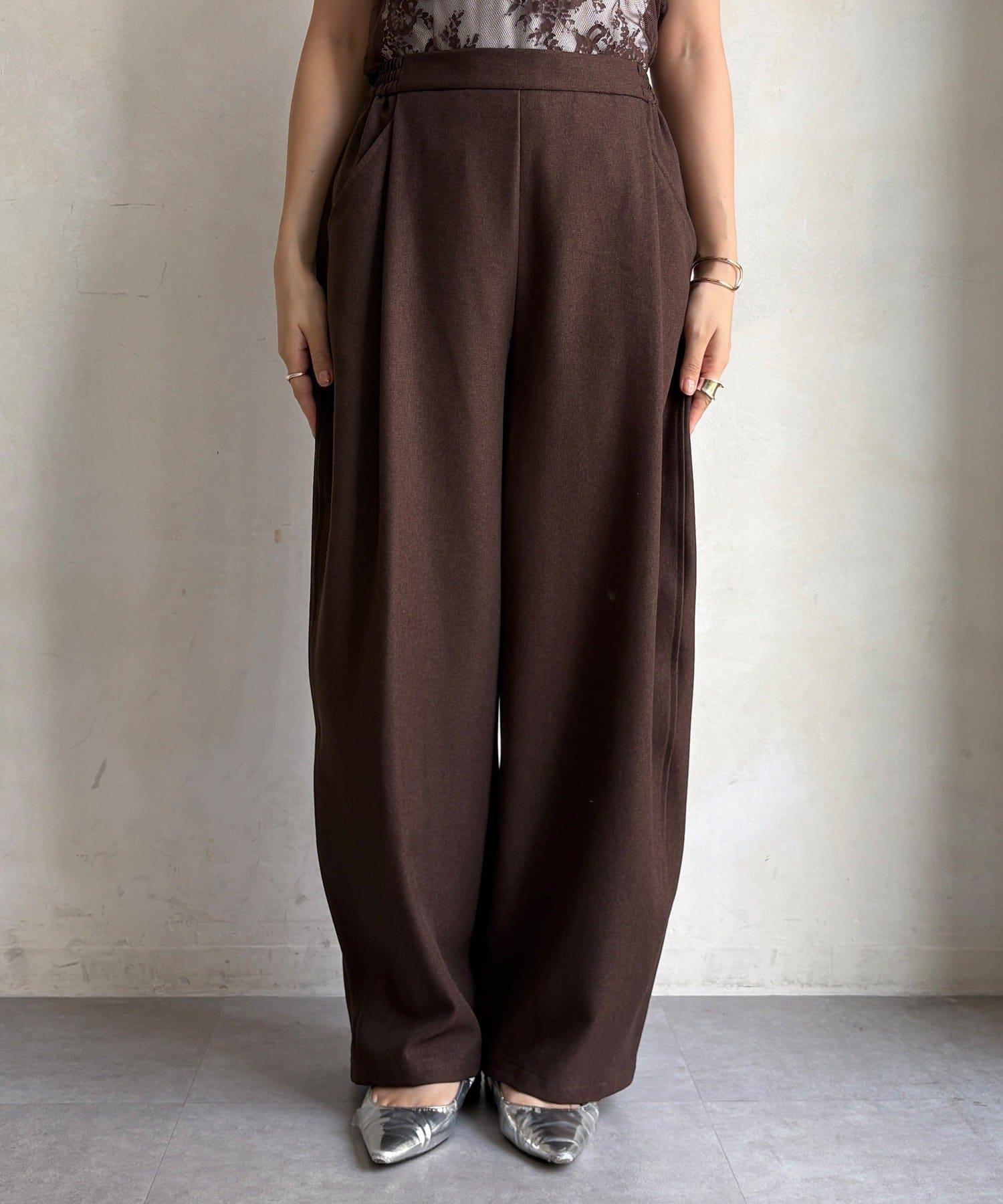 羊毛感前褶休閒褲