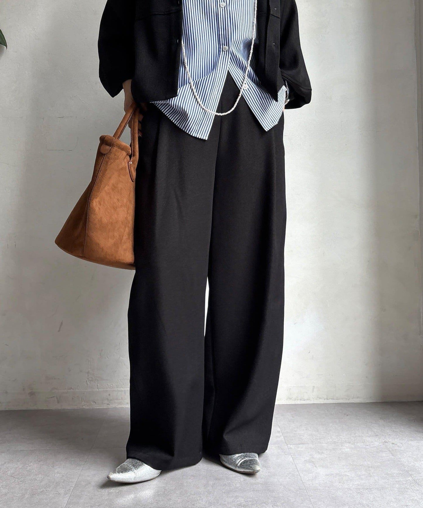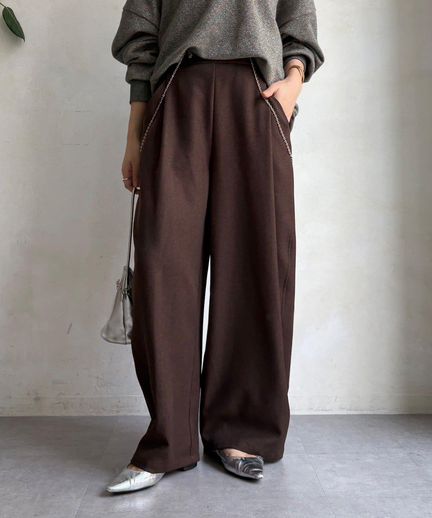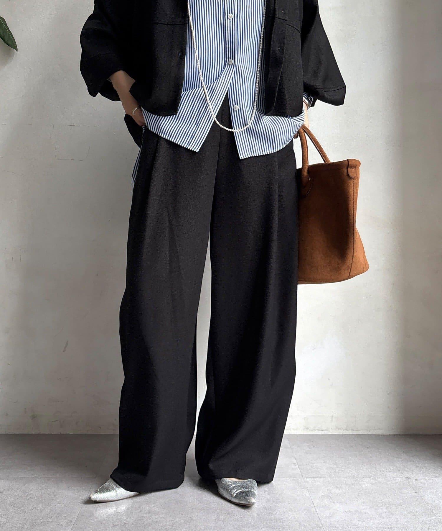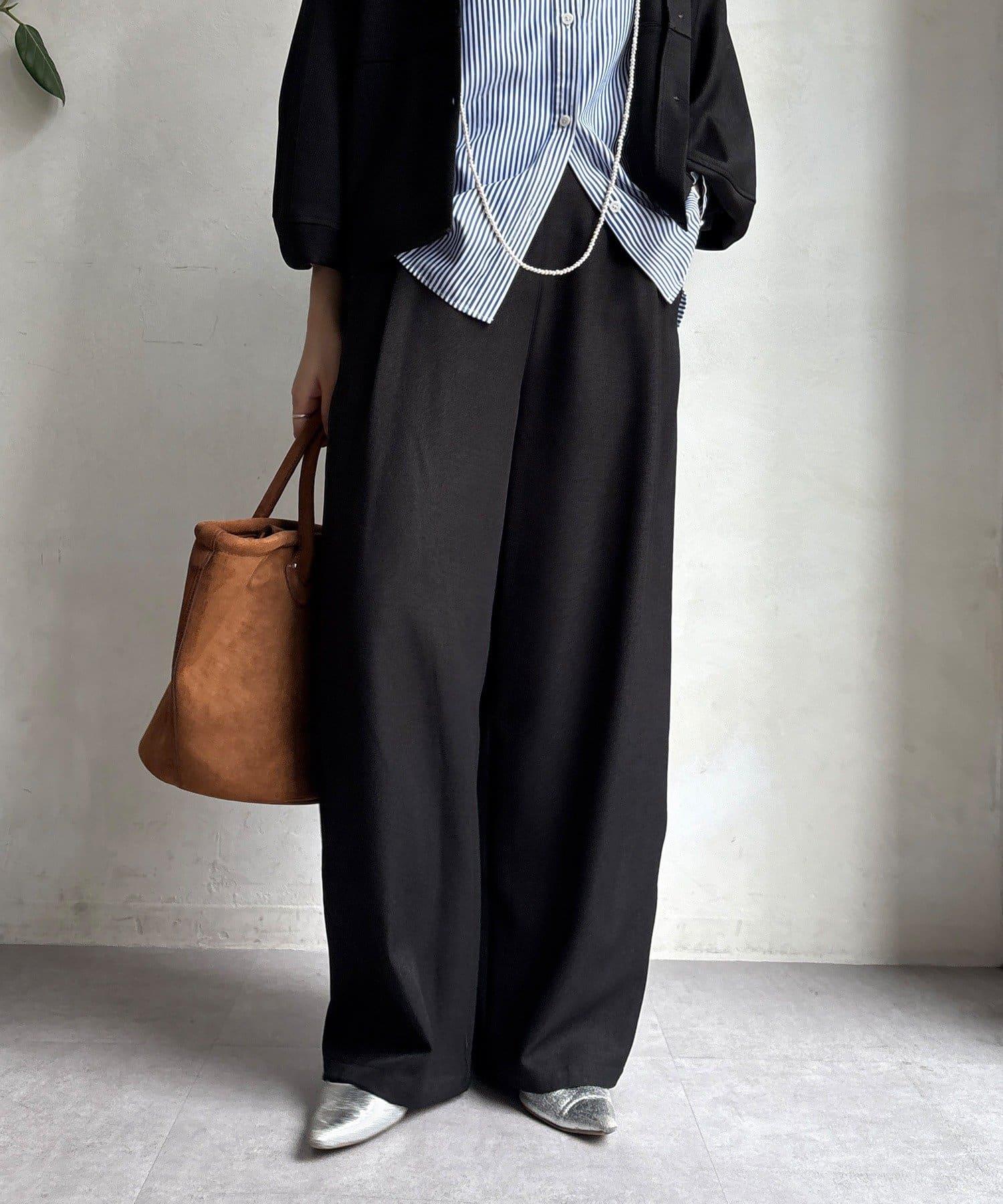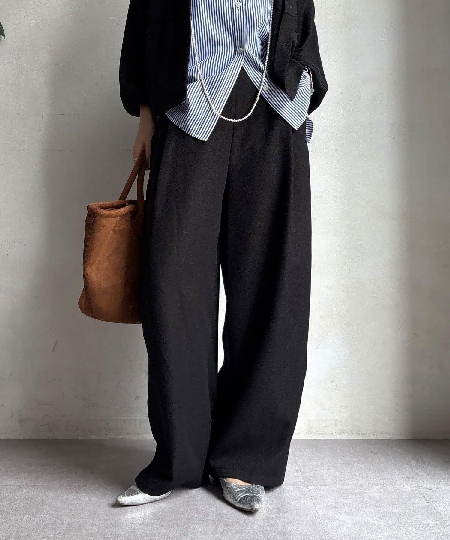 羊毛感前褶休閒褲
