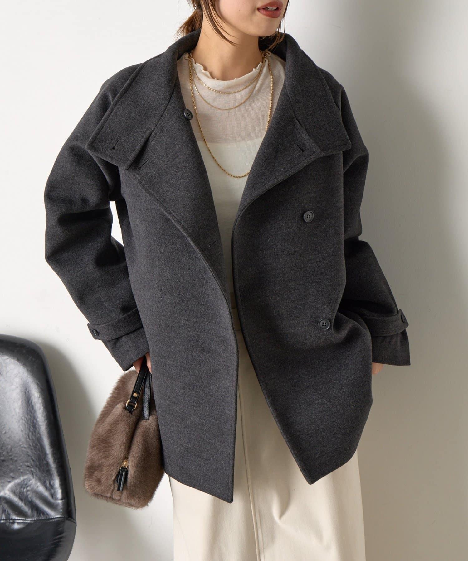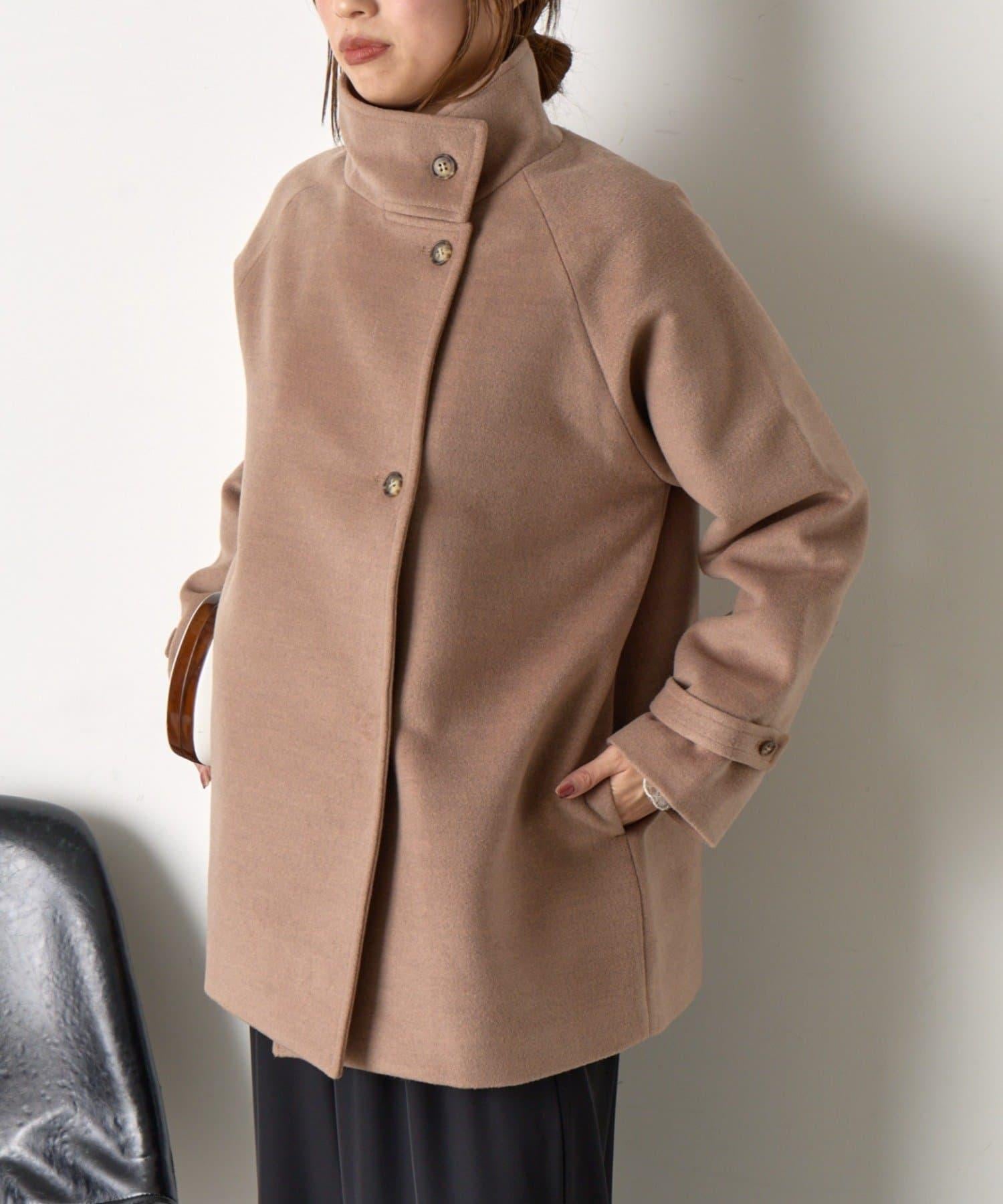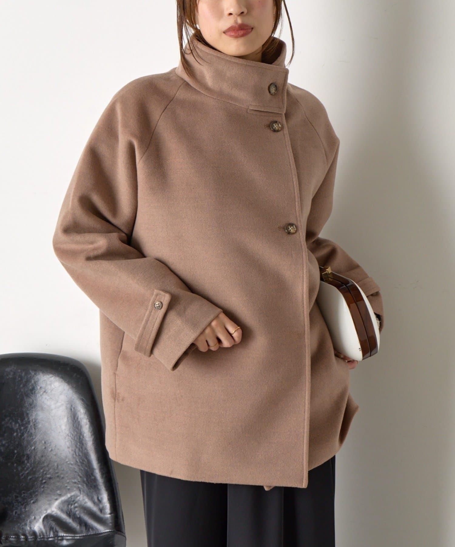 立領大衣採用奢華的仿毛面料製成。