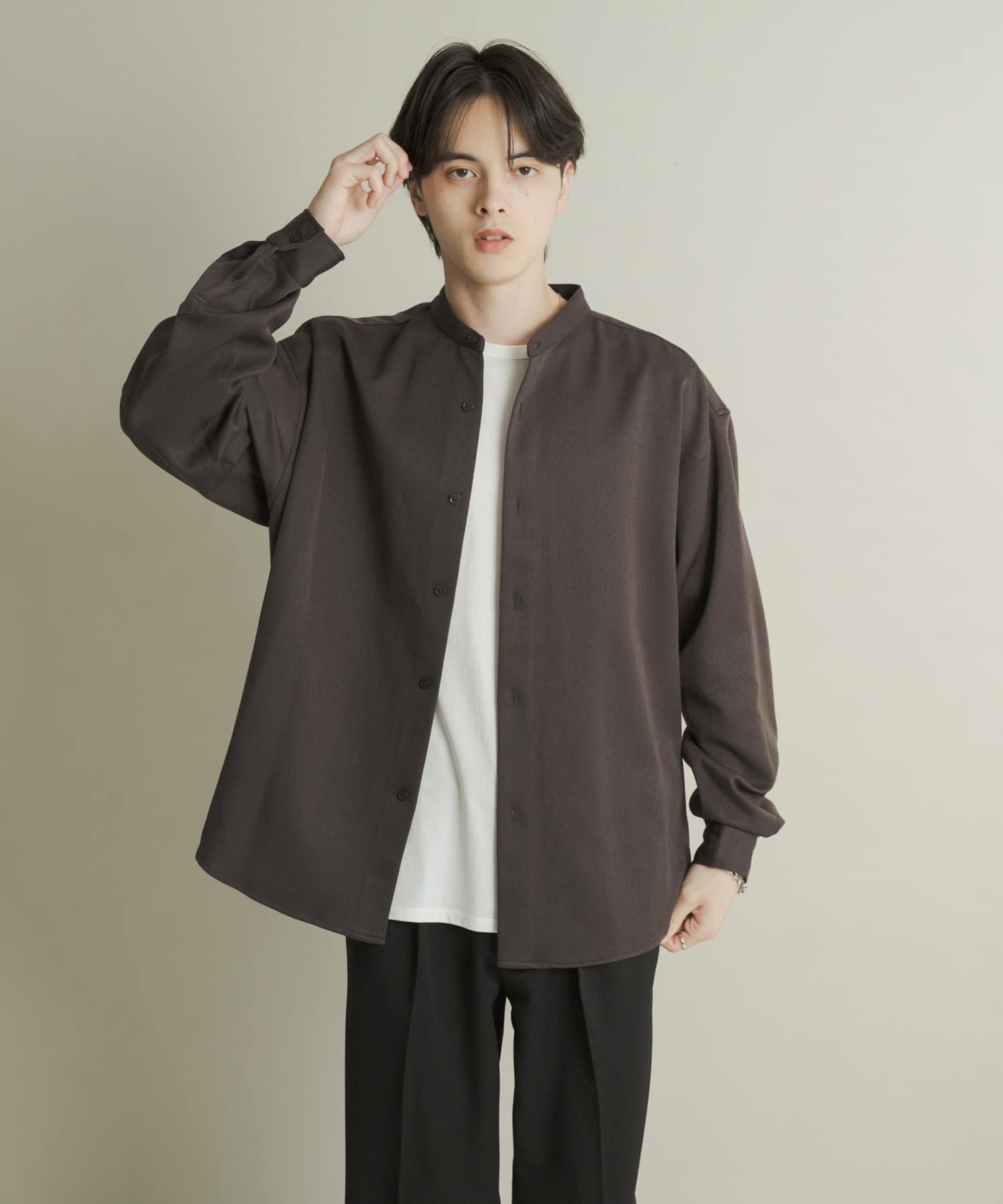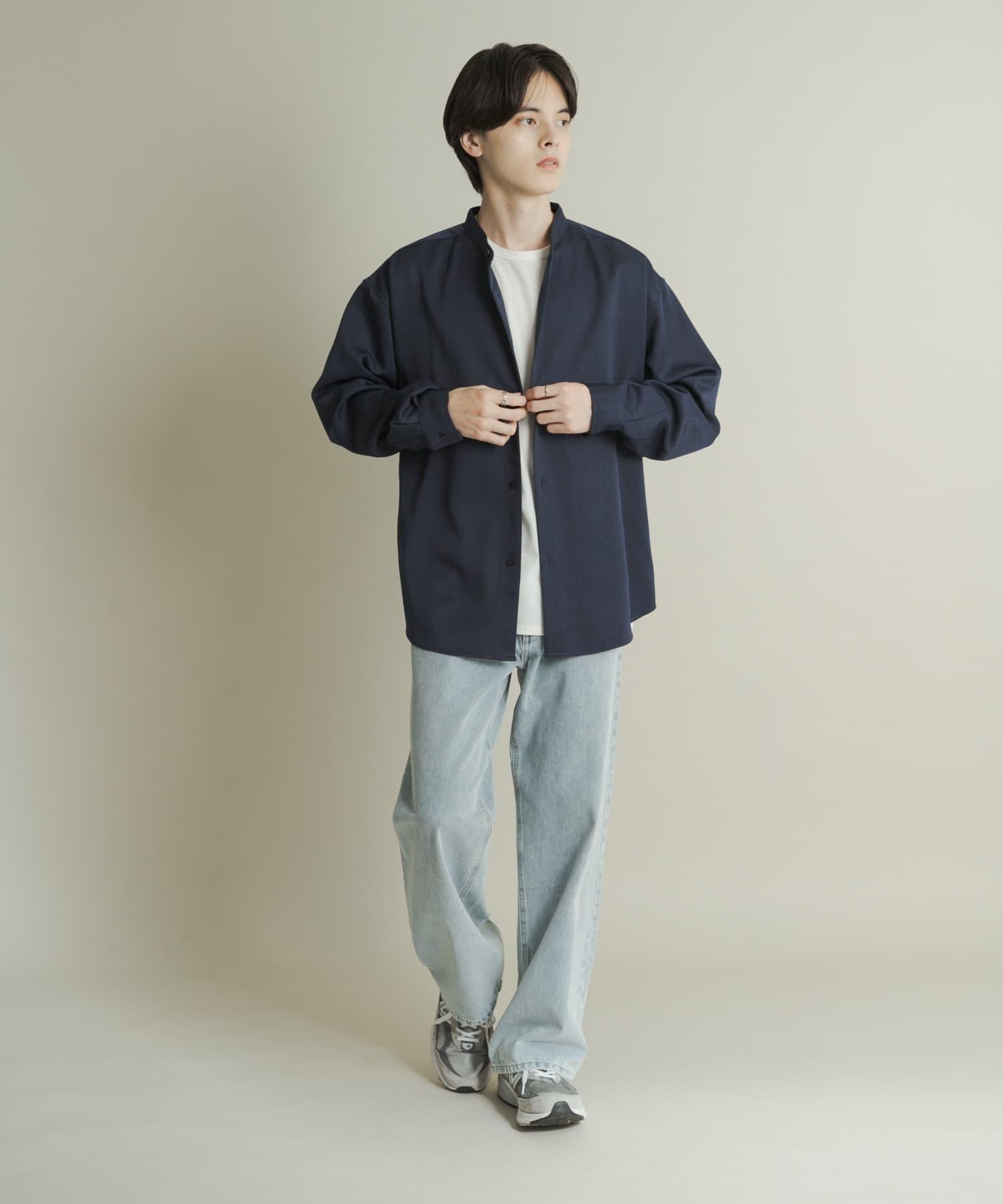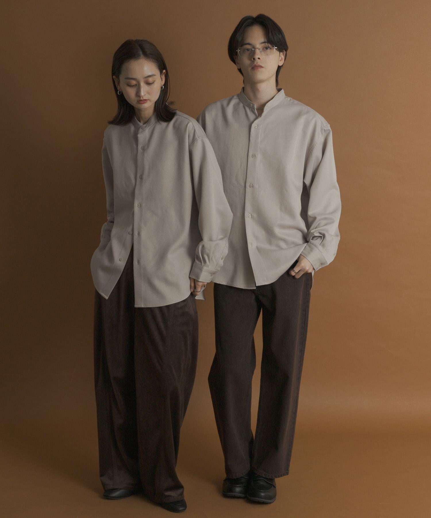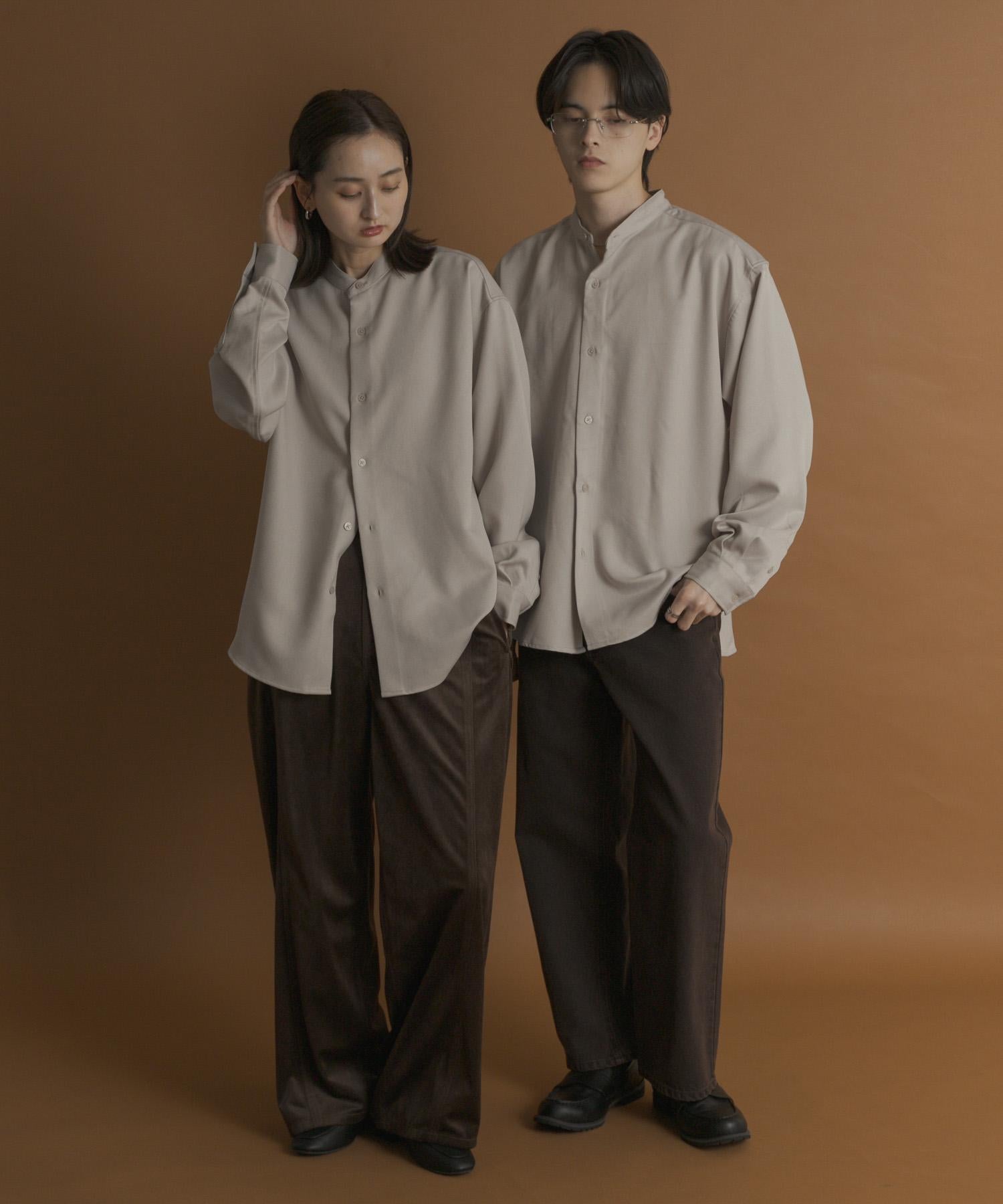 羊毛感立領寬鬆襯衫
