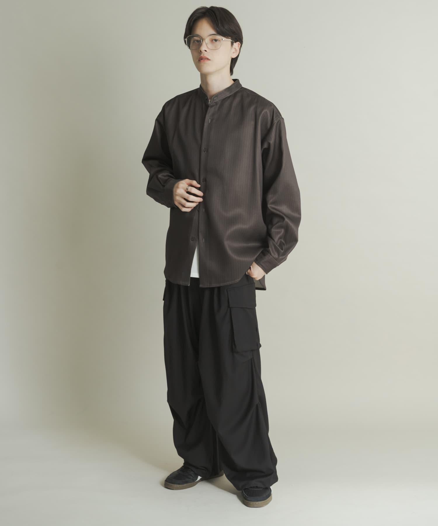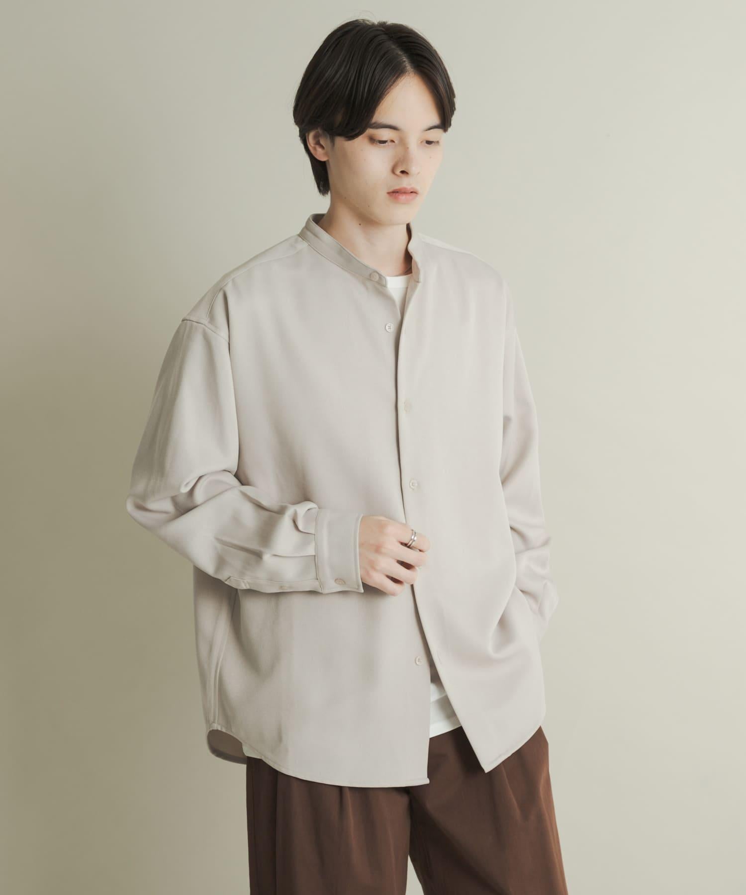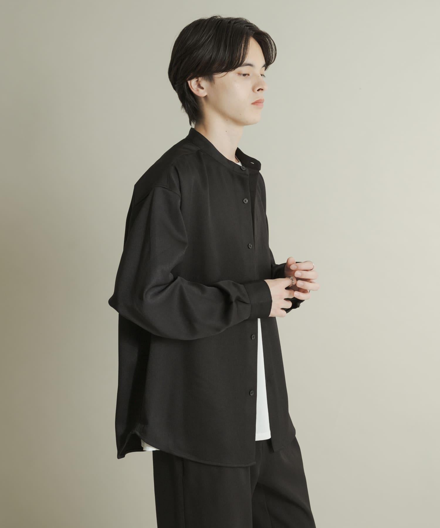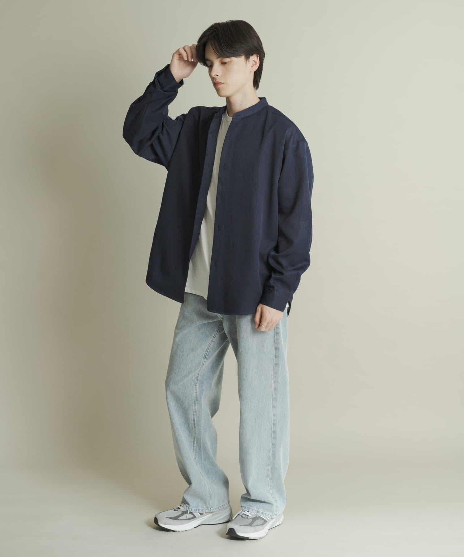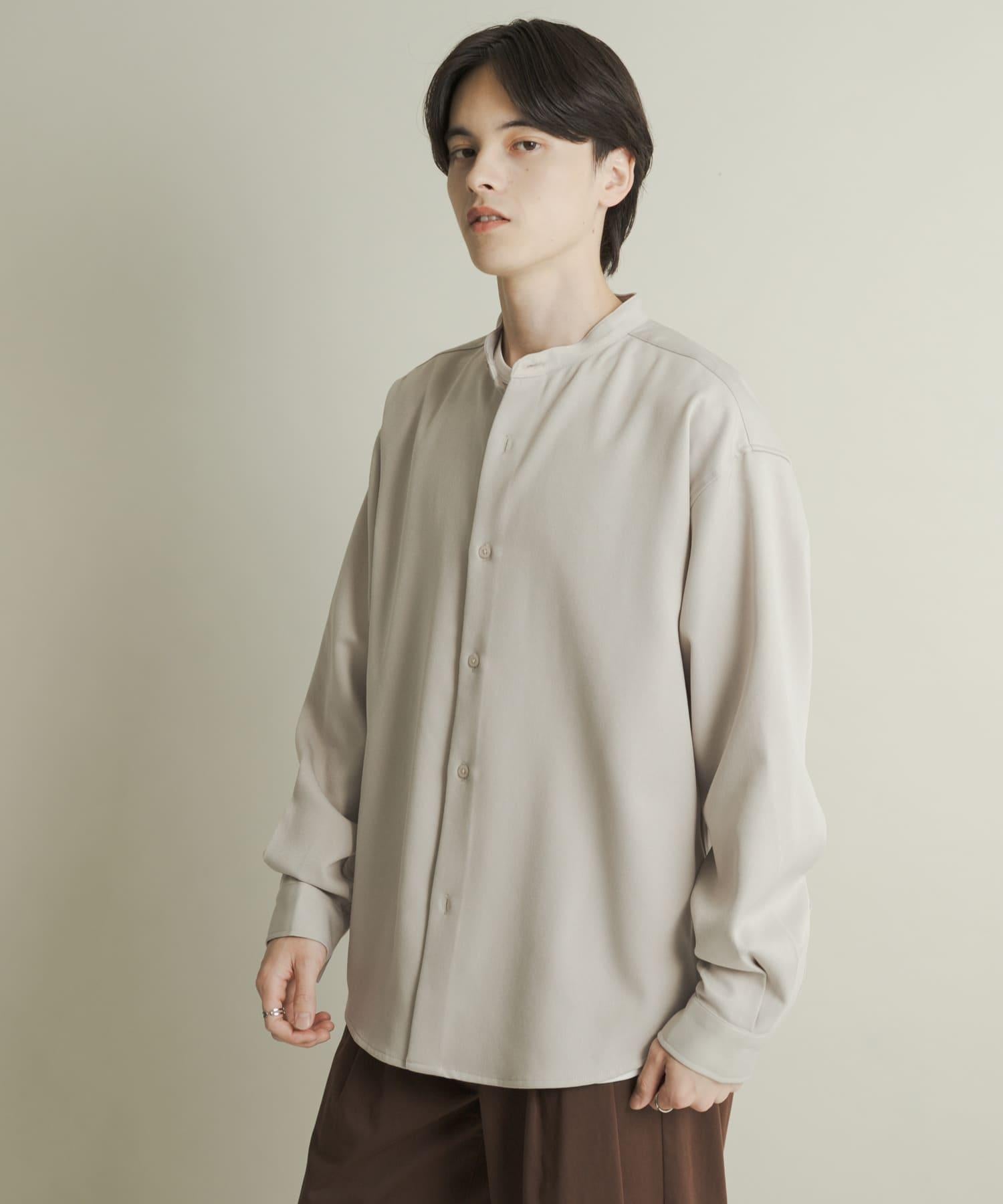 羊毛感立領寬鬆襯衫