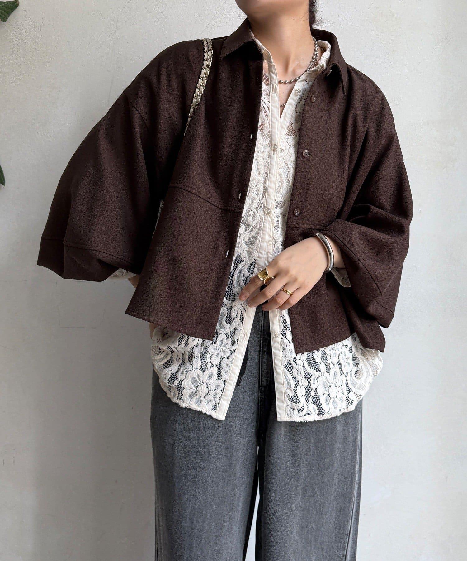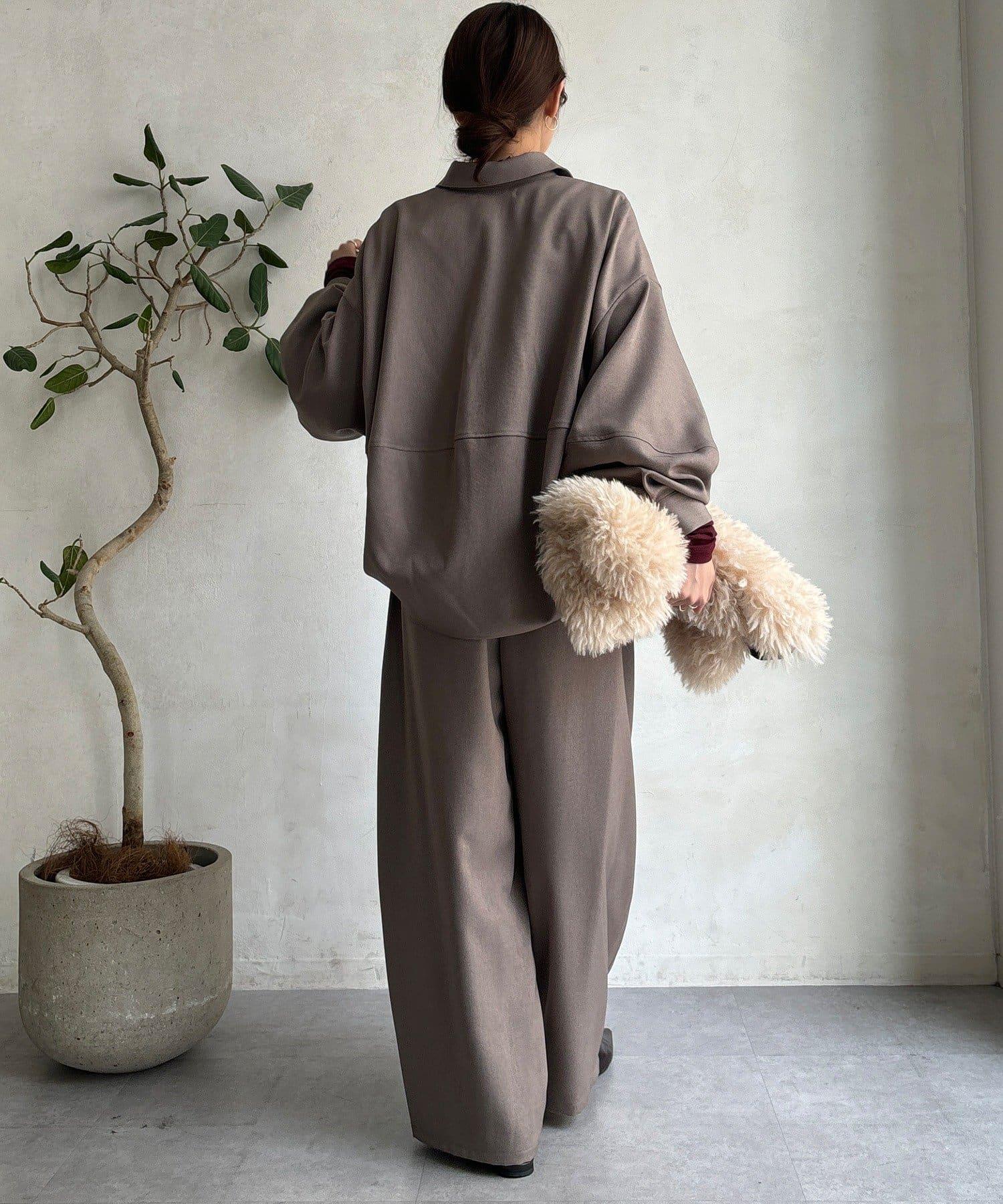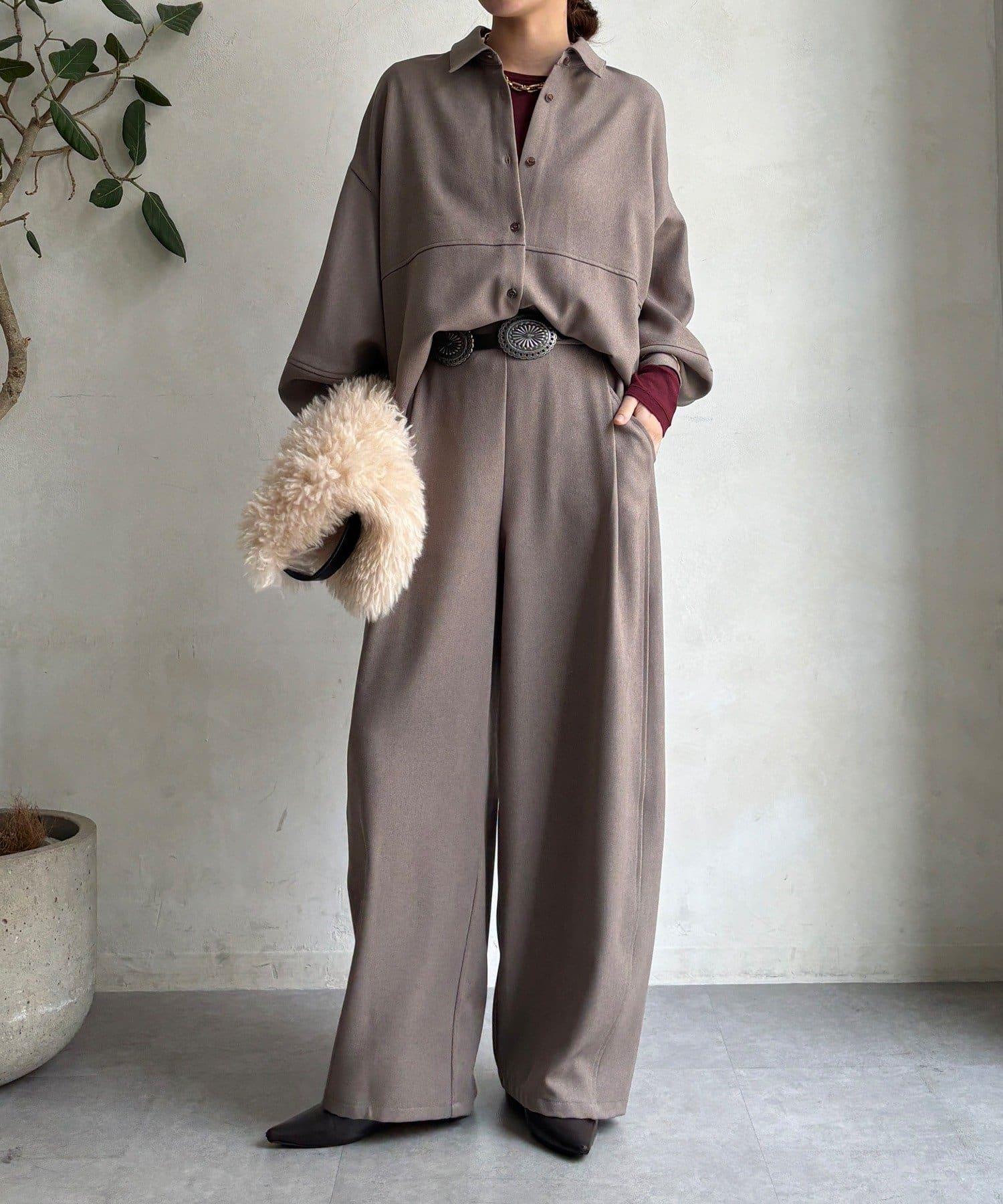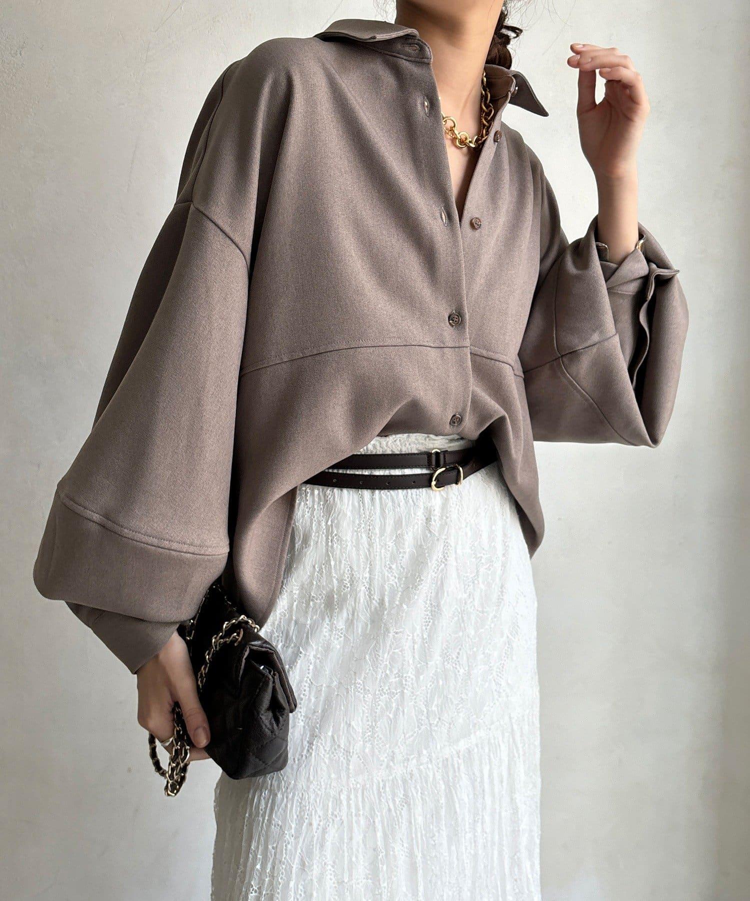 羊毛感繭型襯衫