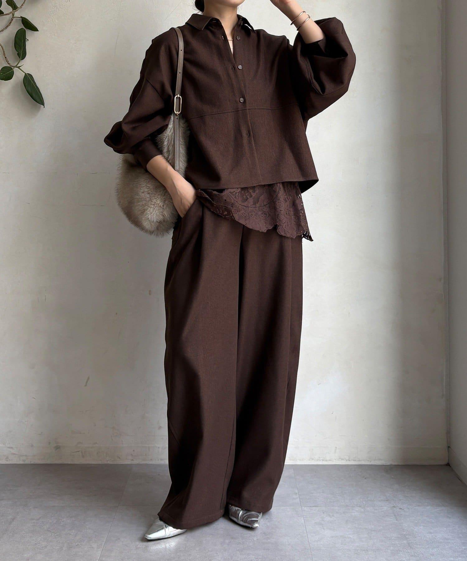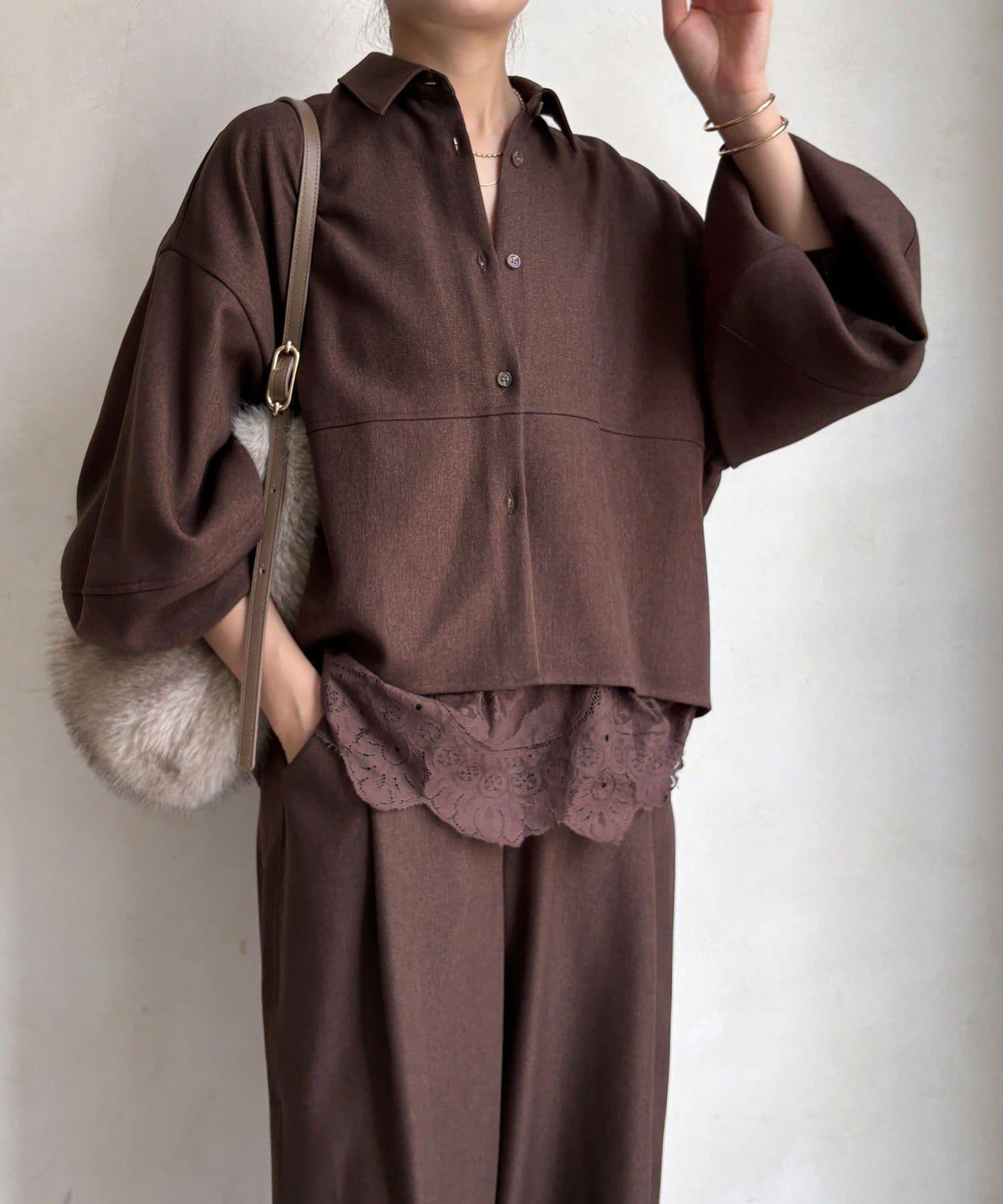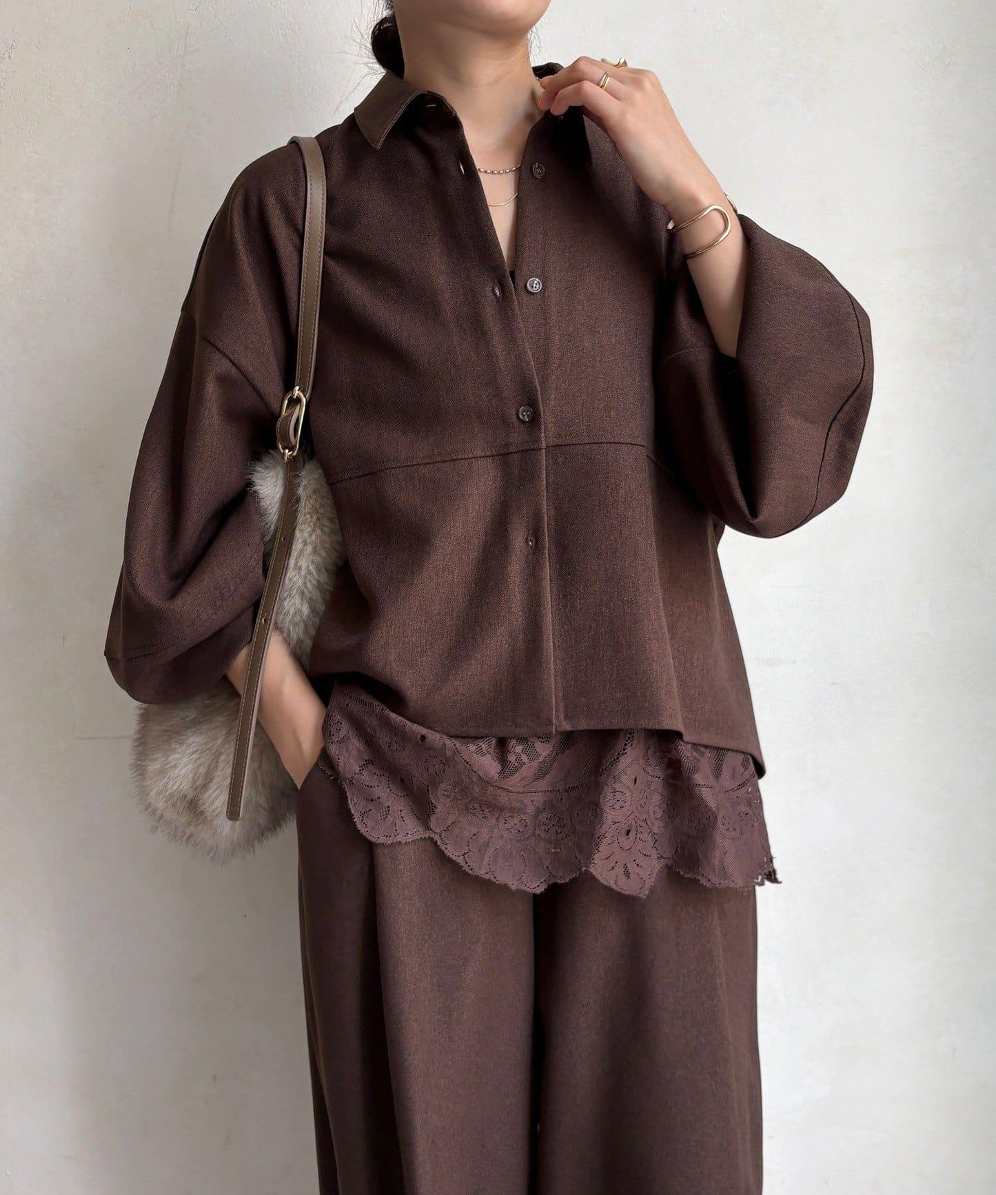 羊毛感繭型襯衫