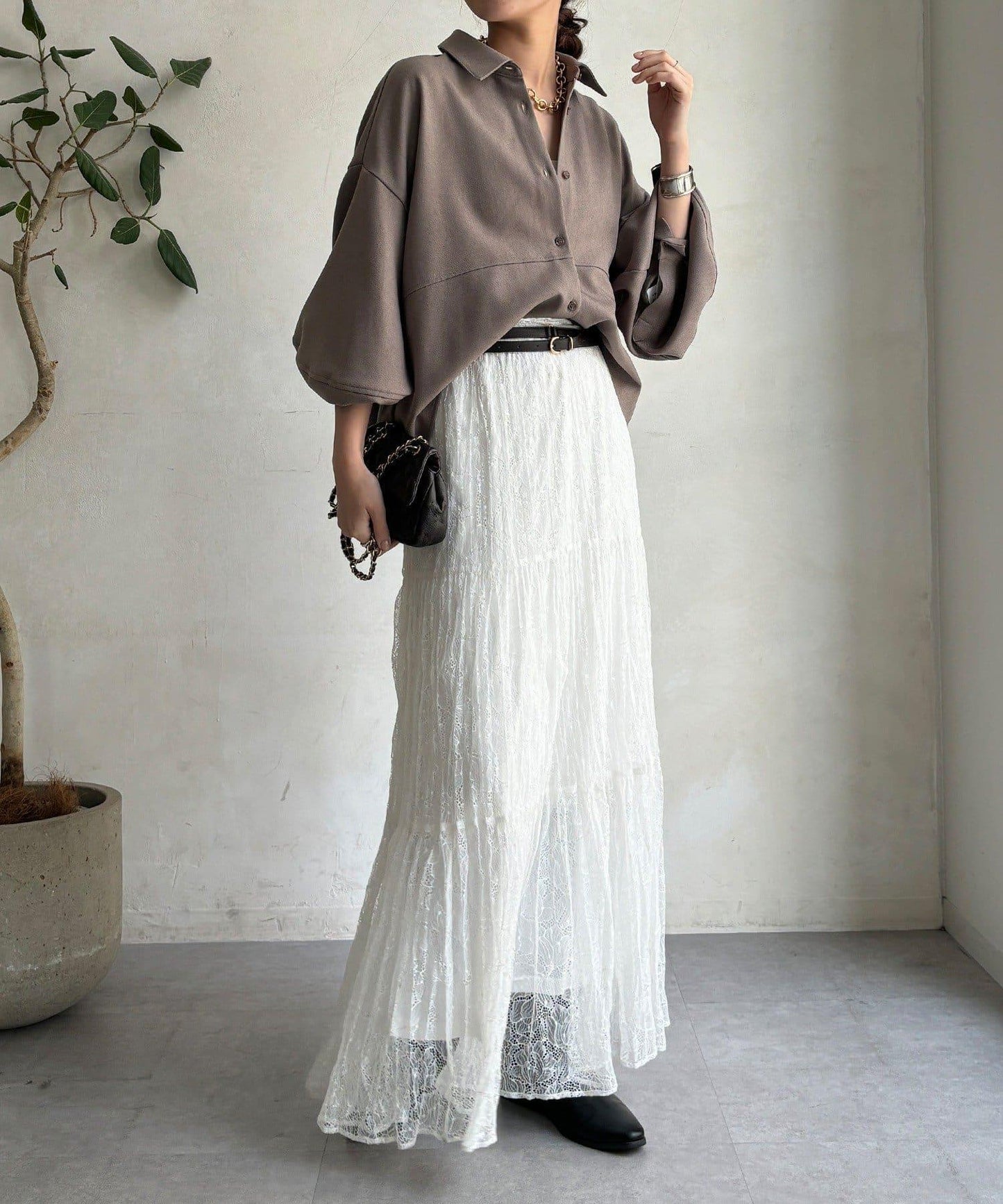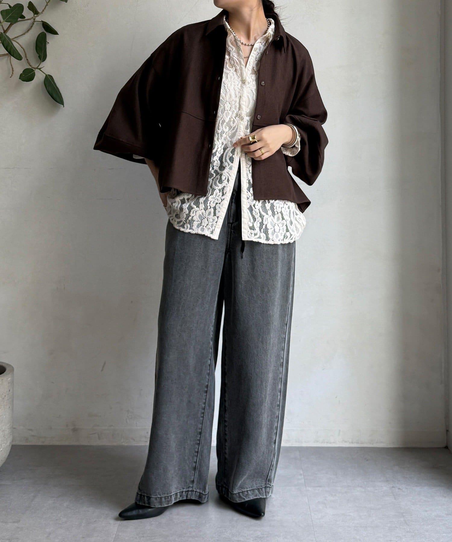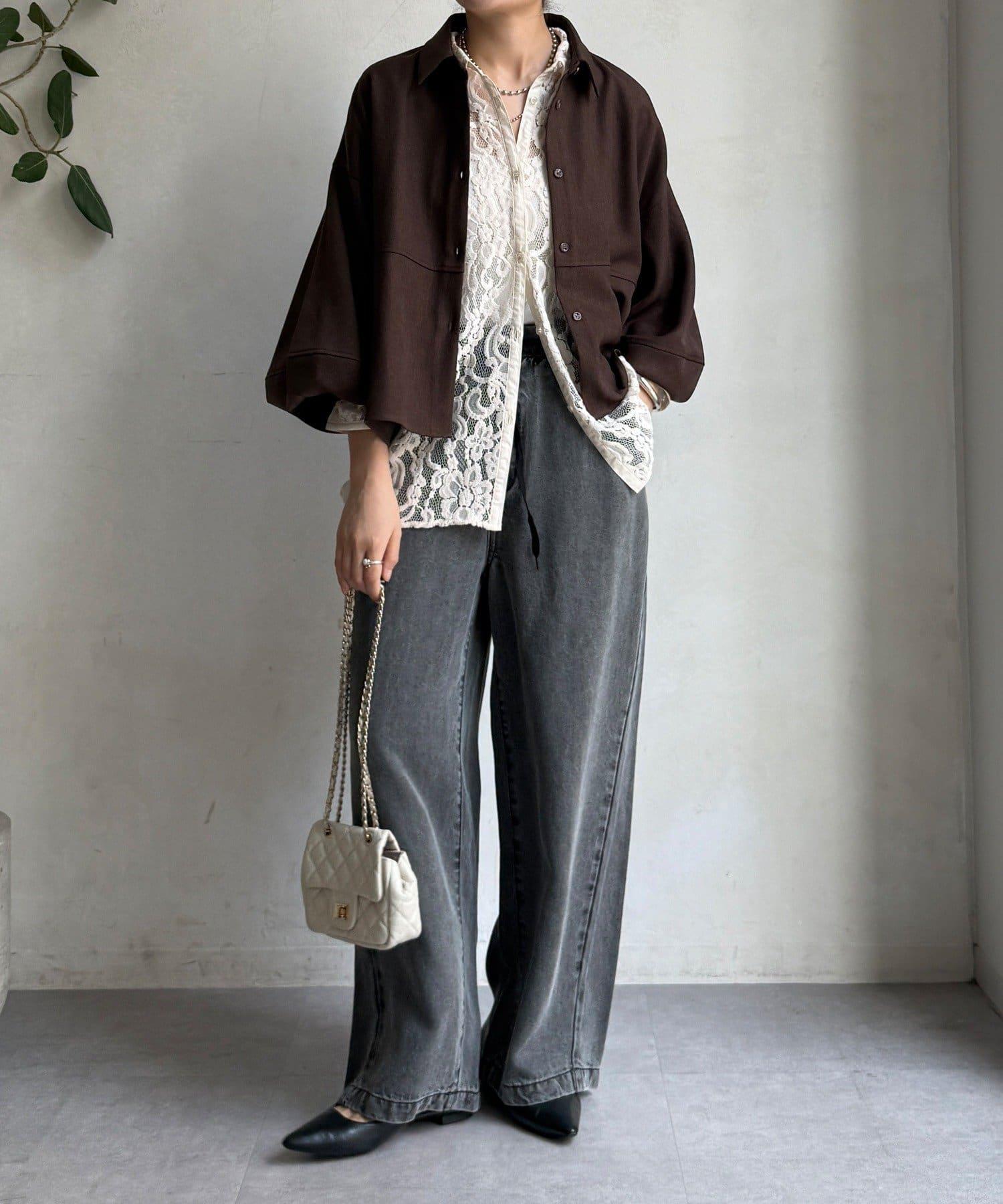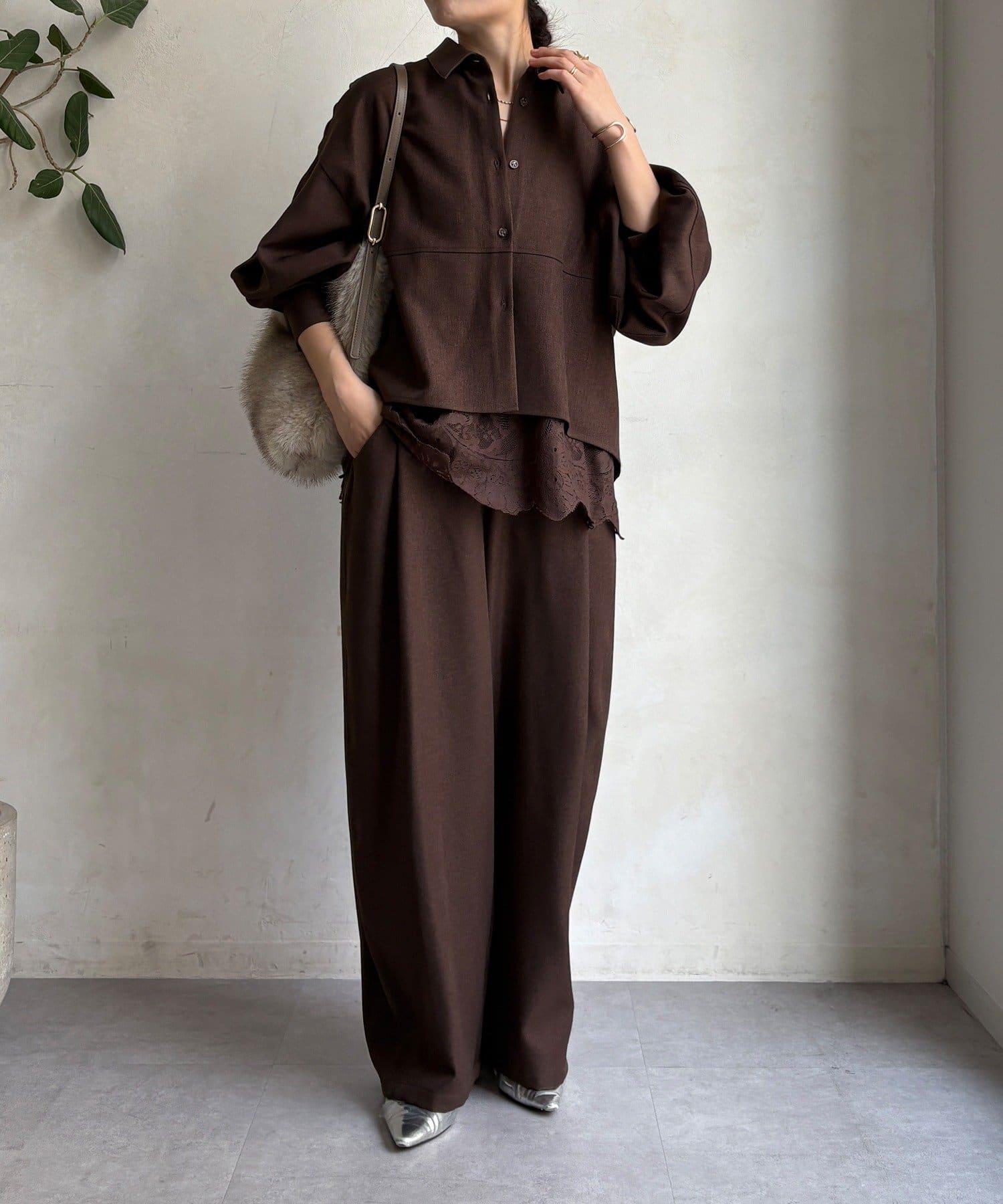 羊毛感繭型襯衫