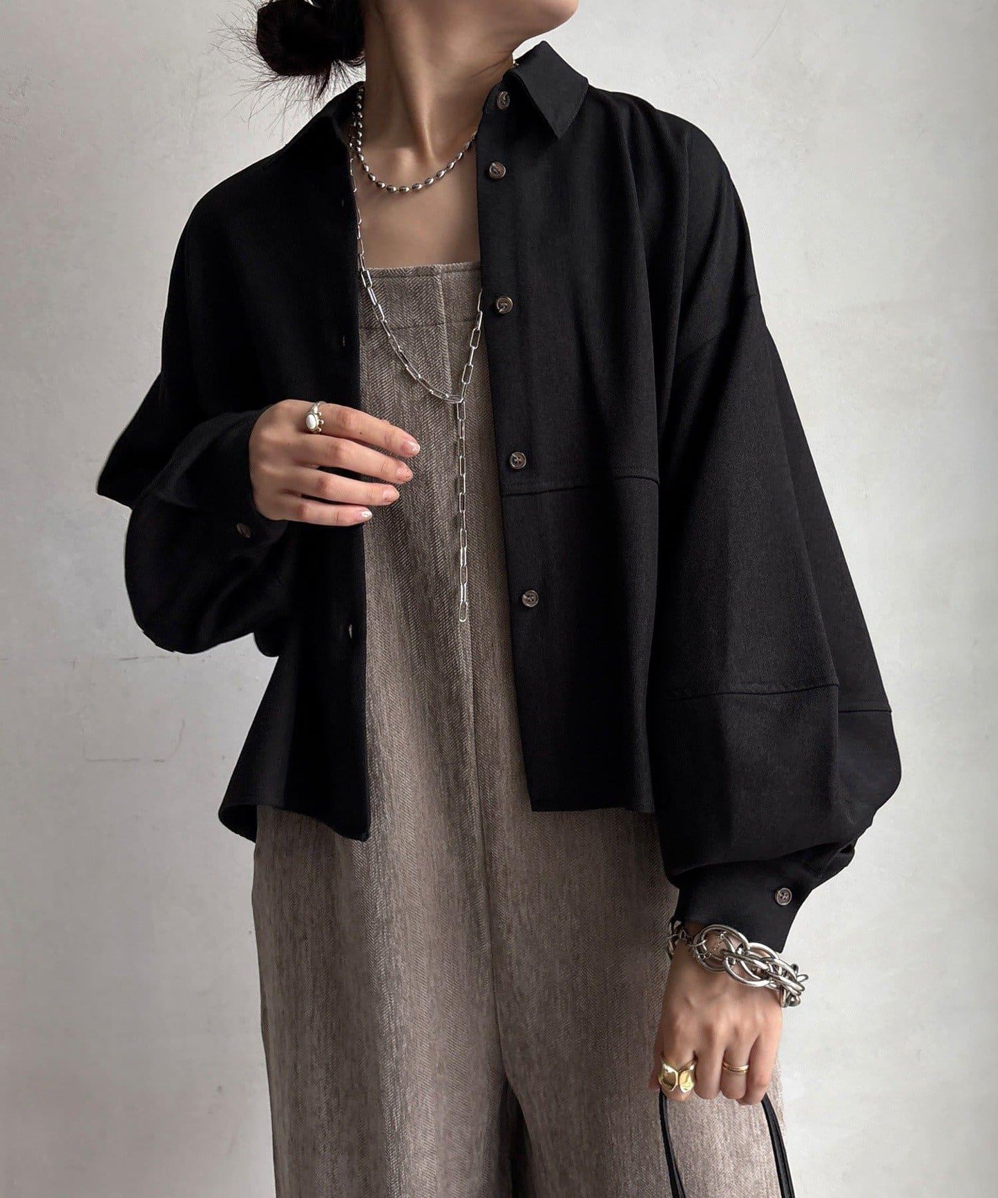 套裝或單件均可。多功能繭型襯衫