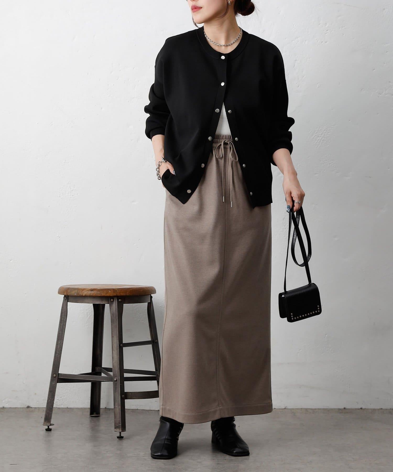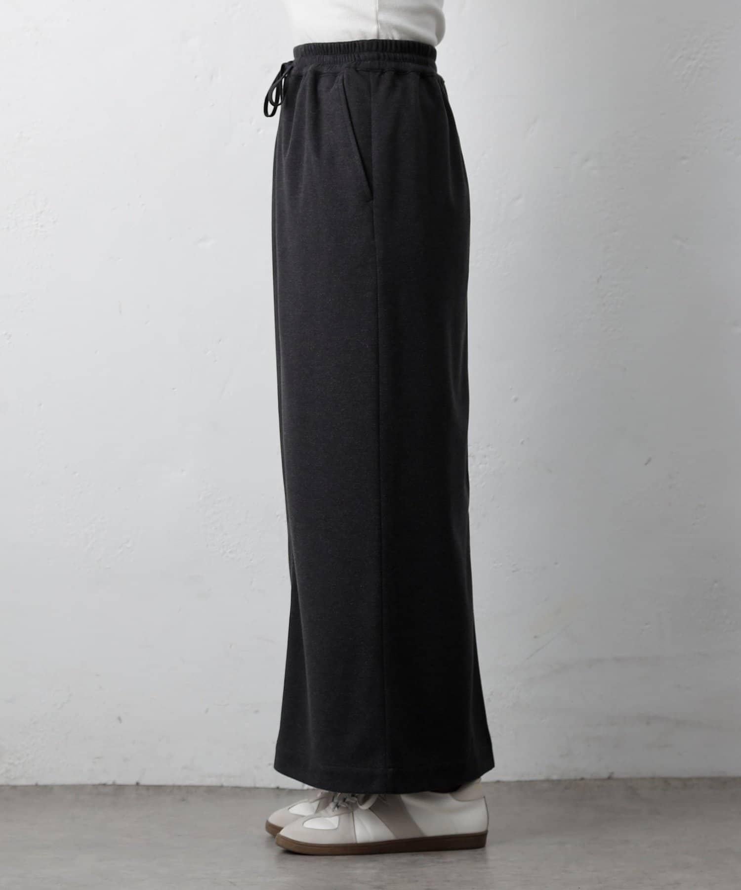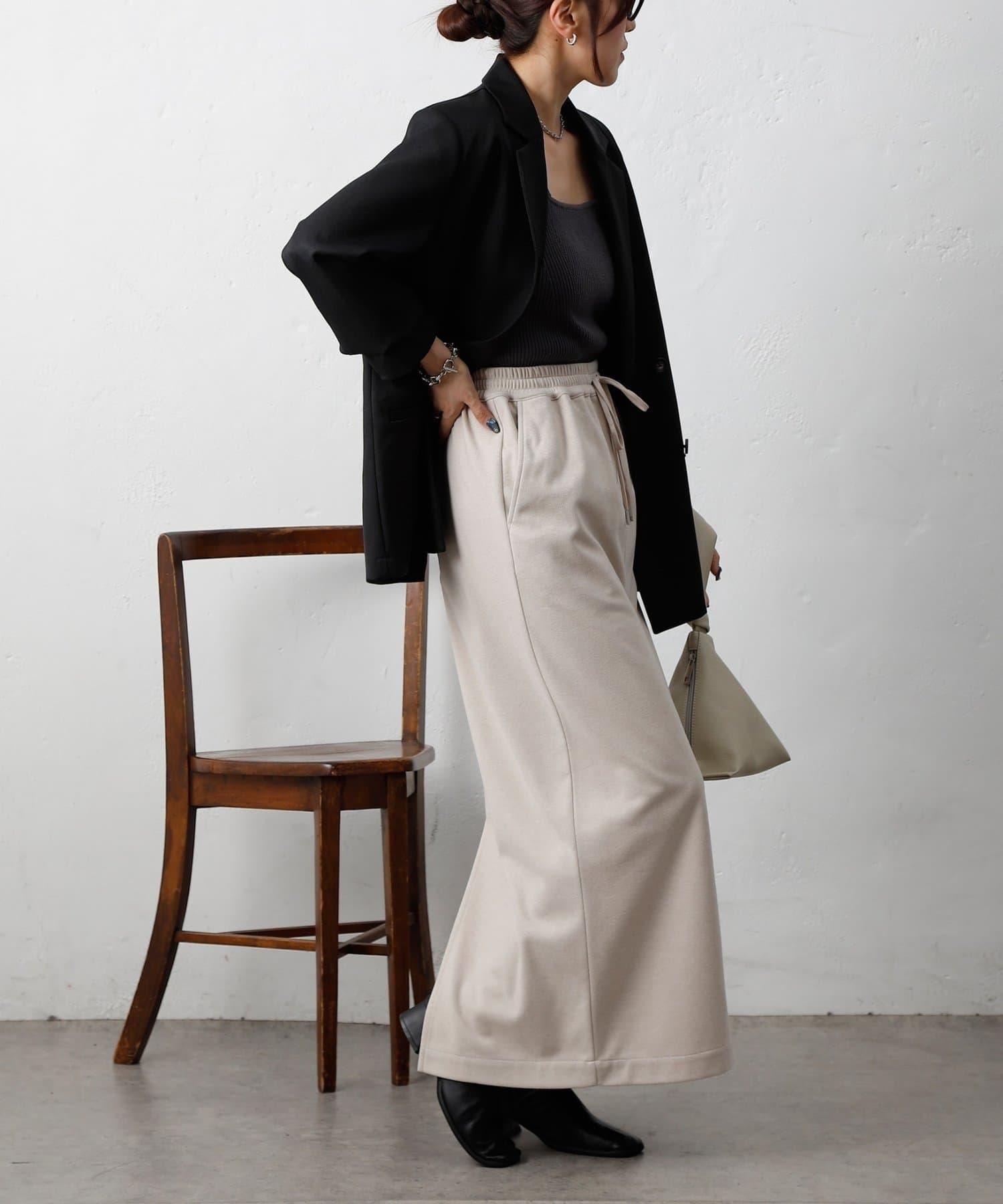 優美的廓形平滑垂落,腰部完全鬆緊。