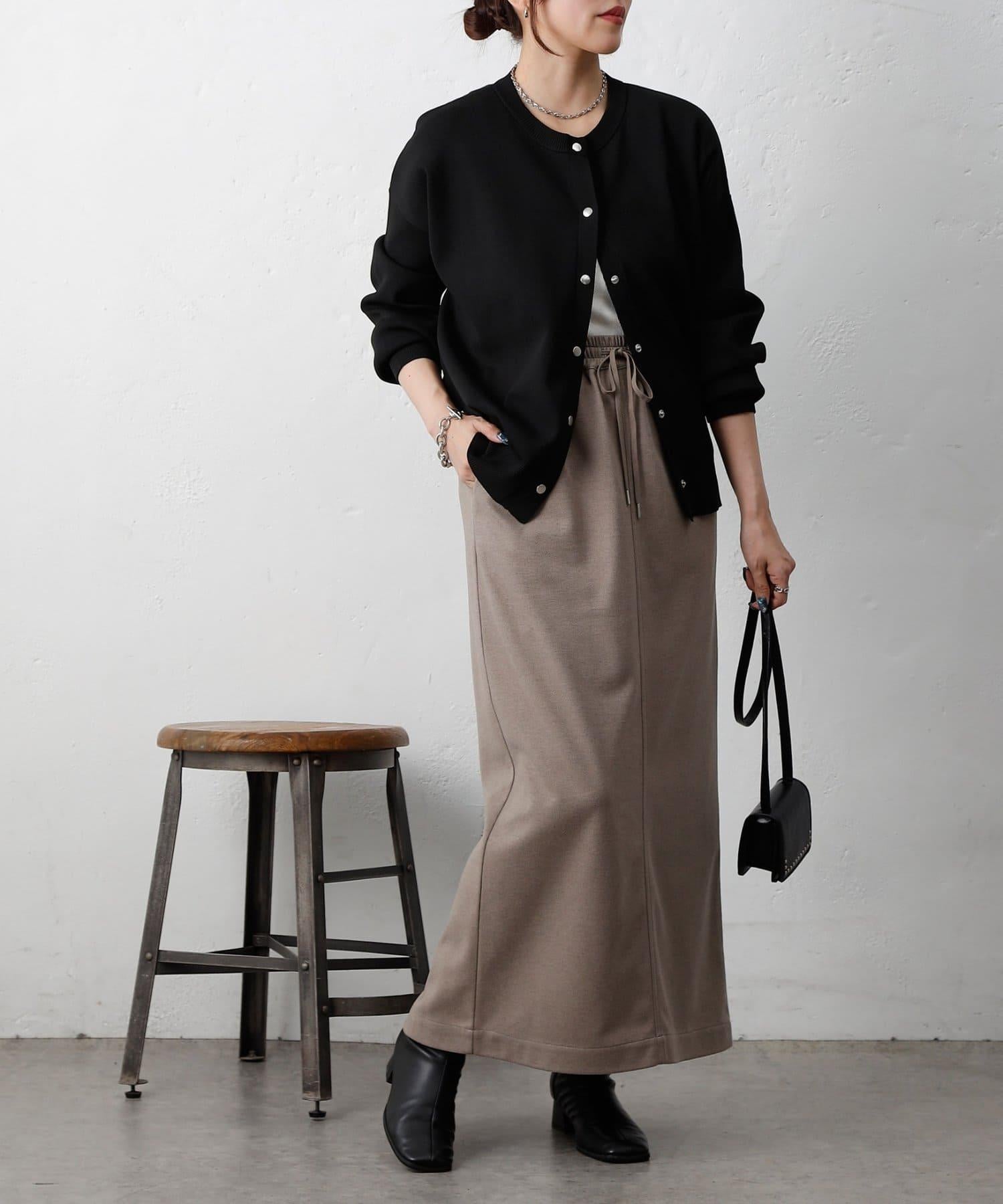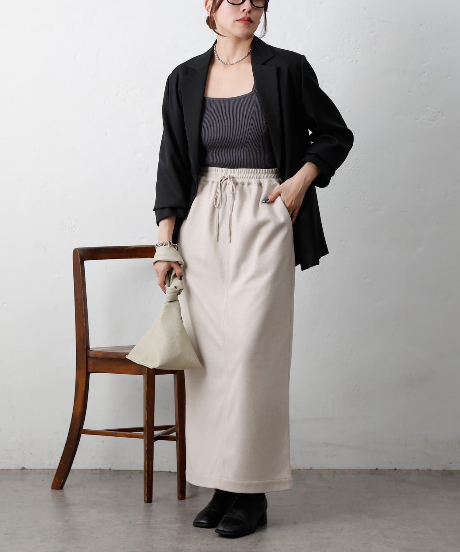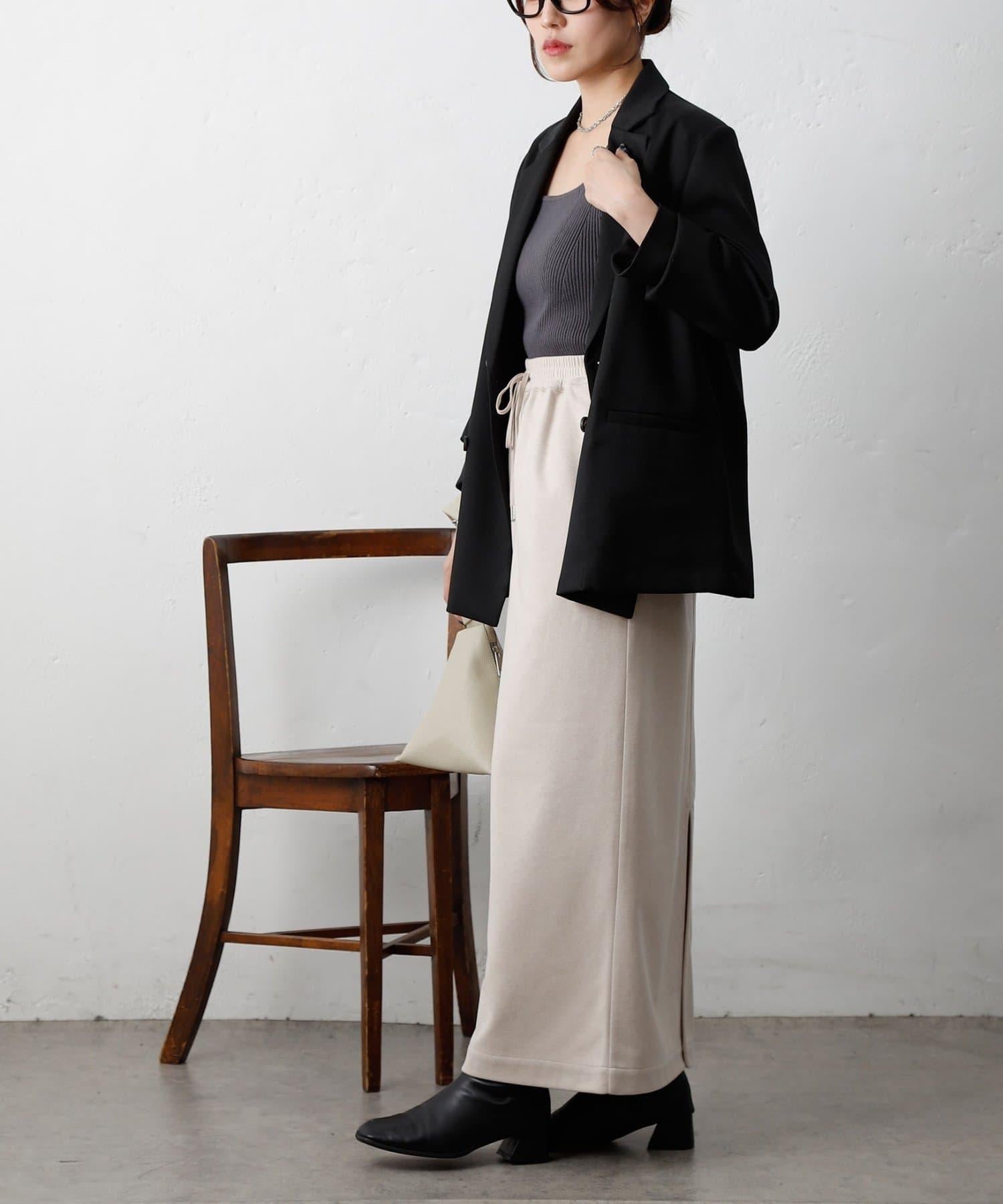 優美的廓形平滑垂落,腰部完全鬆緊。