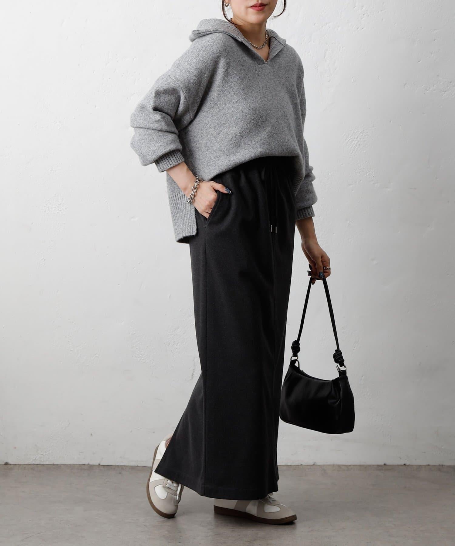 這款長褲具有奢華感,由於採用了彈力舒適的針織面料和優雅的羊毛長款外觀,因此可以大致搭配。