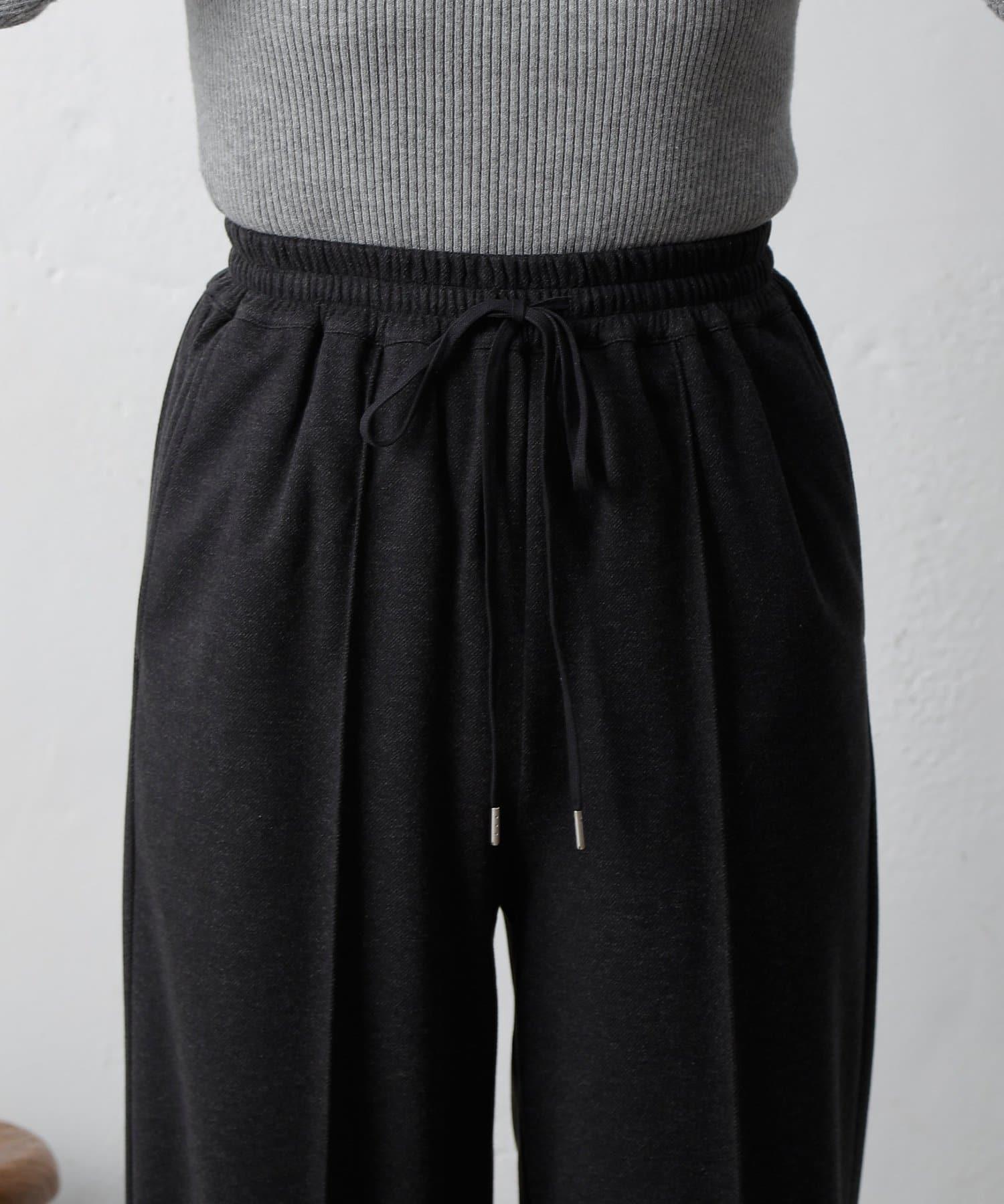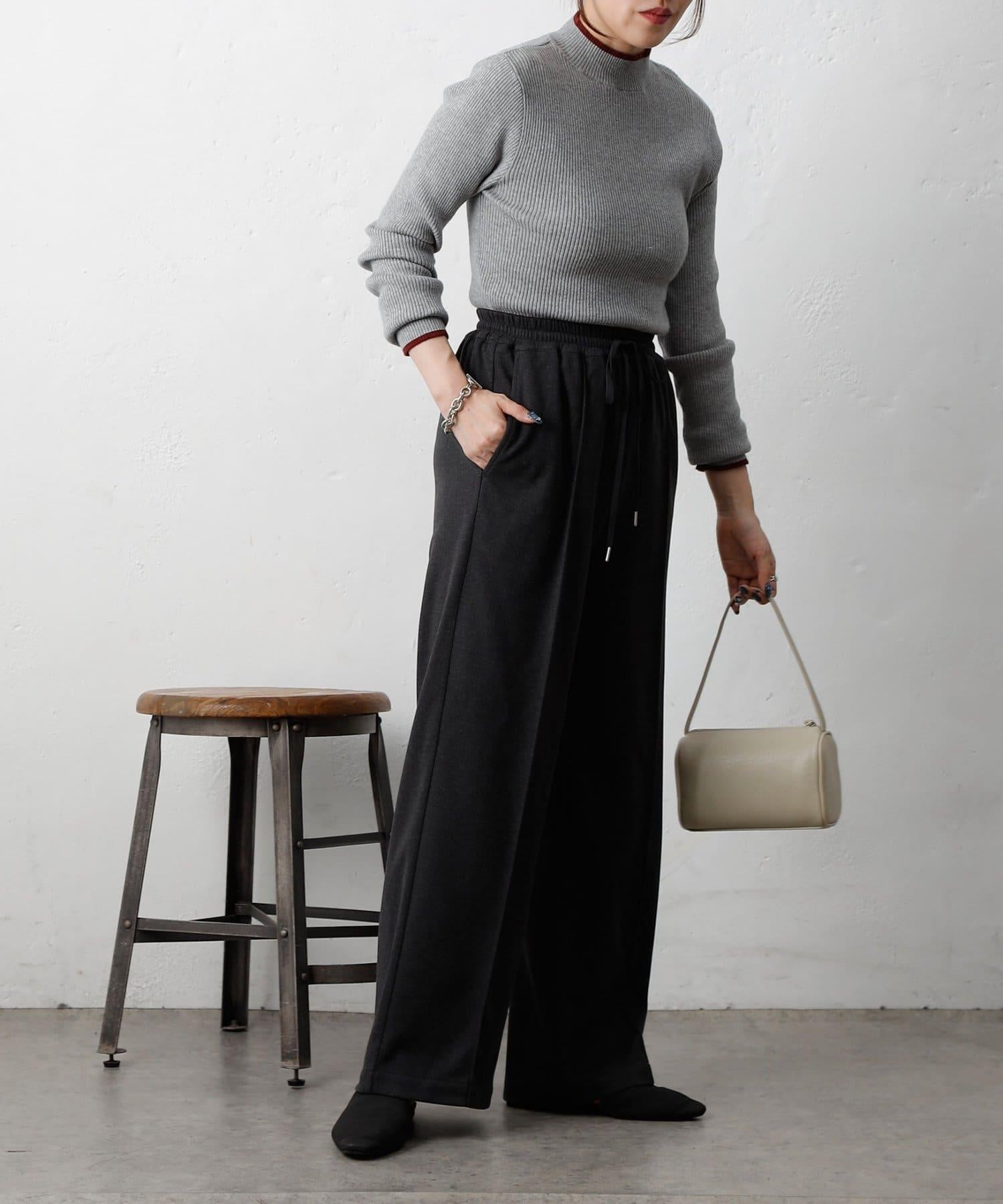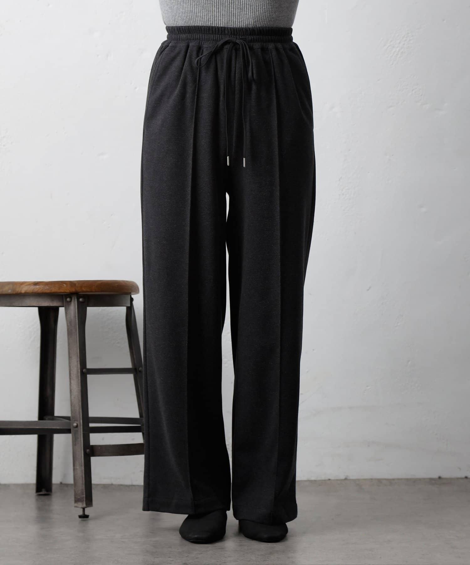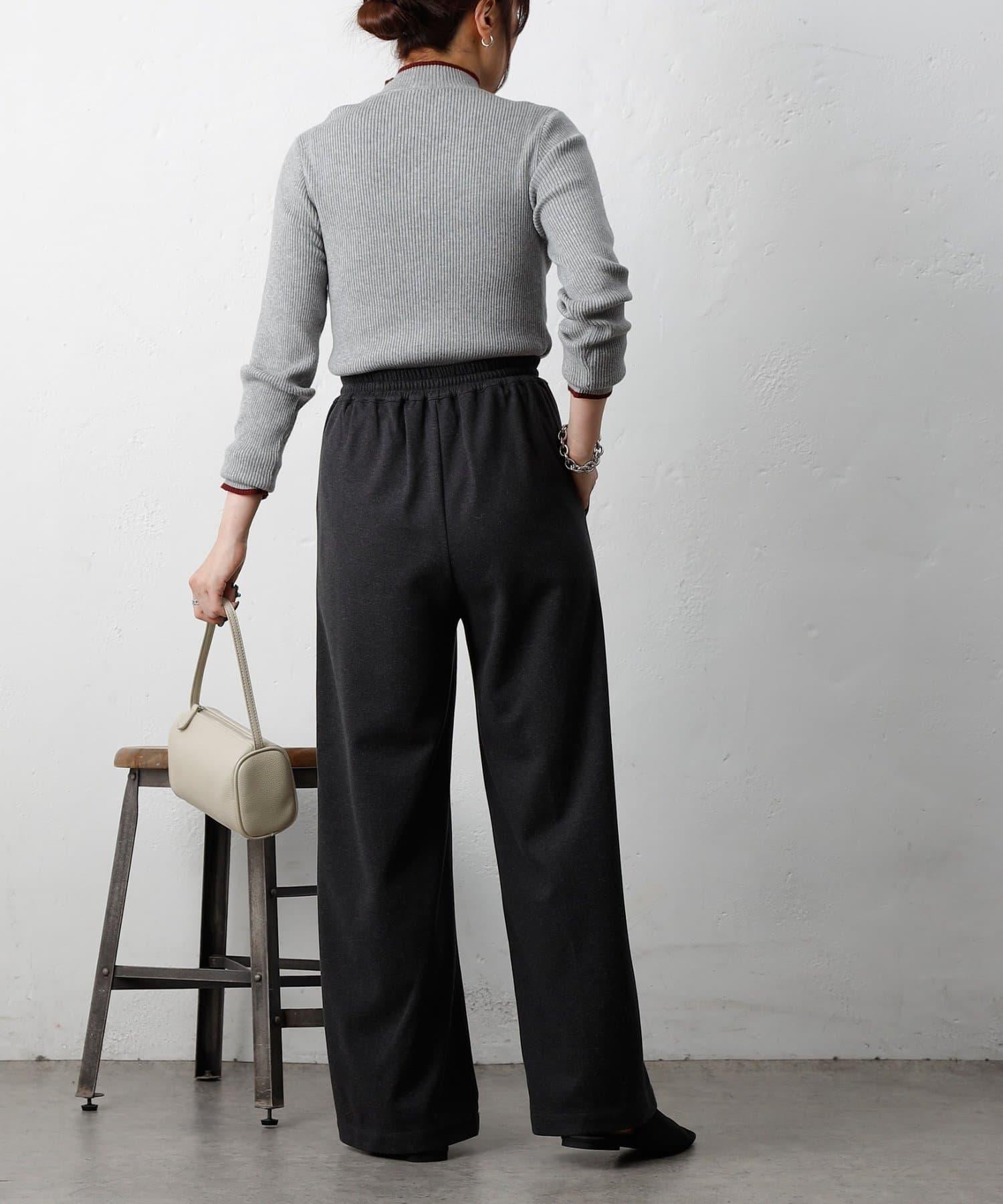 這款簡易褲既有細羊毛的外觀,又有針織面料的柔軟。