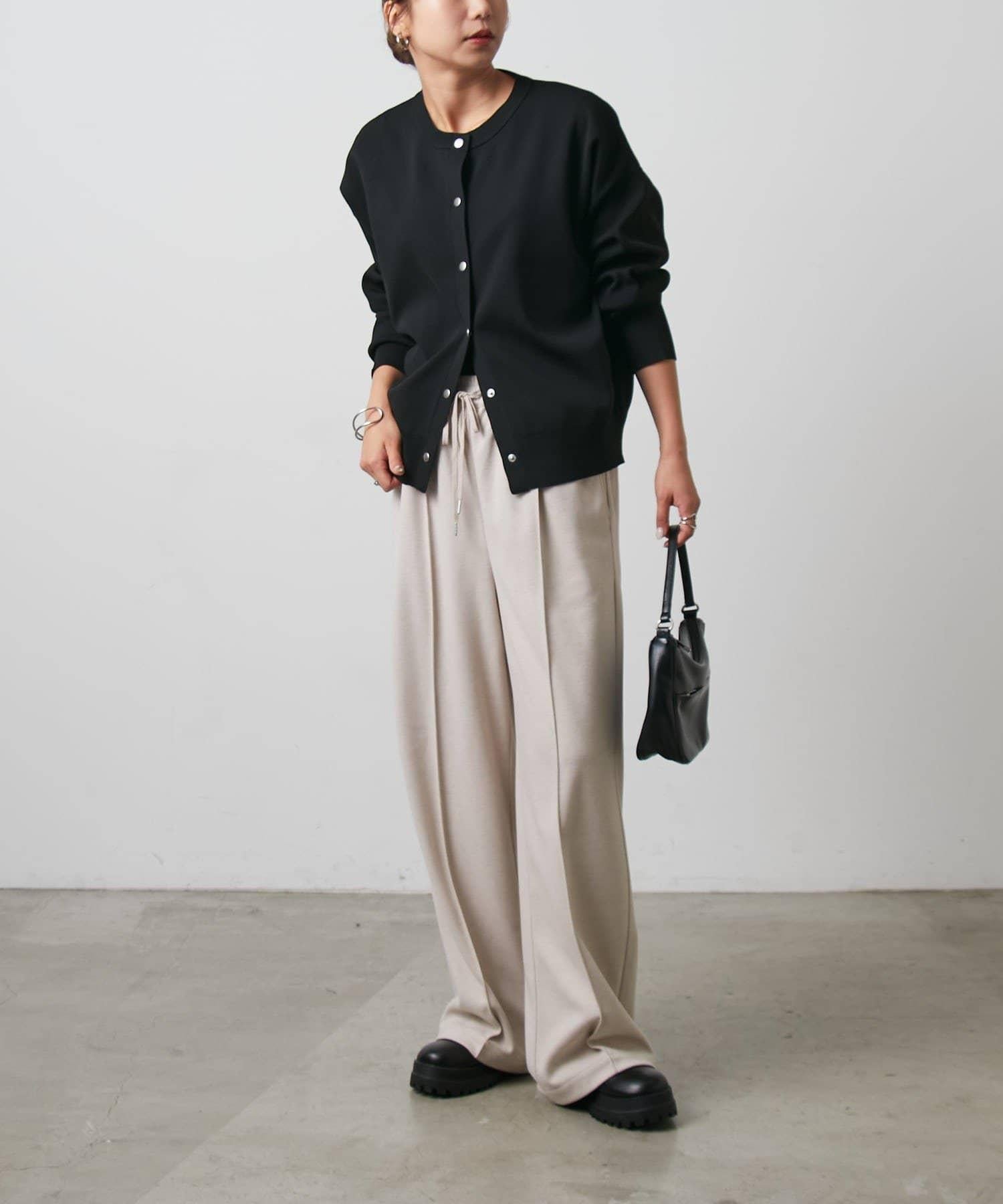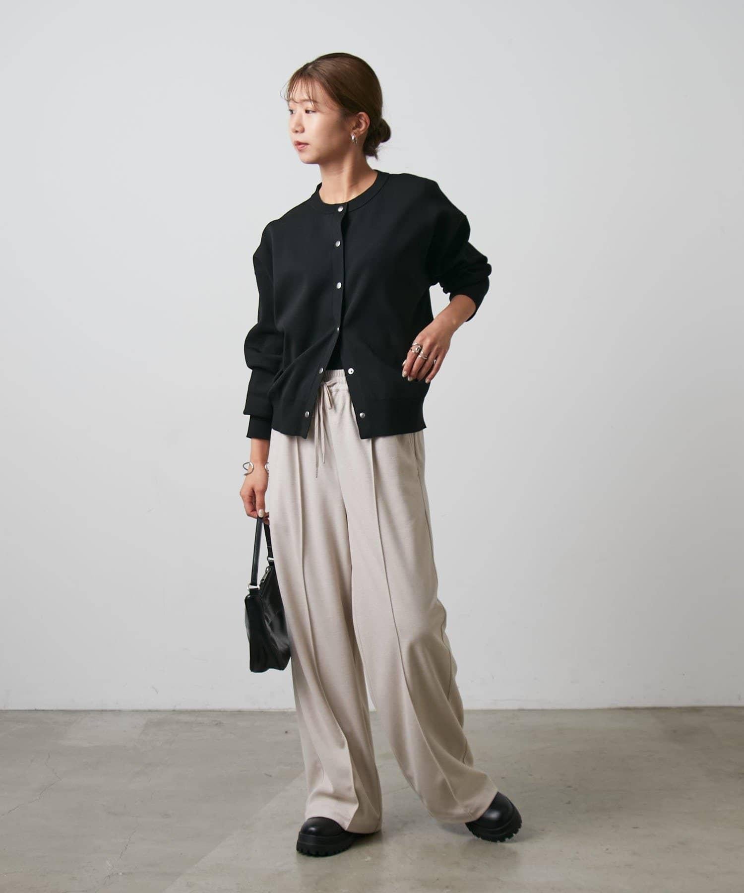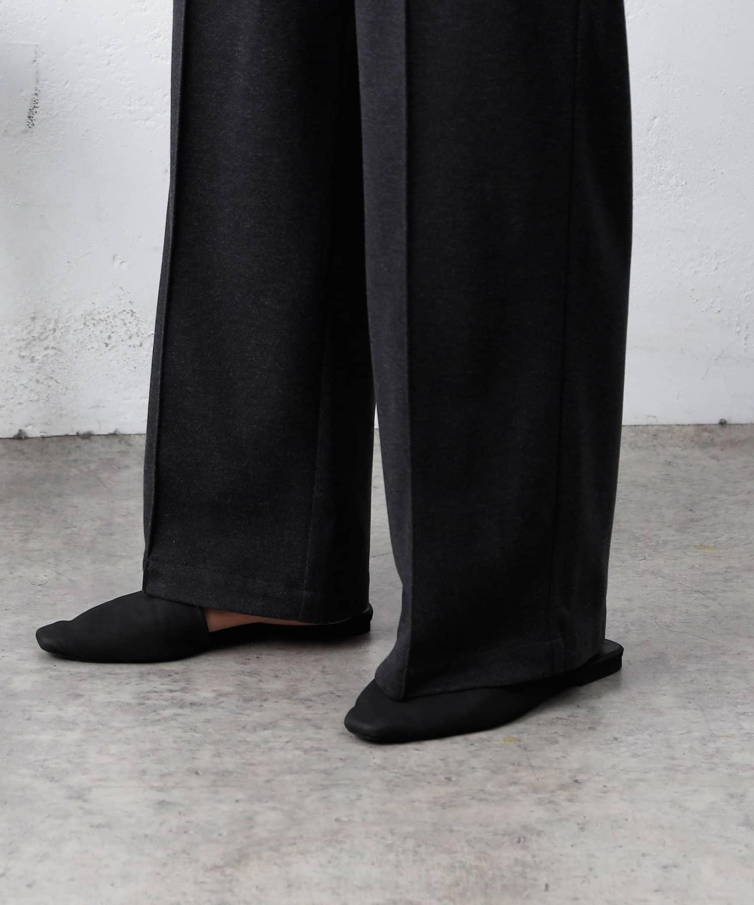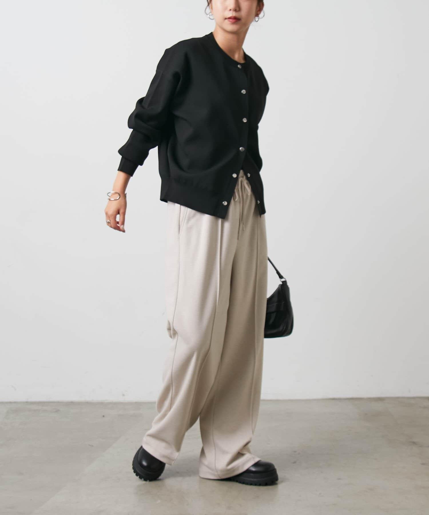 這款簡易褲既有細羊毛的外觀,又有針織面料的柔軟。