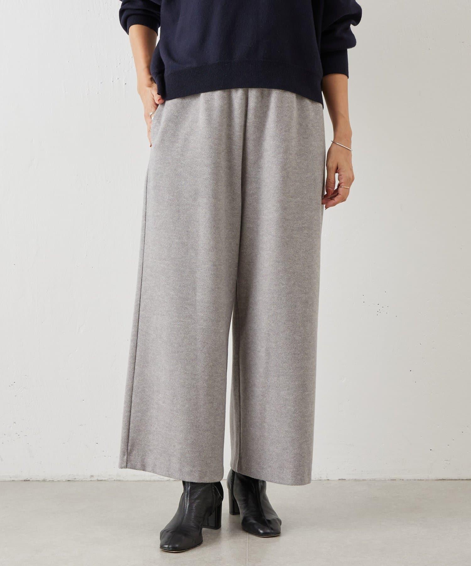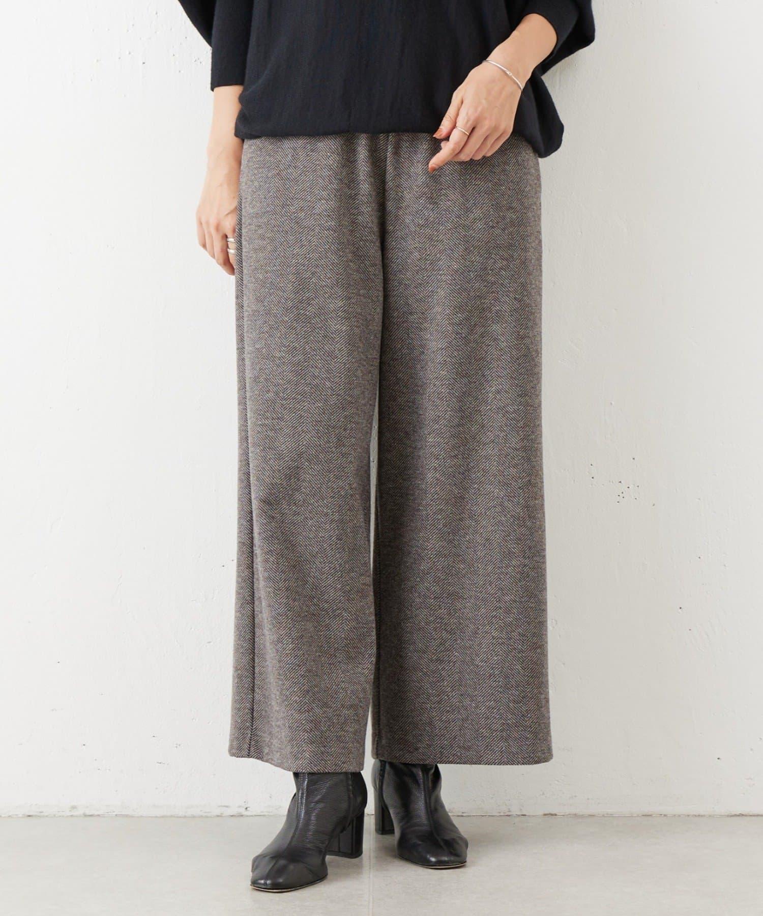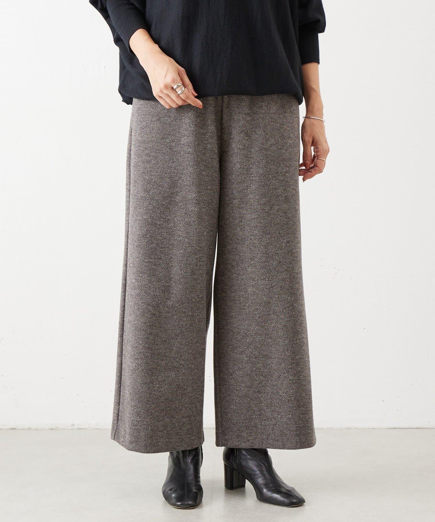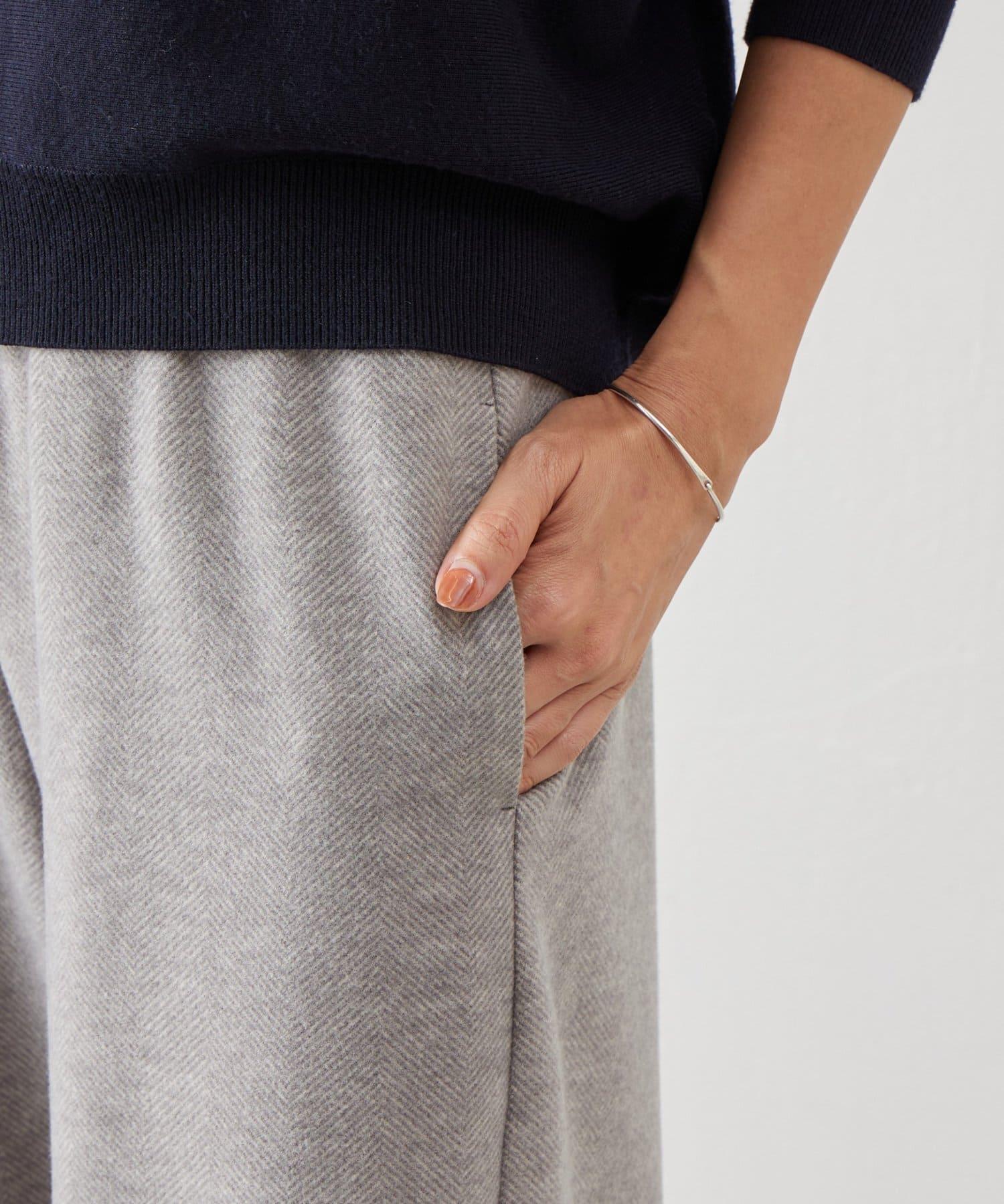 寬羅紋方便穿脫,而仿羊毛人字形花紋則賦予褲子優美的風格。