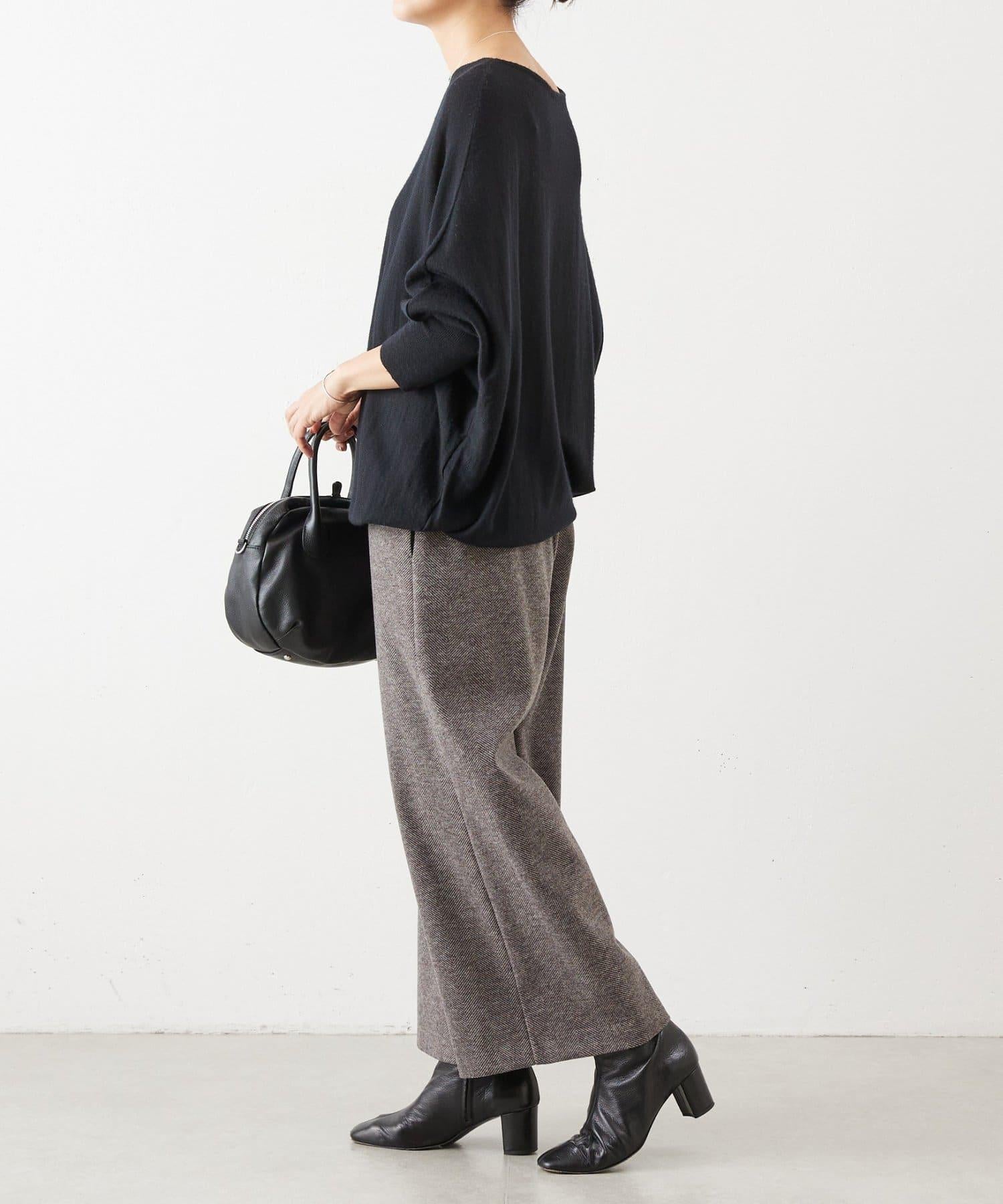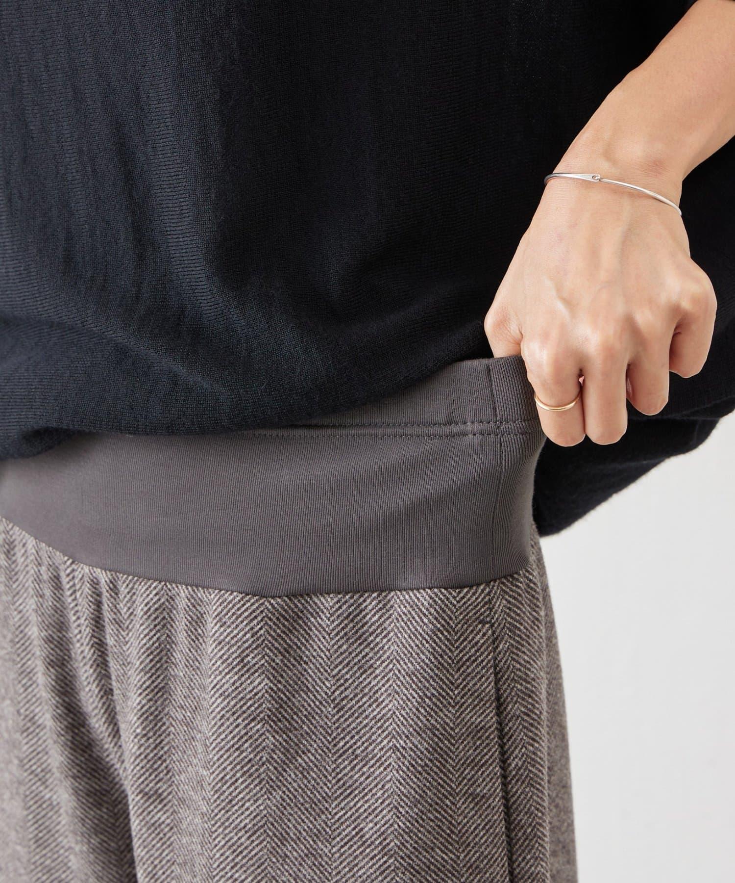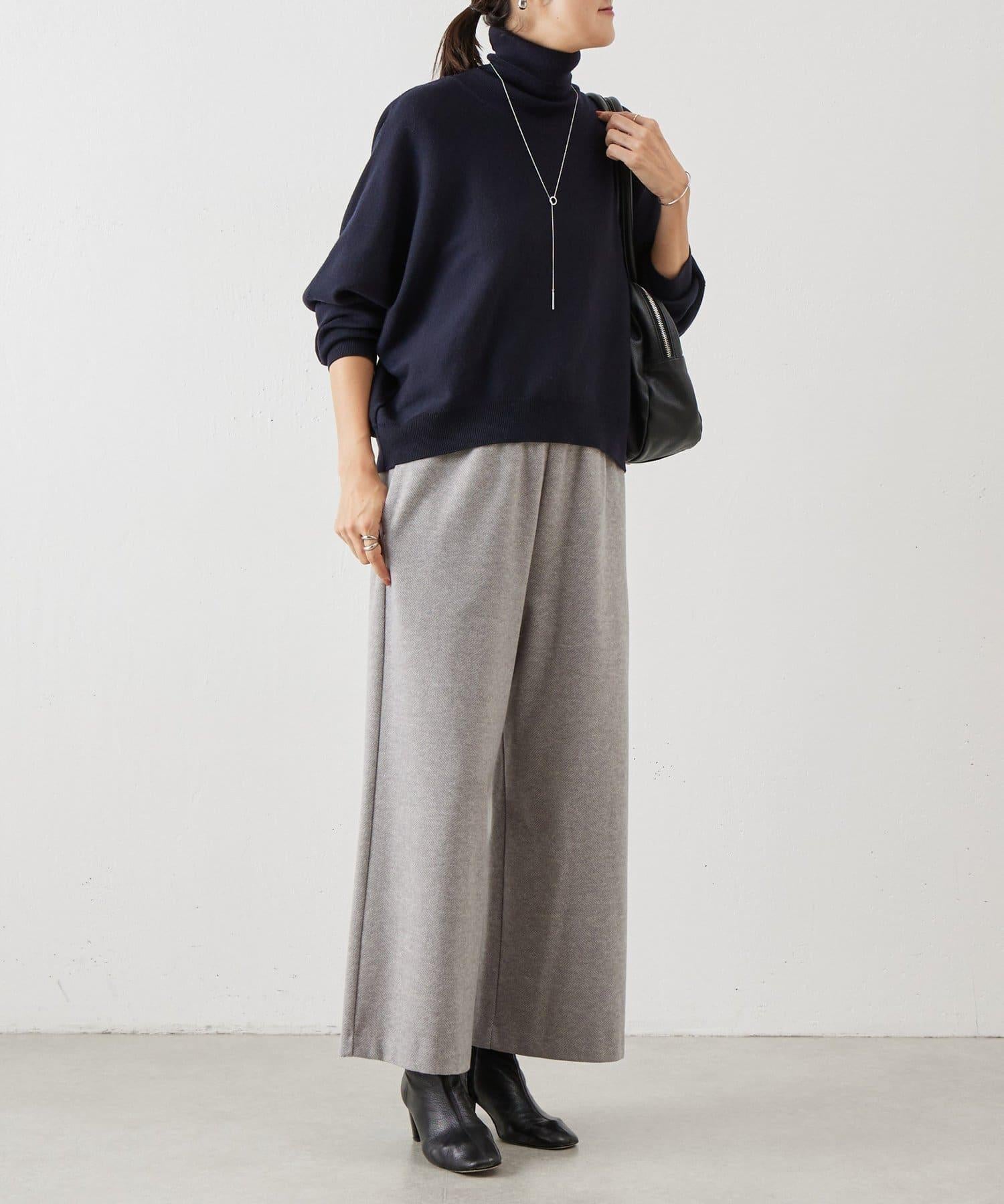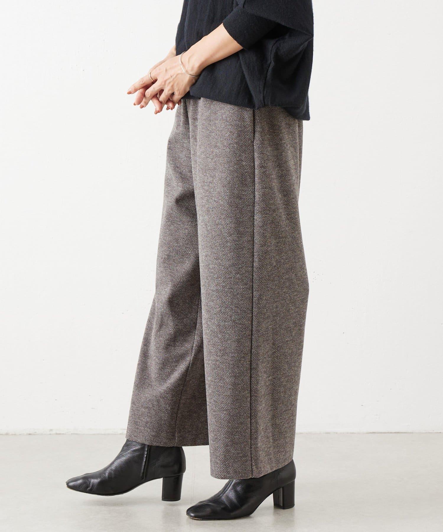 寬羅紋方便穿脫,而仿羊毛人字形花紋則賦予褲子優美的風格。