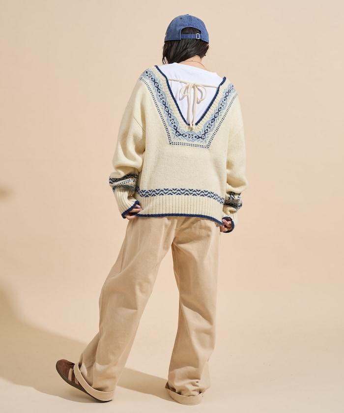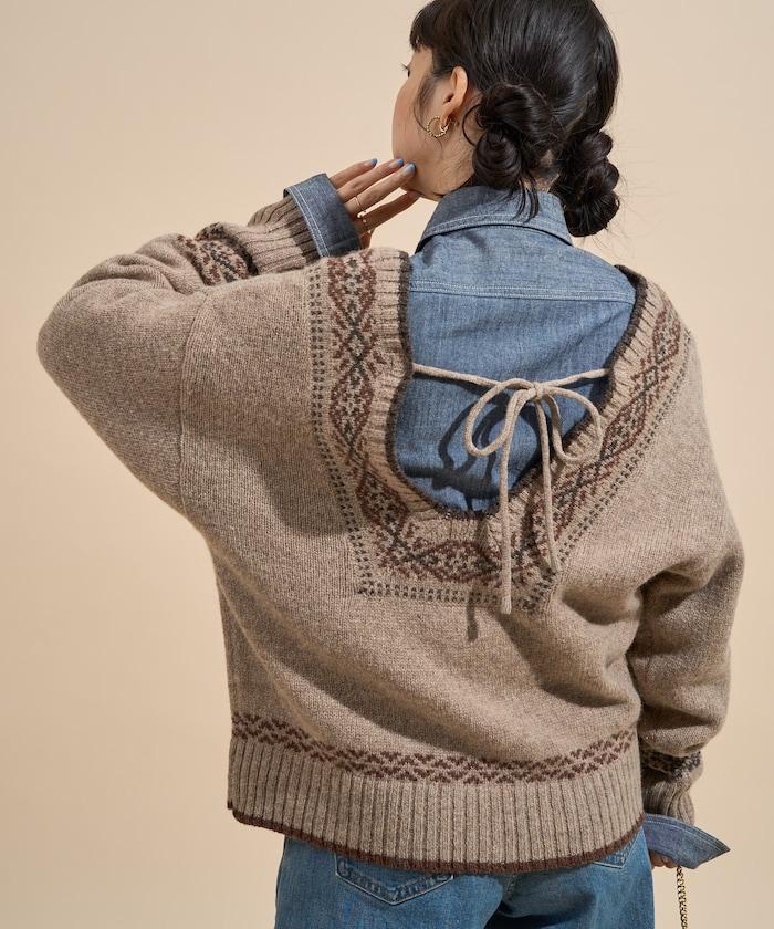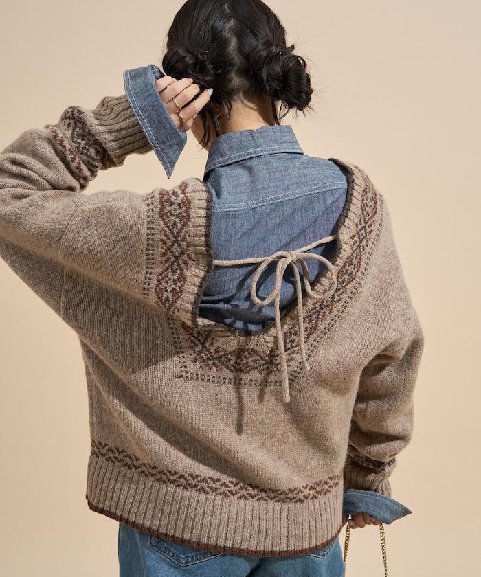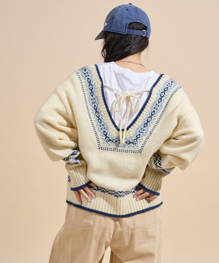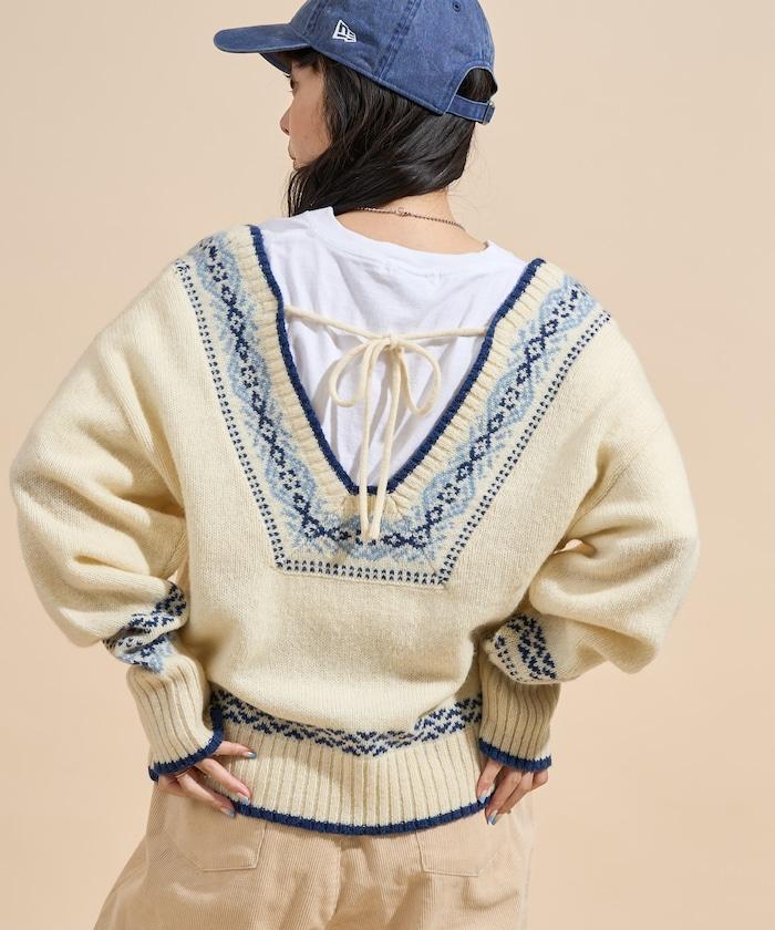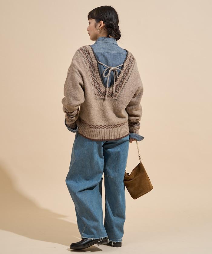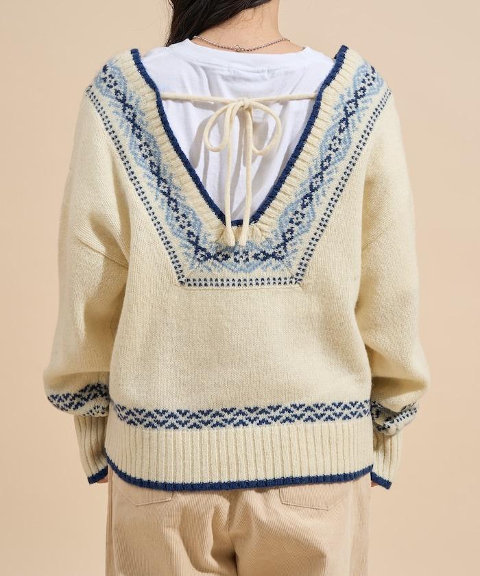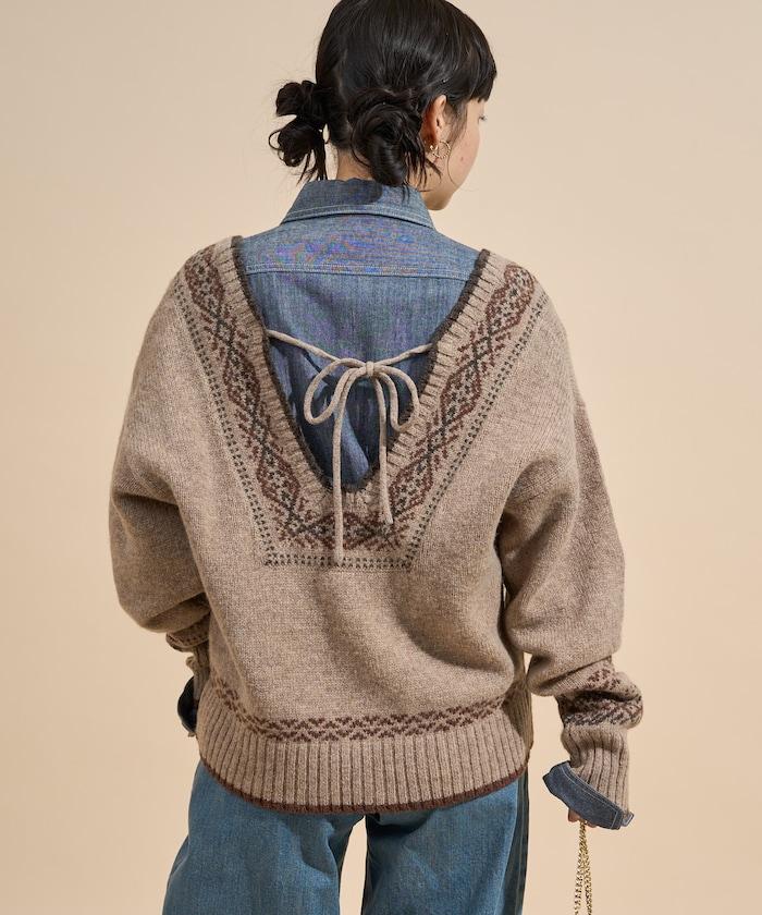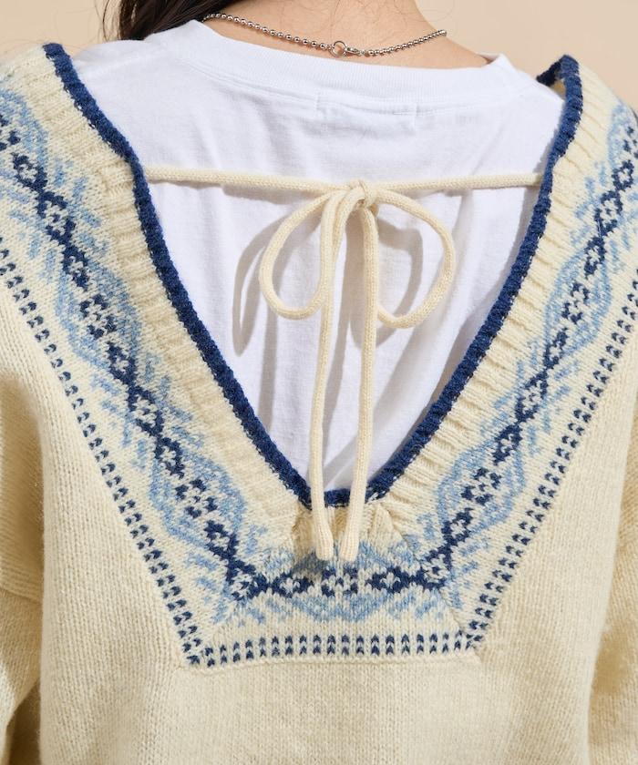 羊毛提洛爾風格背部蝴蝶結V領針織衫