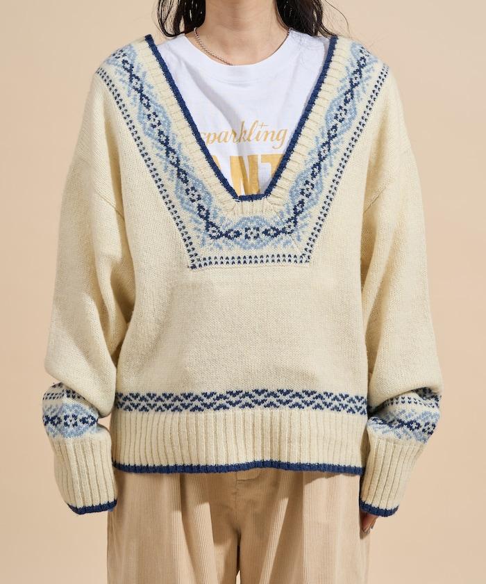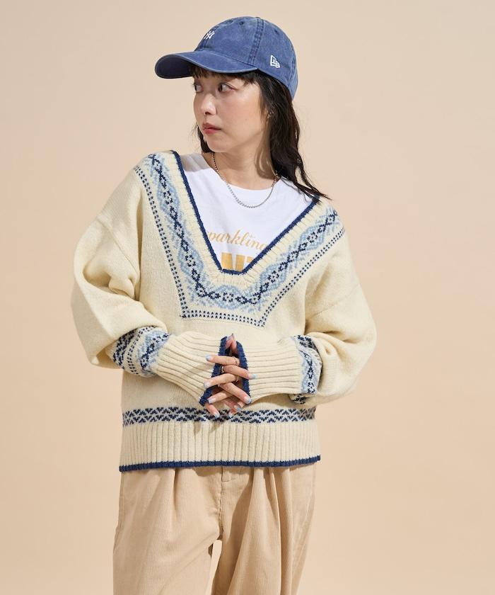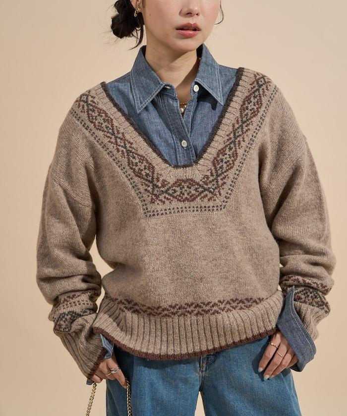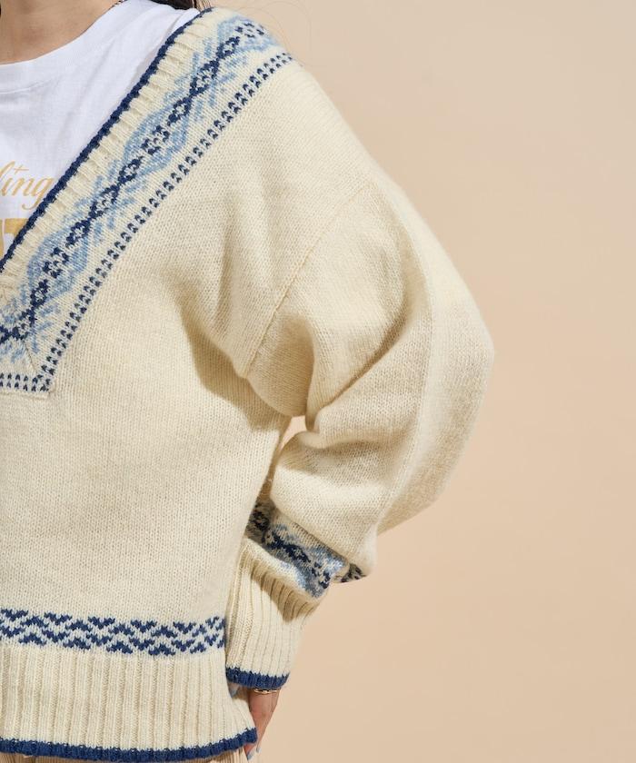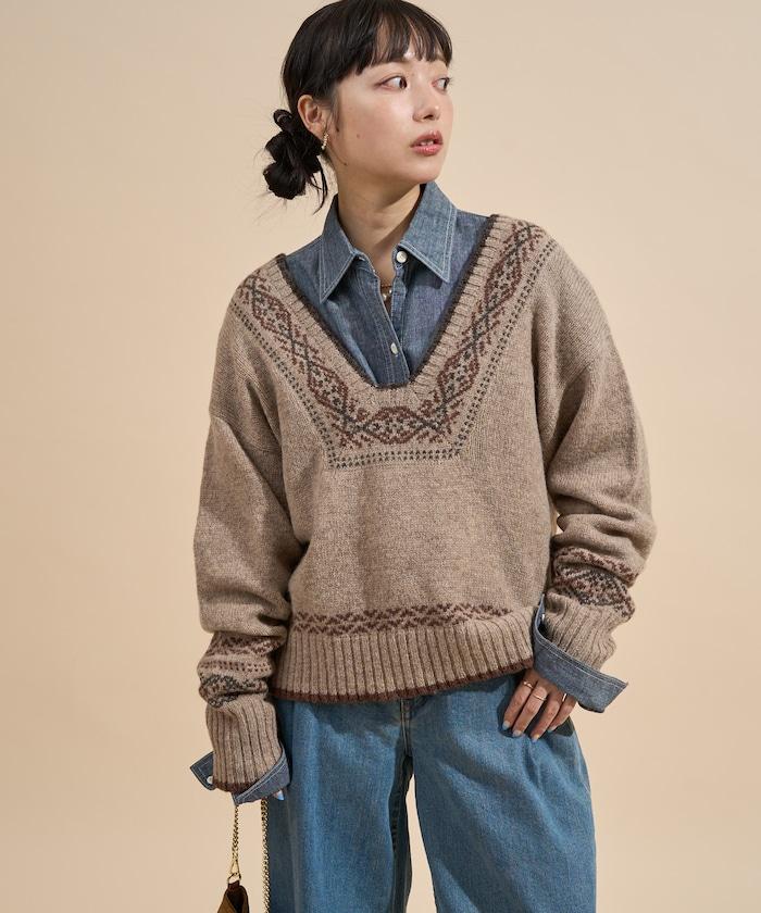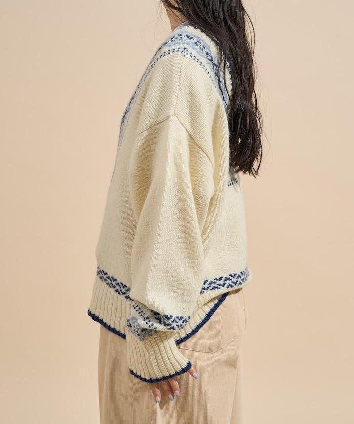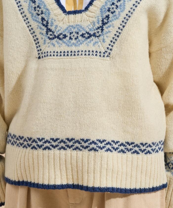 V 領針織衫採用溫暖、復古的蒂羅爾風格設計。