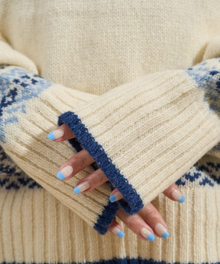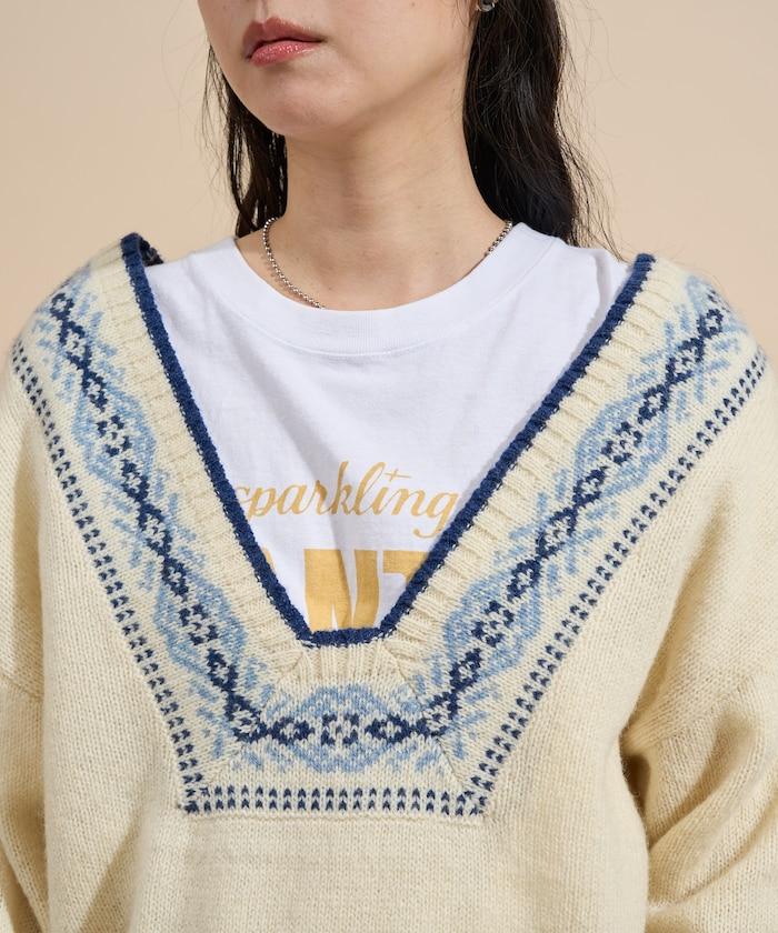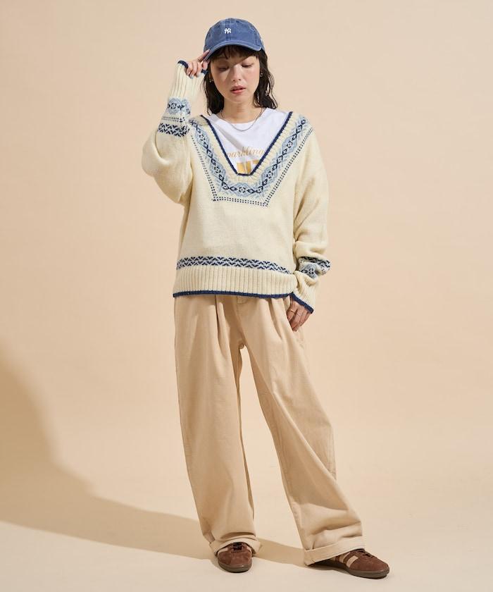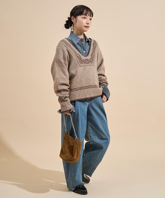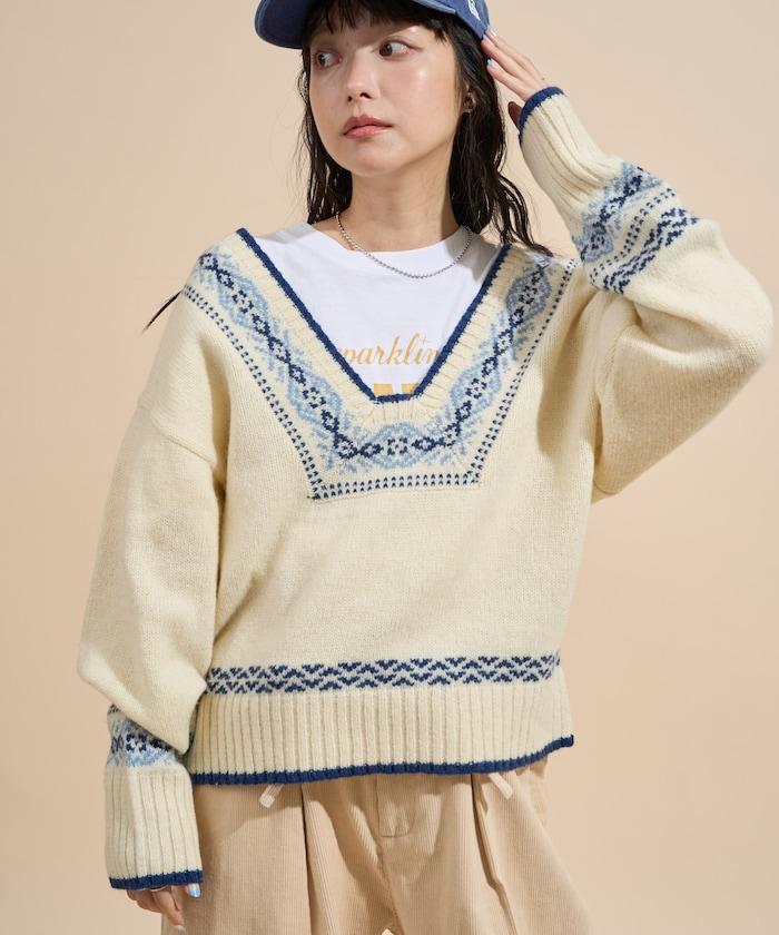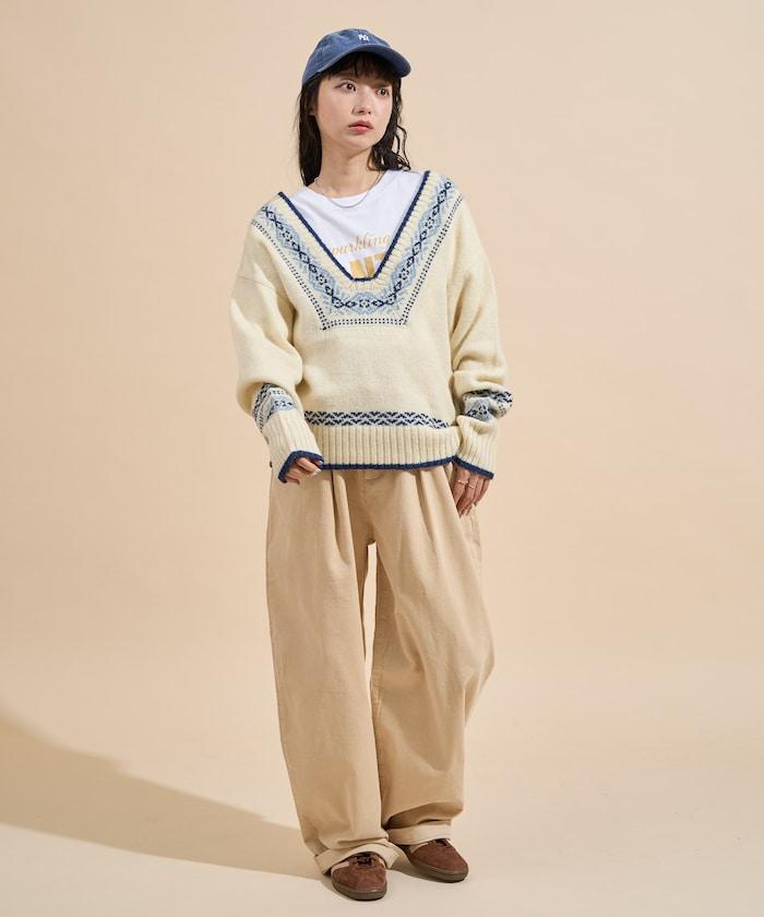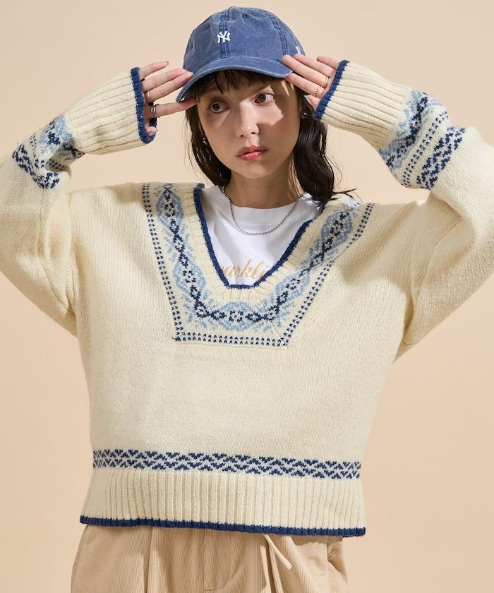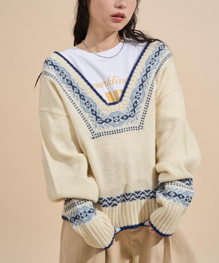 V 領針織衫採用溫暖、復古的蒂羅爾風格設計。