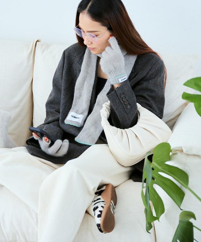羊毛混紡半長圍巾《AIR》限定馬海毛半長圍巾