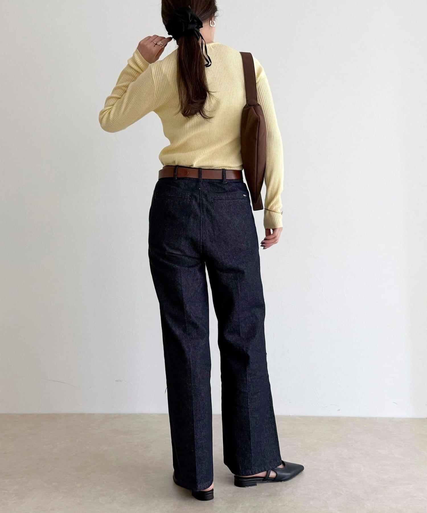 由於面料的特性,本產品的線頭在被夾住時容易彈出。穿著時,請注意不要與皮帶、包包或周圍牆壁等粗糙表面摩擦或卡住。