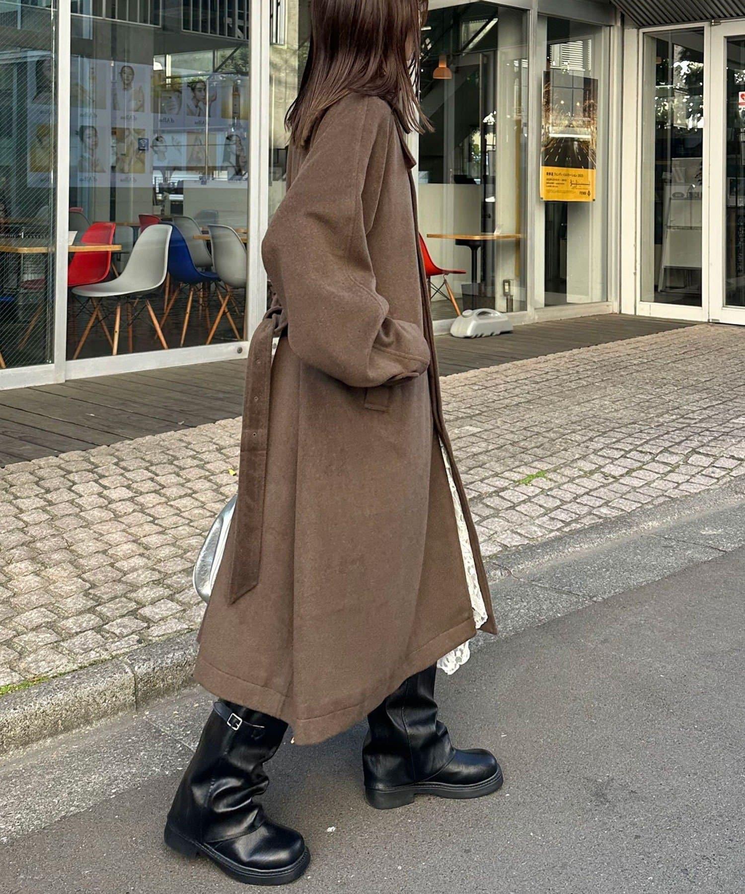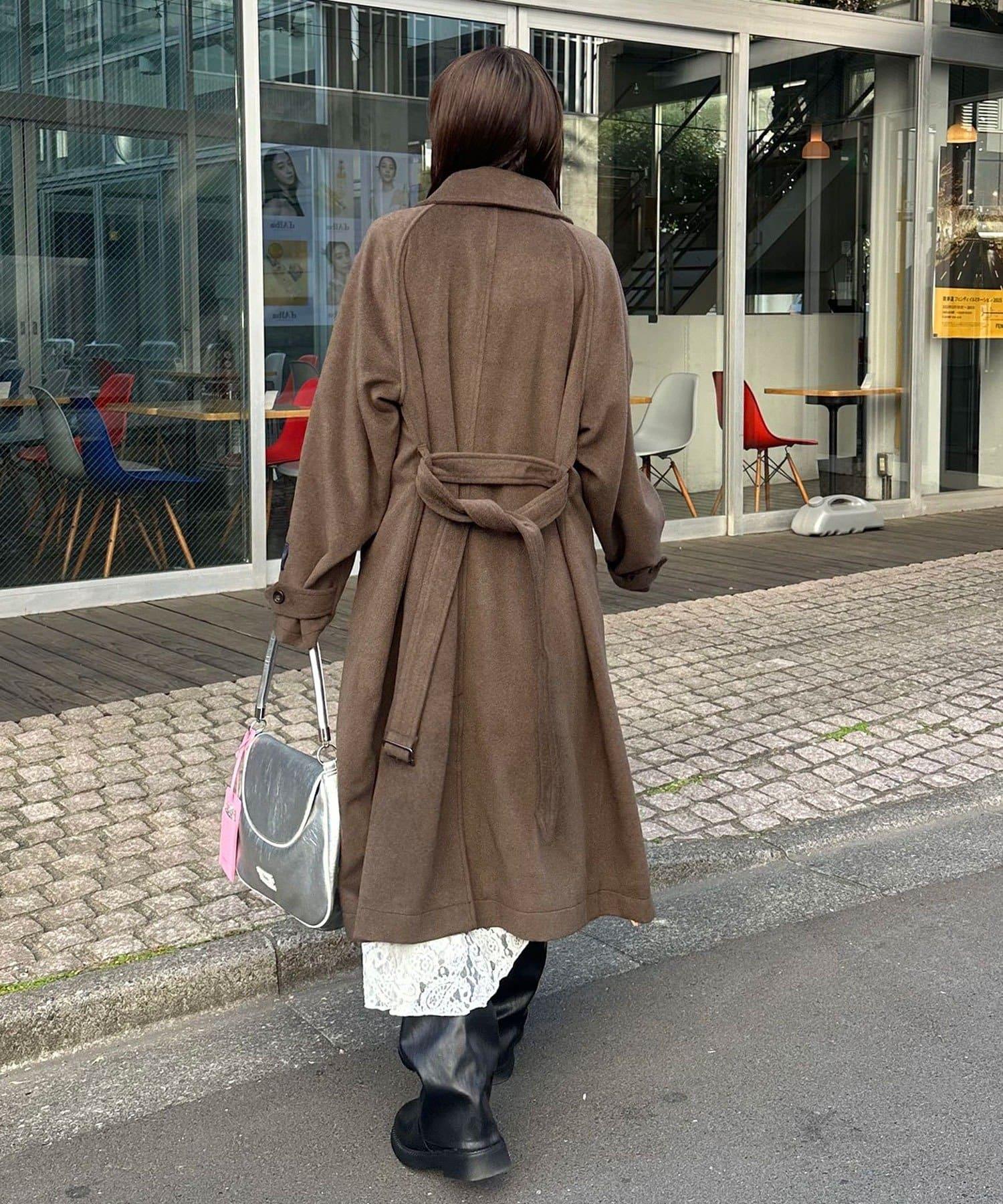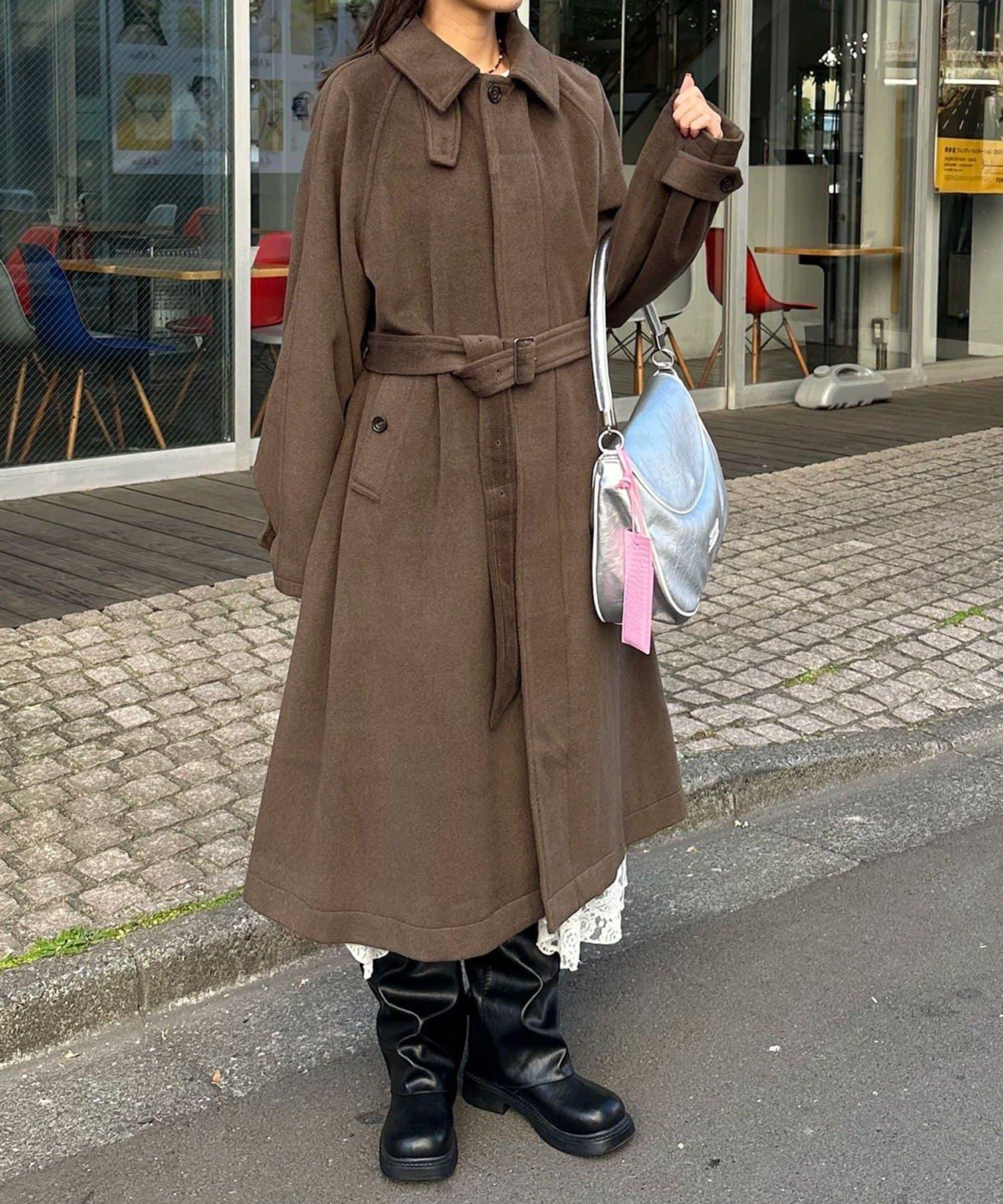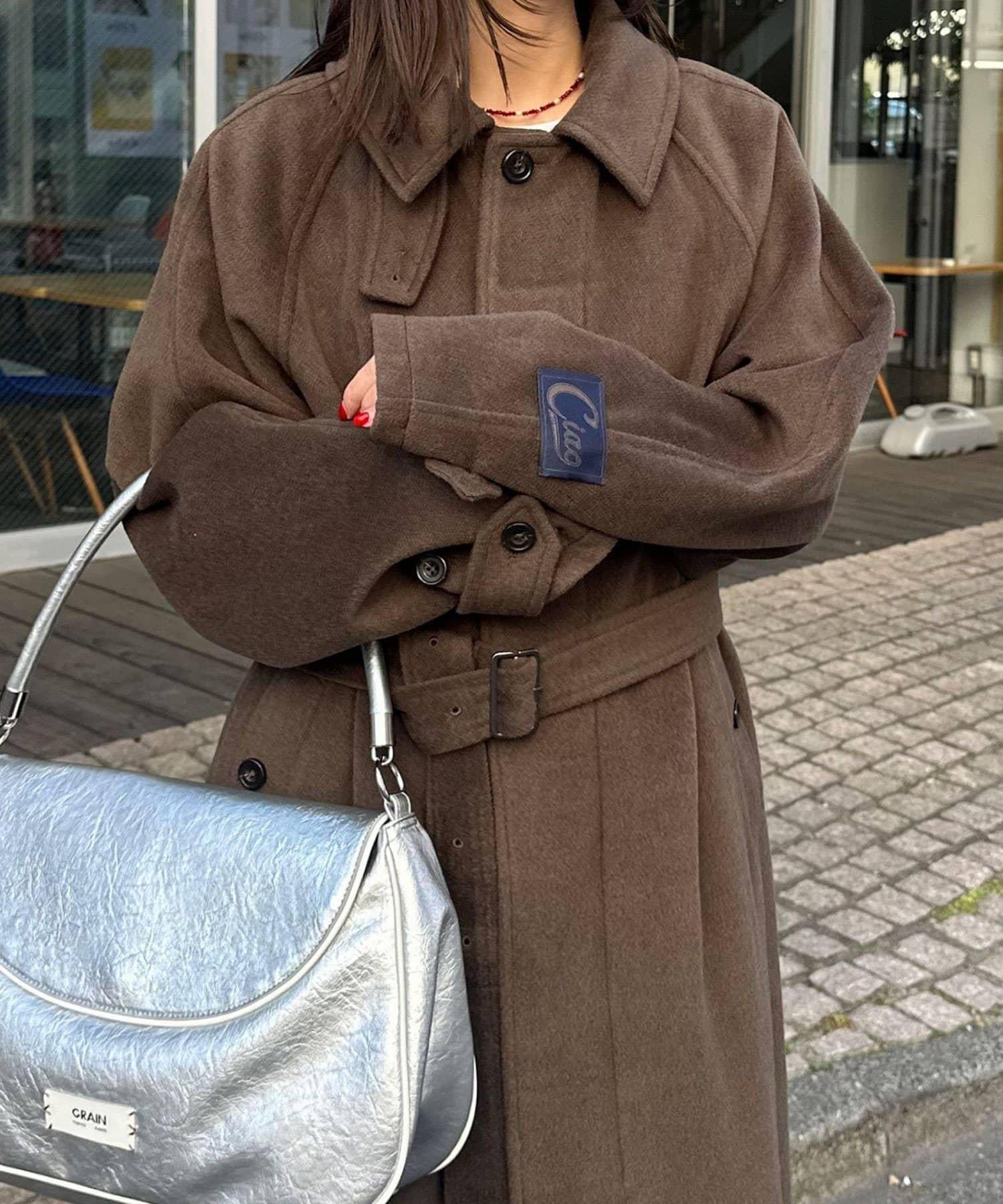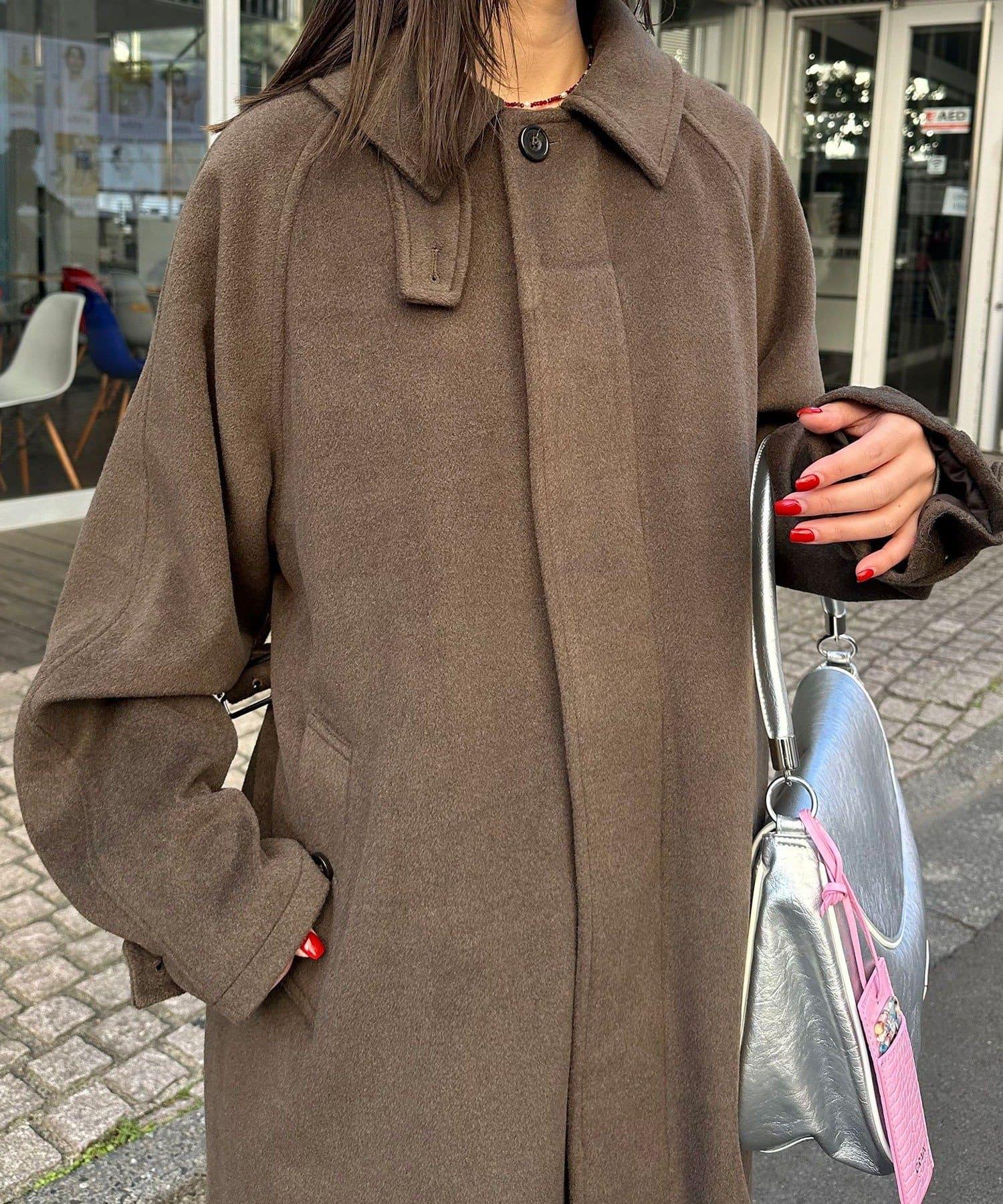 這款不鏽鋼領大衣採用羊毛混紡面料剪裁而成,既優雅又保暖,充滿季節感。
