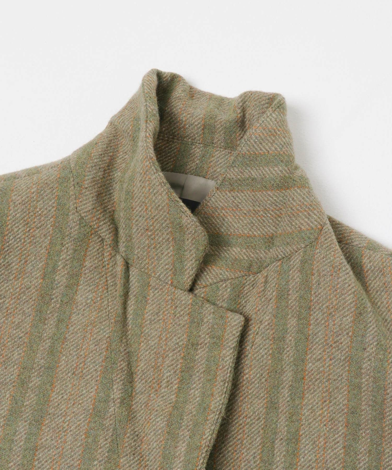 羊毛混紡夾克,男士剪裁款式。柔軟、輕便、保暖,是一款百搭單品。它有微妙的條紋風格,各種線混合在一起的大氣色彩很有吸引力。它可以與牛仔褲搭配,也可以與針織衫和剪裁縫製的服裝搭配。