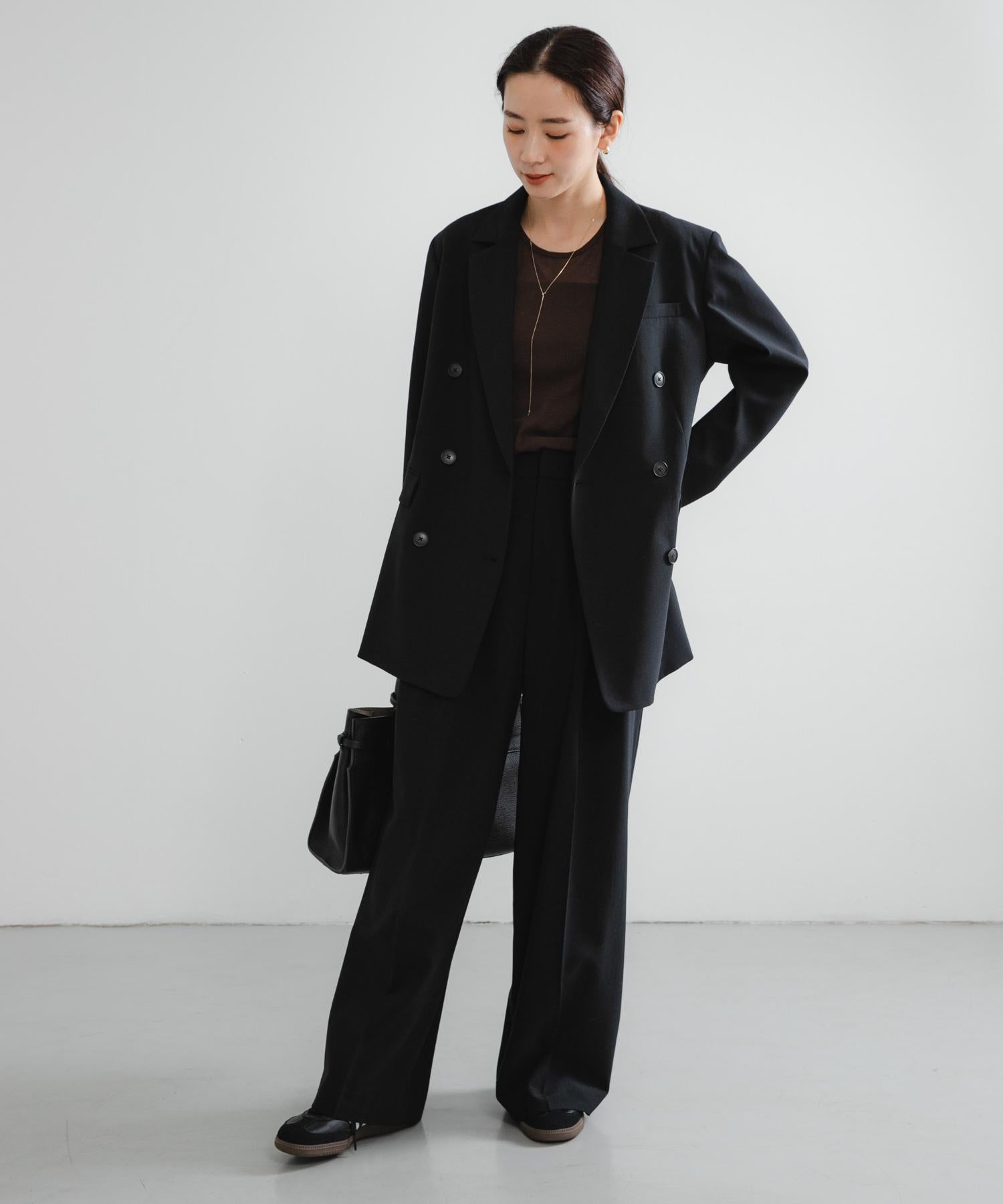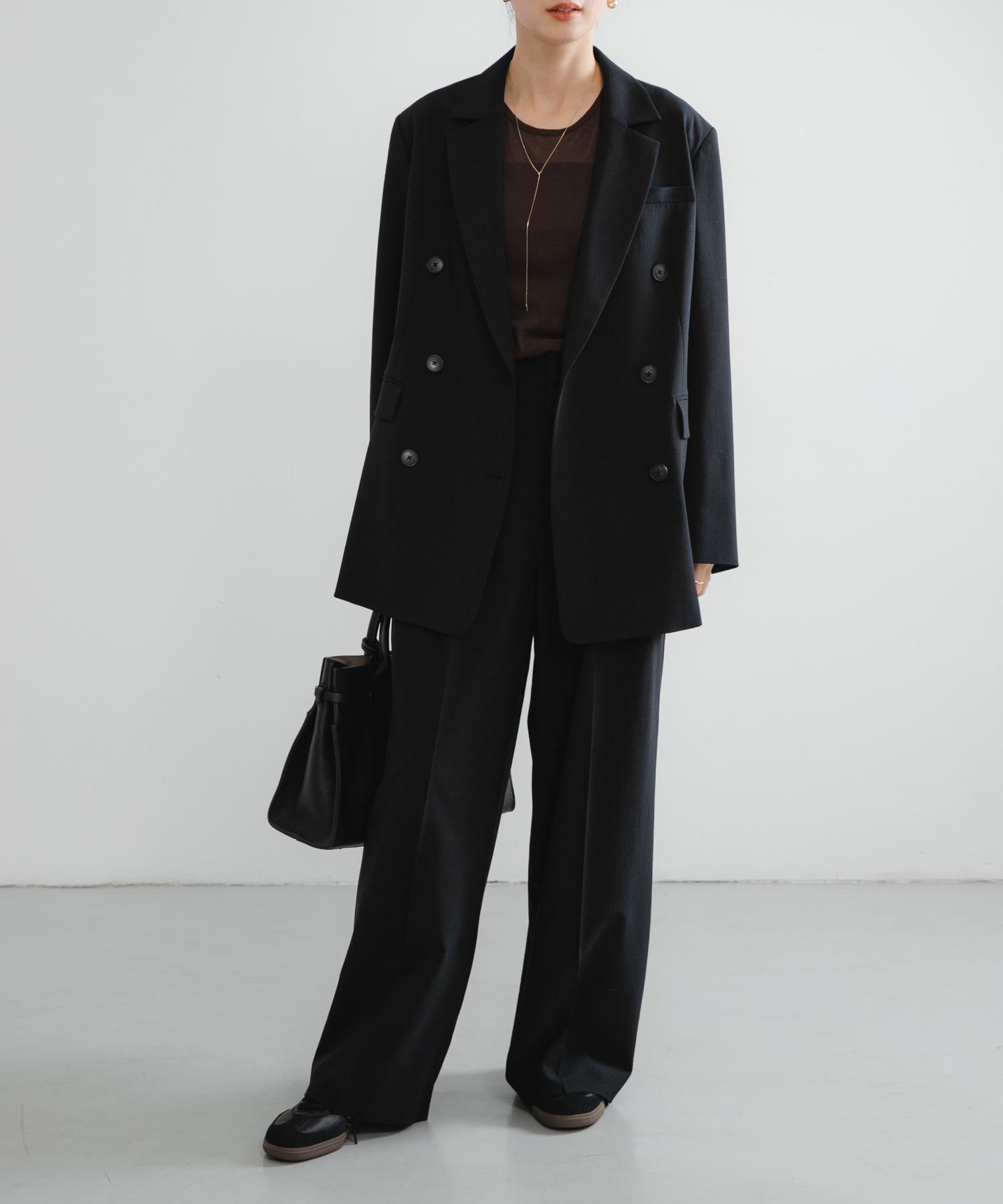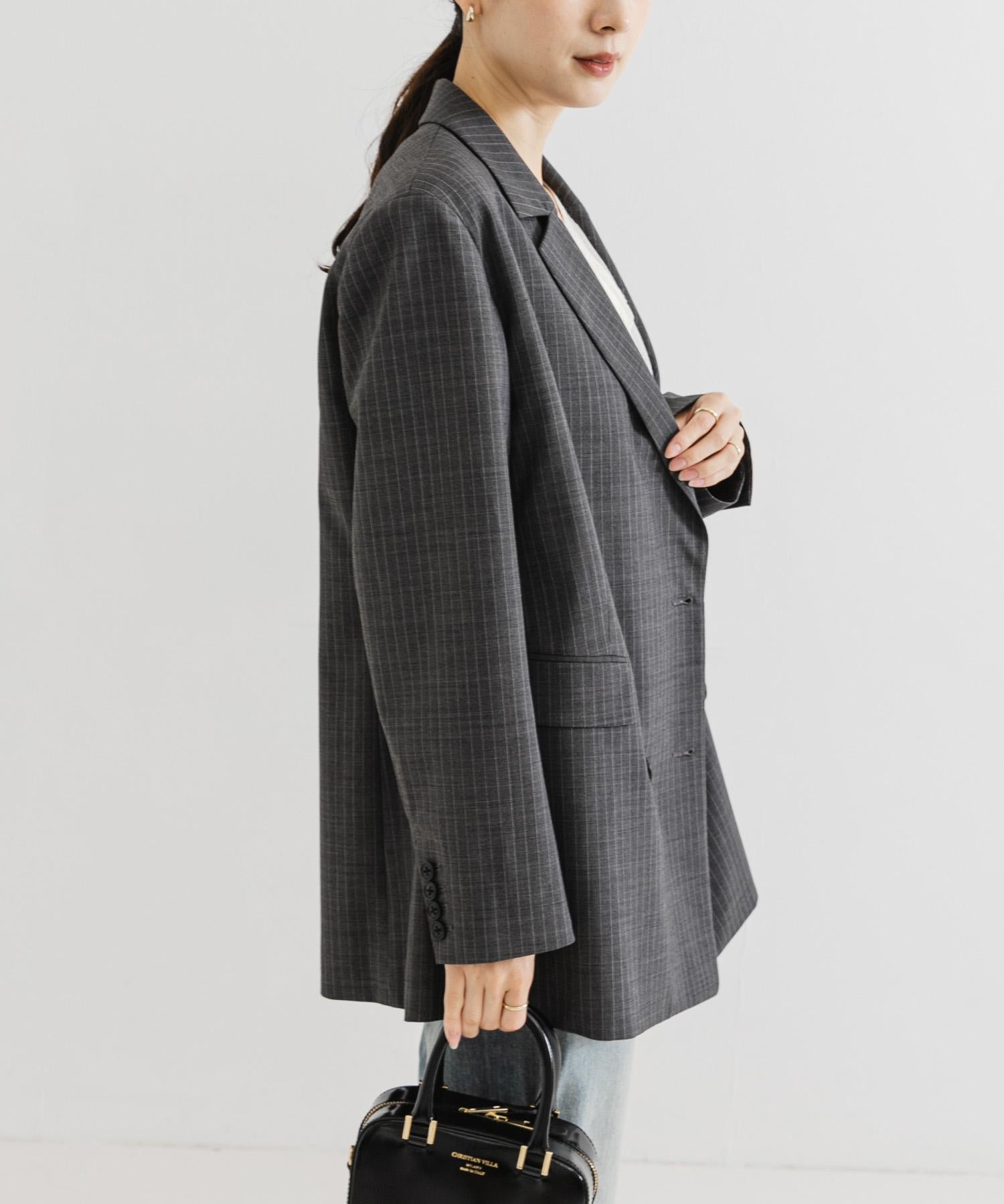 衣身寬度和袖圍都有足夠的空間,因此從初秋到冬季,即使搭配厚針織衫也不會感覺緊繃。也可與相同材質的下裝搭配作為套裝穿著。