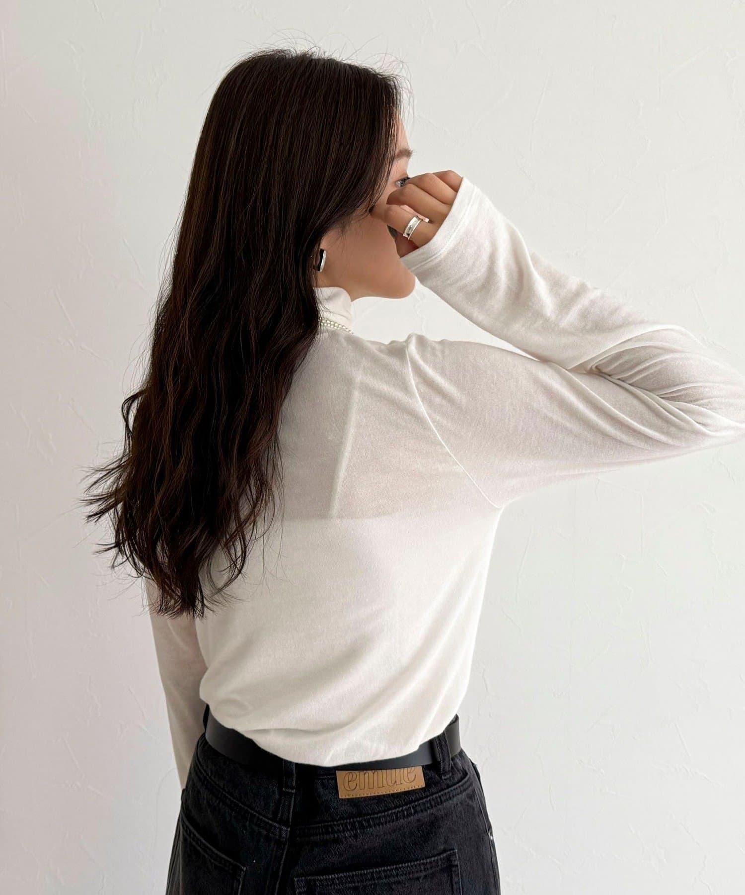 柔軟蓬鬆的羊毛混紡透視高領衫