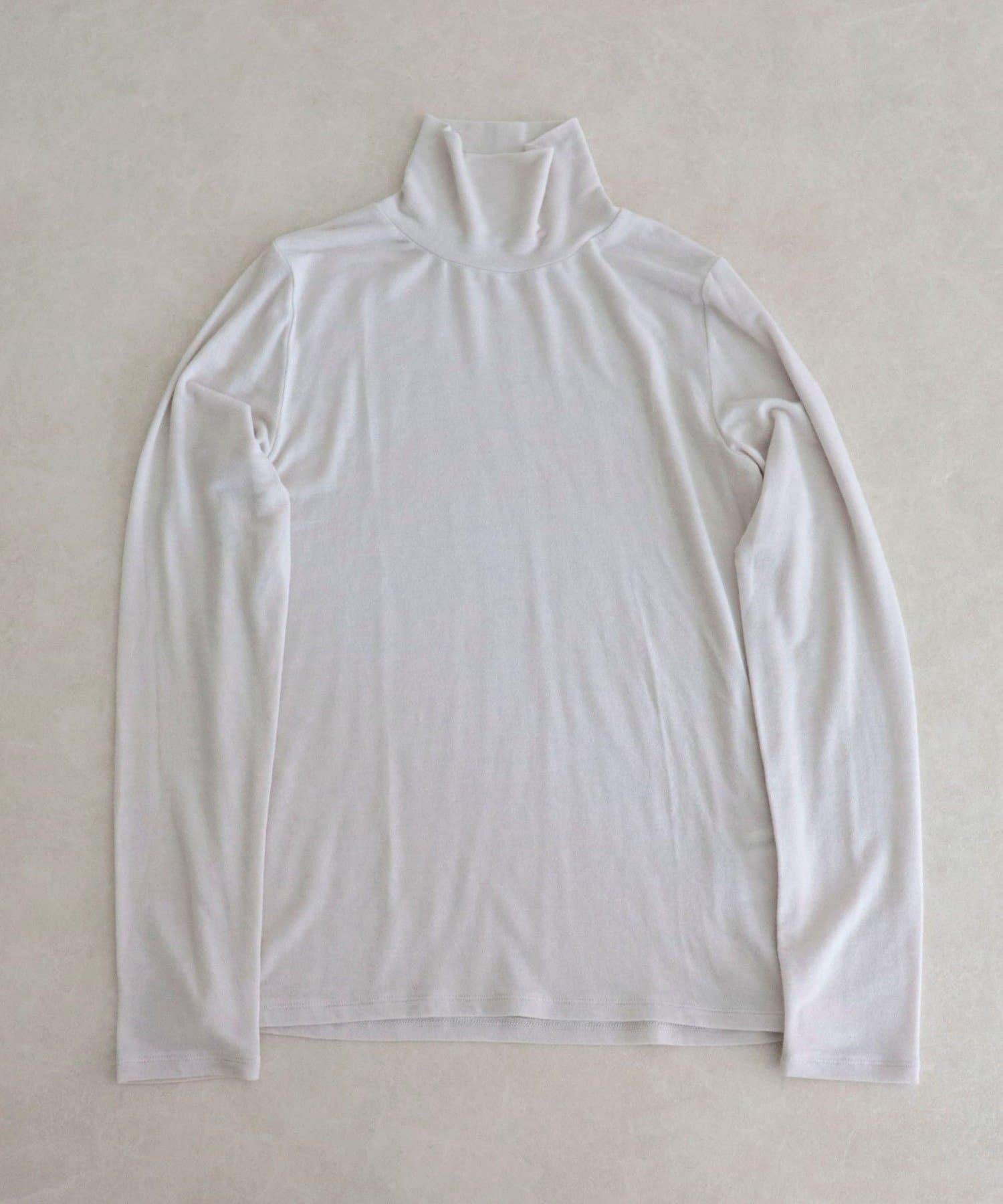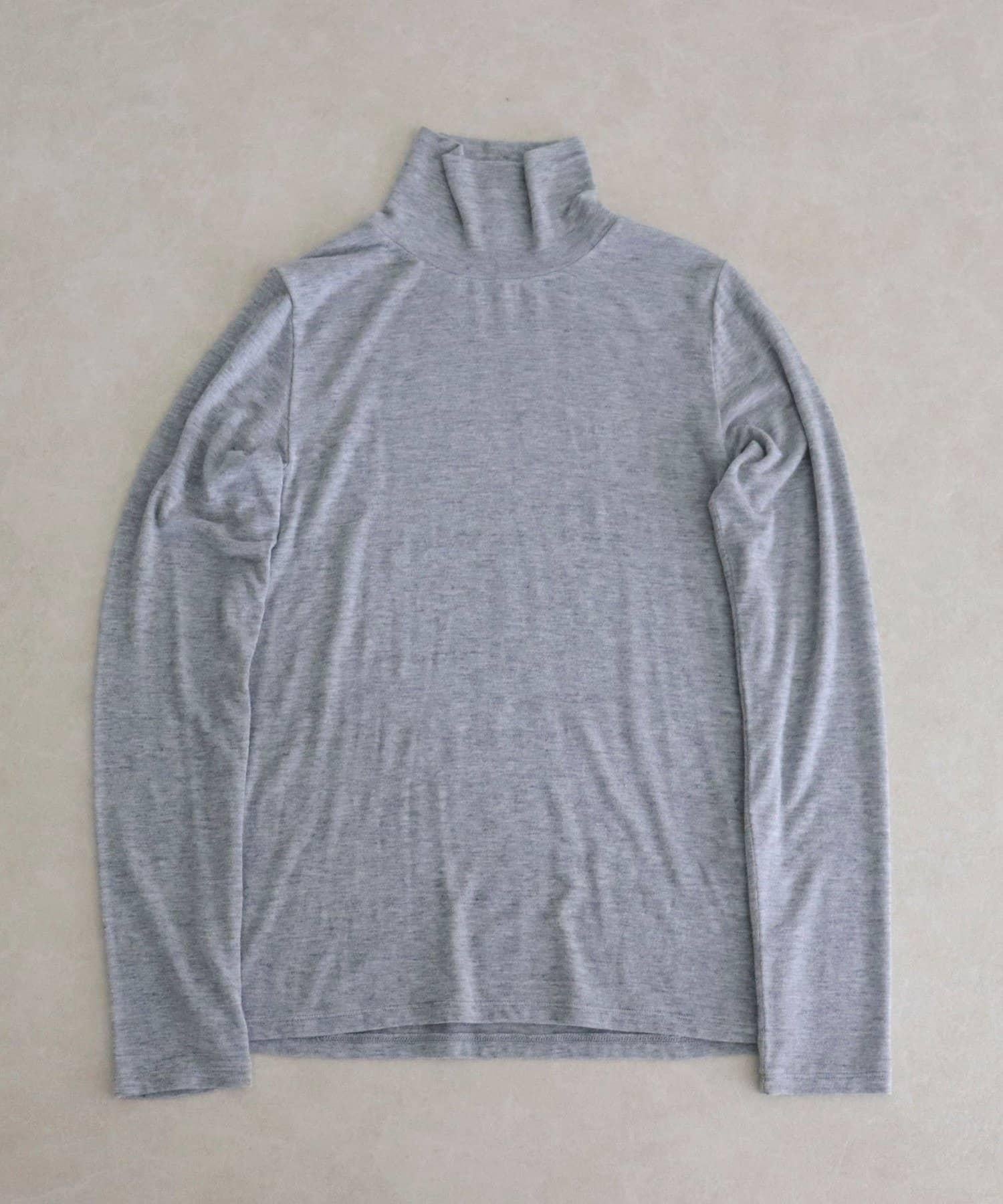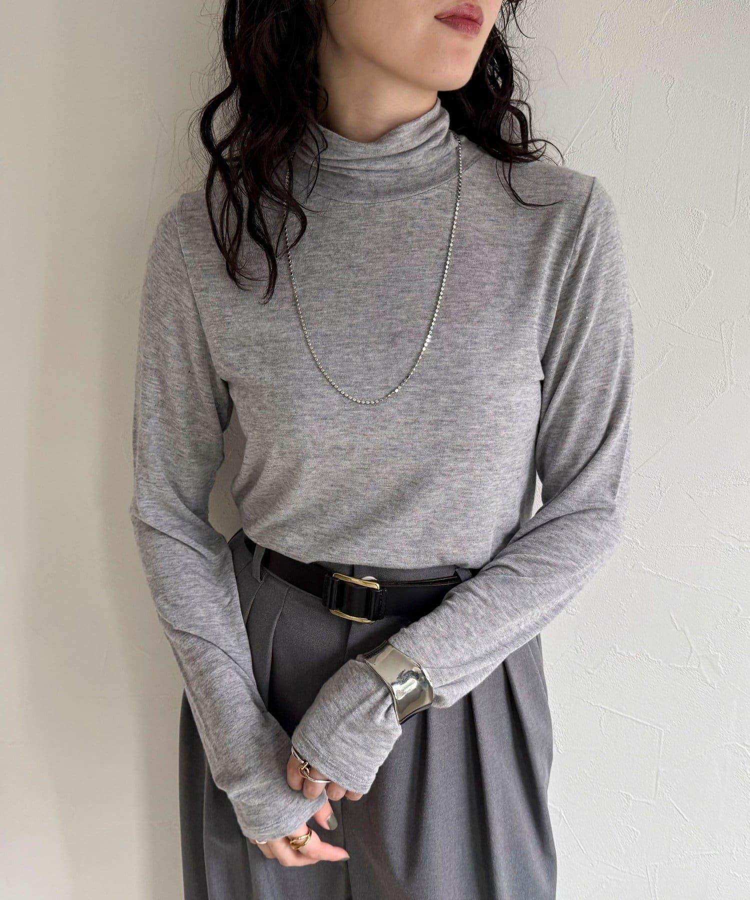 這款高領套頭衫採用羊毛混紡面料製成,具有適度的透視感。