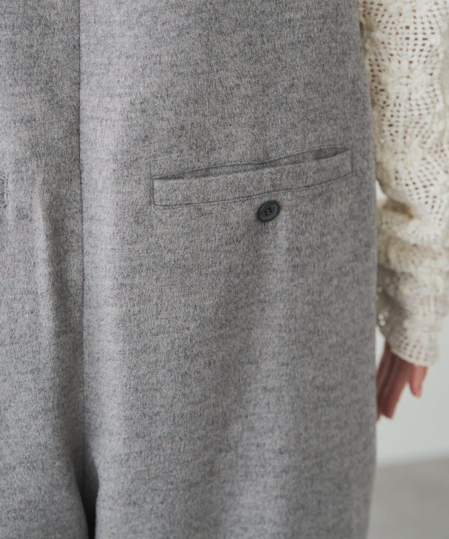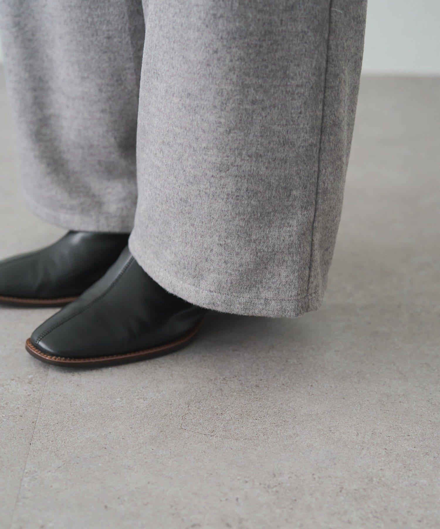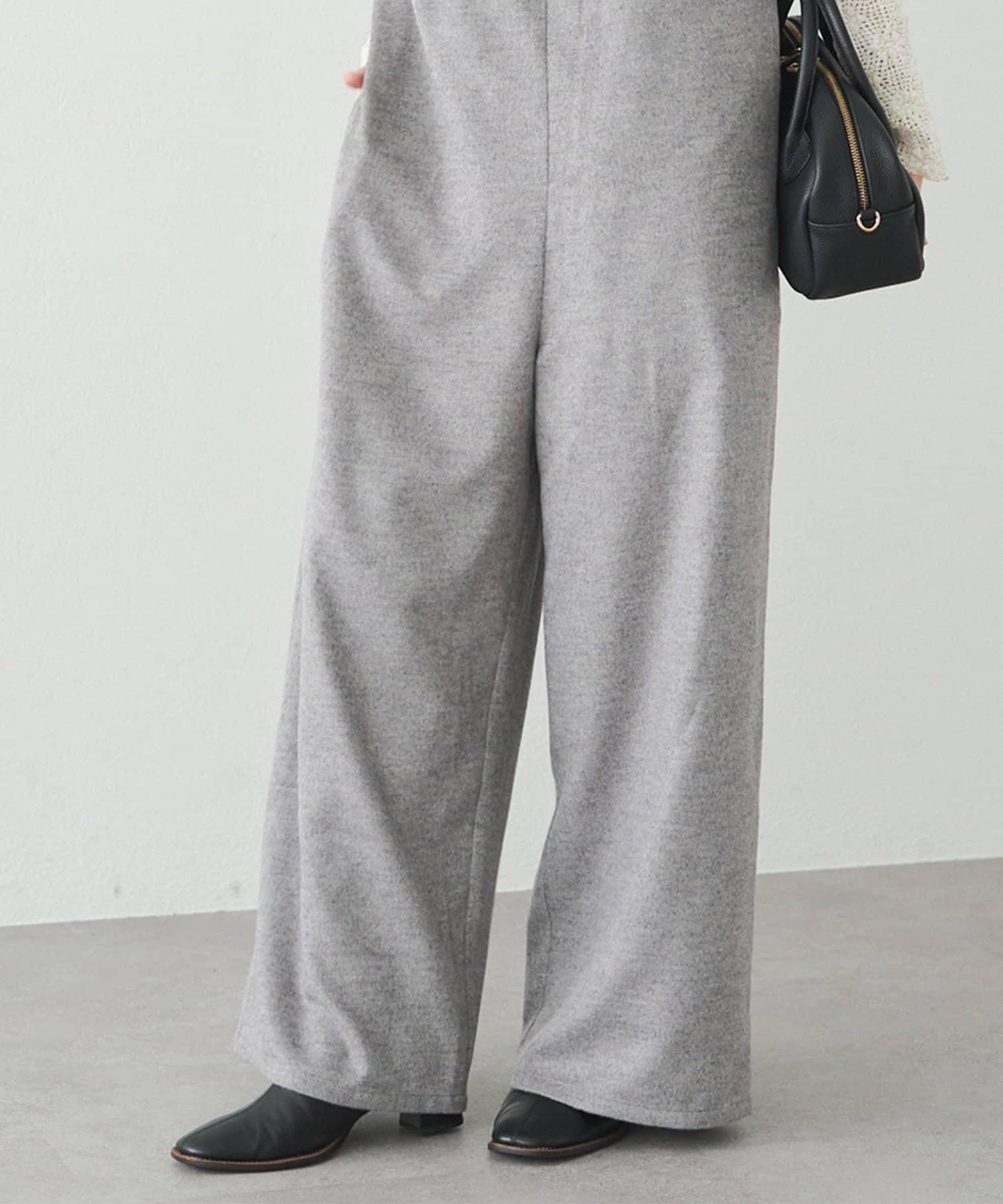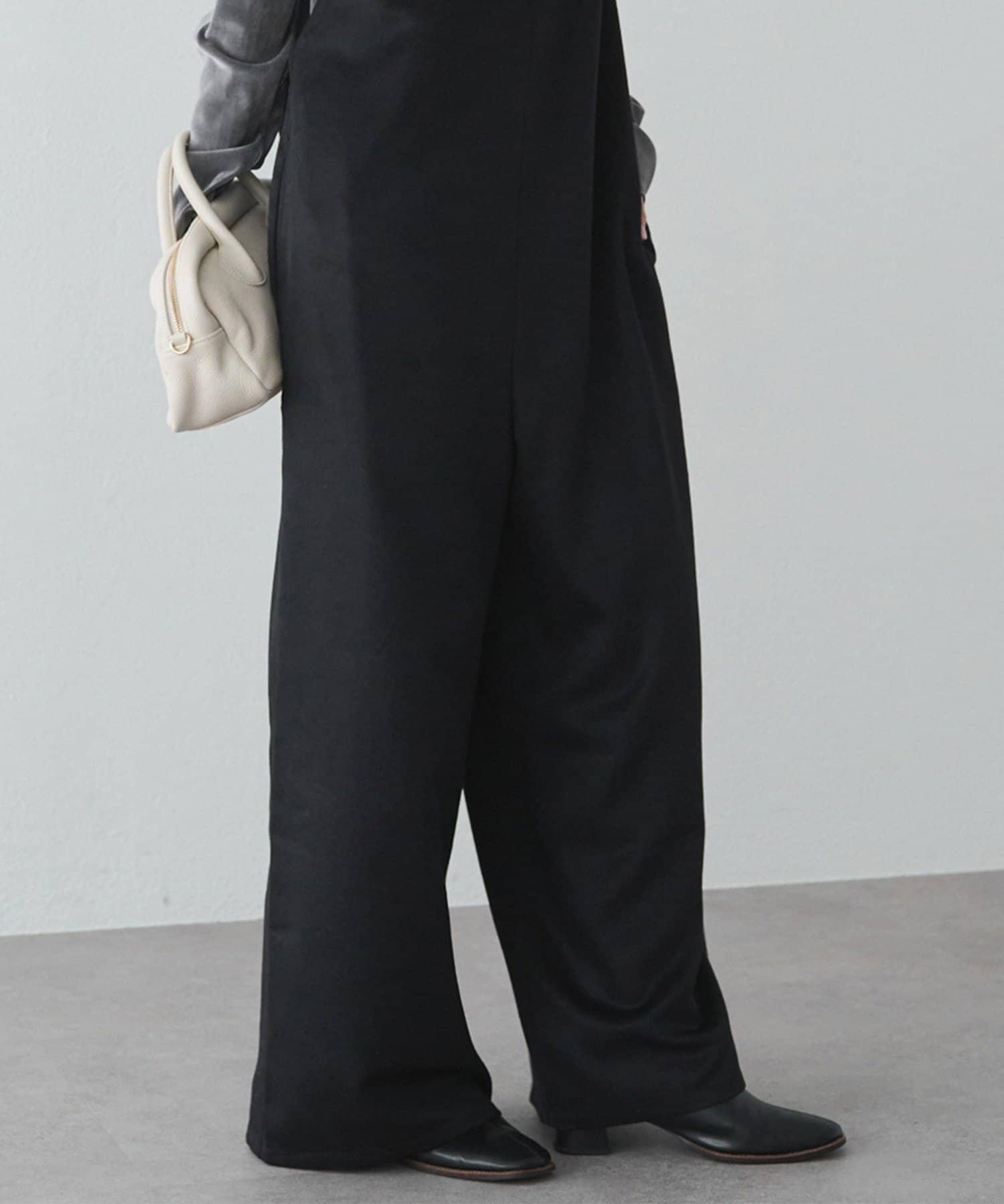 略顯寬敞的長褲採用半寬大的剪裁,下襬呈彎腰狀、