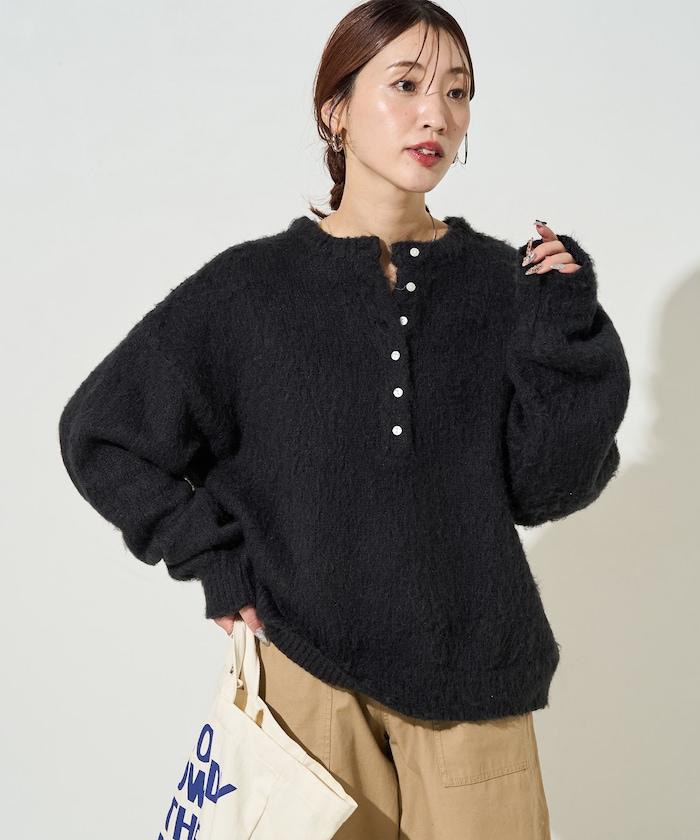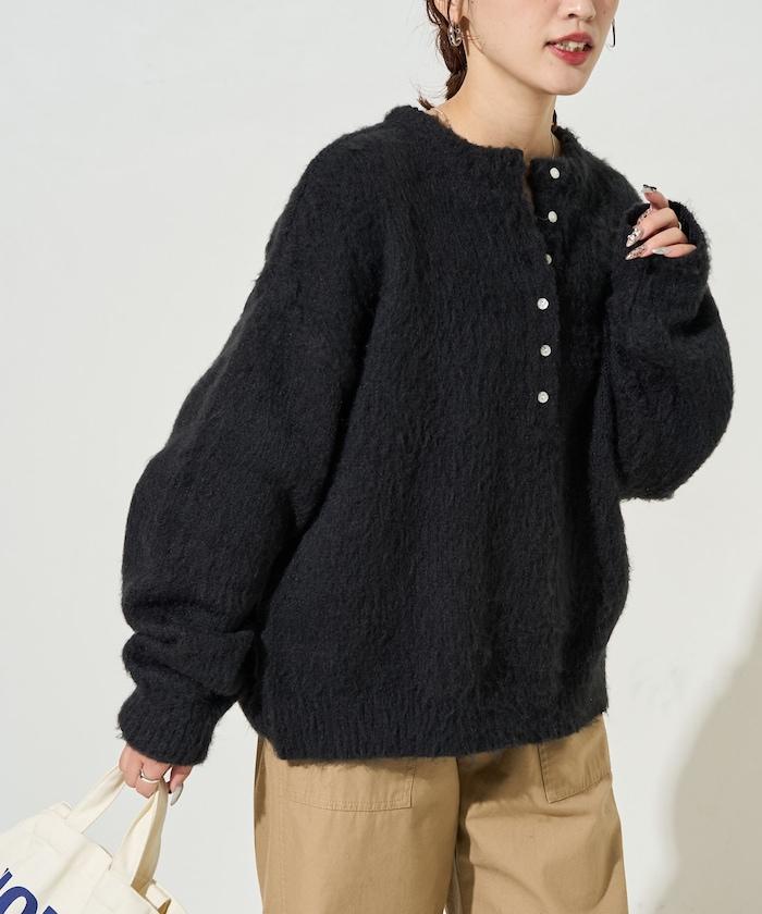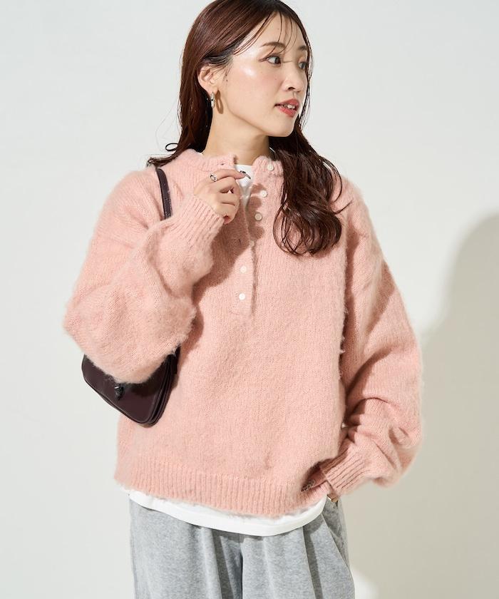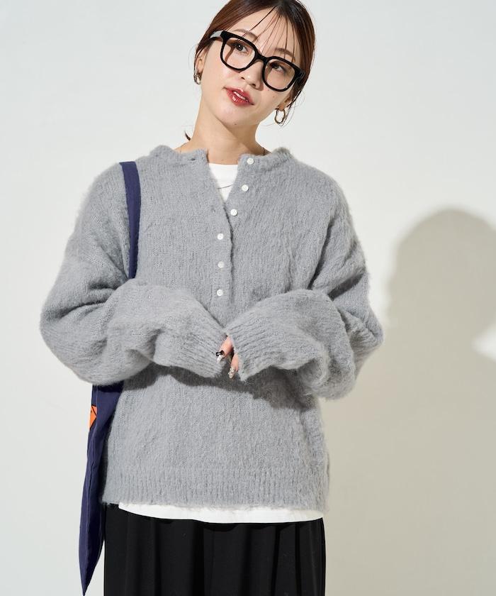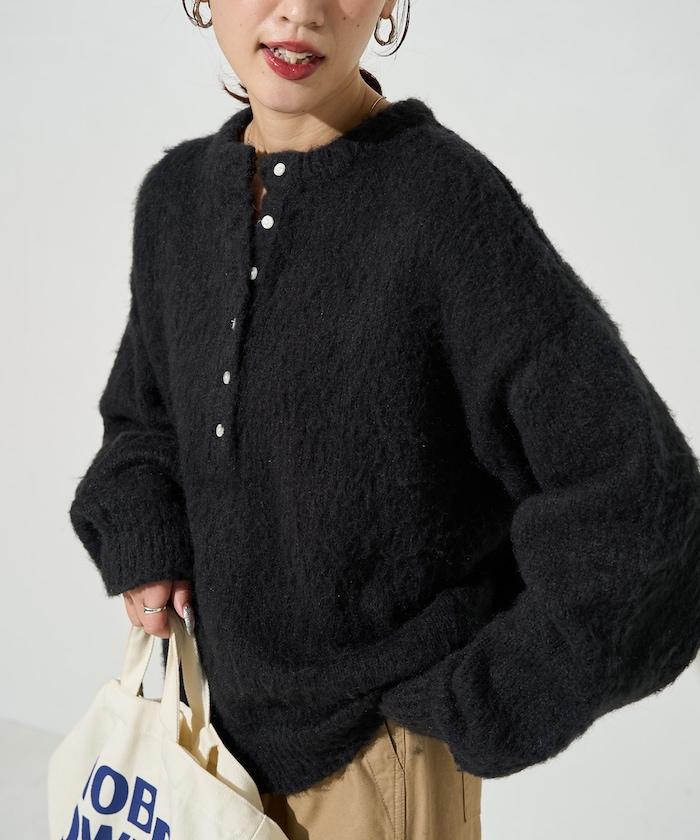 蓬鬆毛茸茸的外觀!寬鬆感亨利針織衫