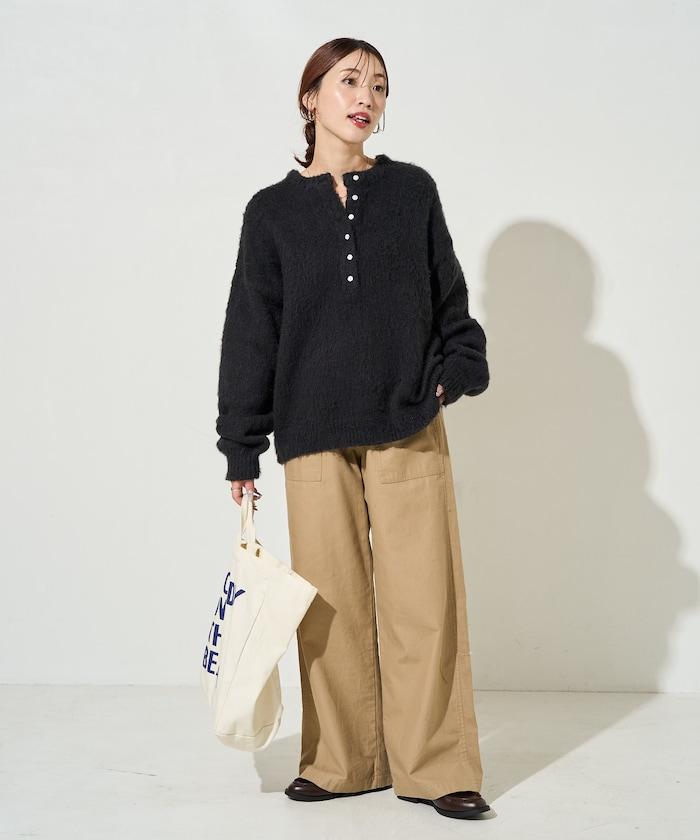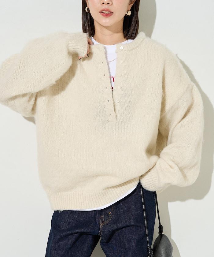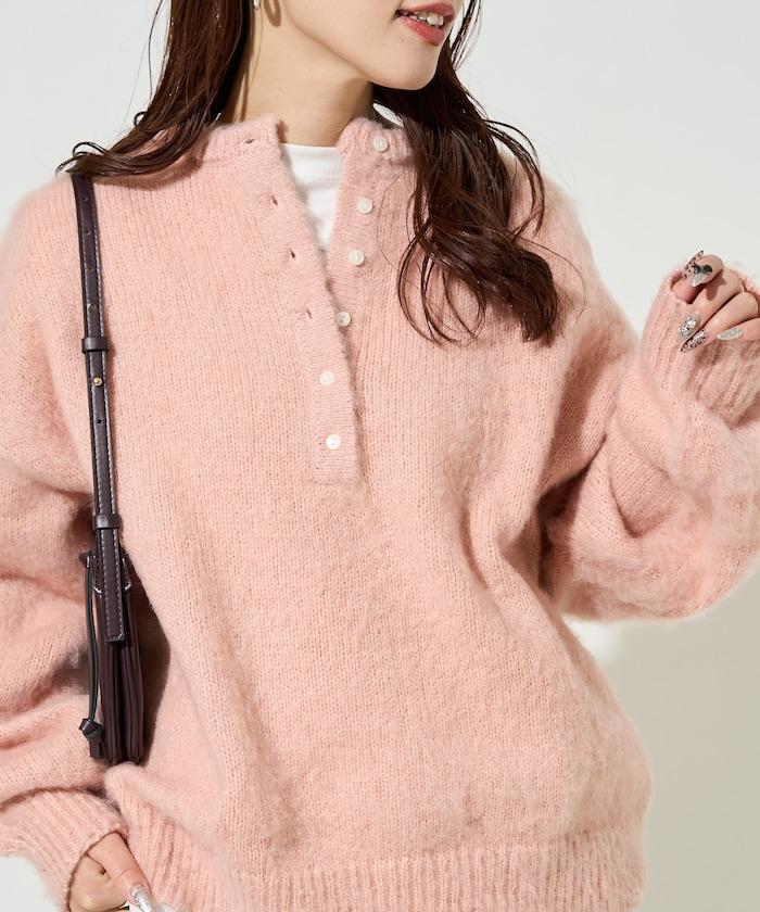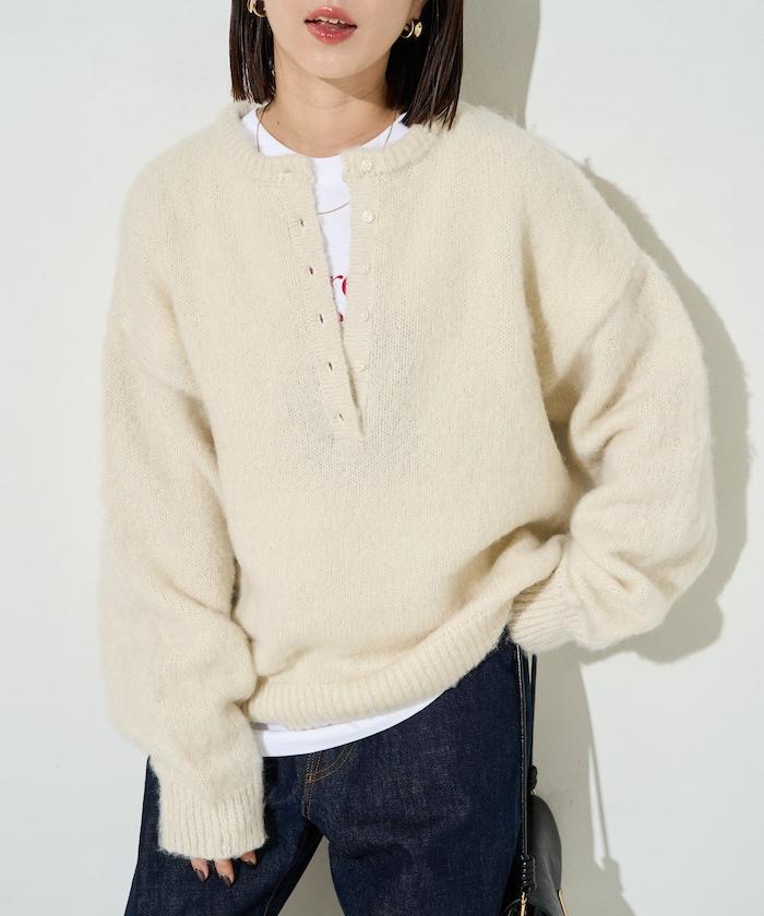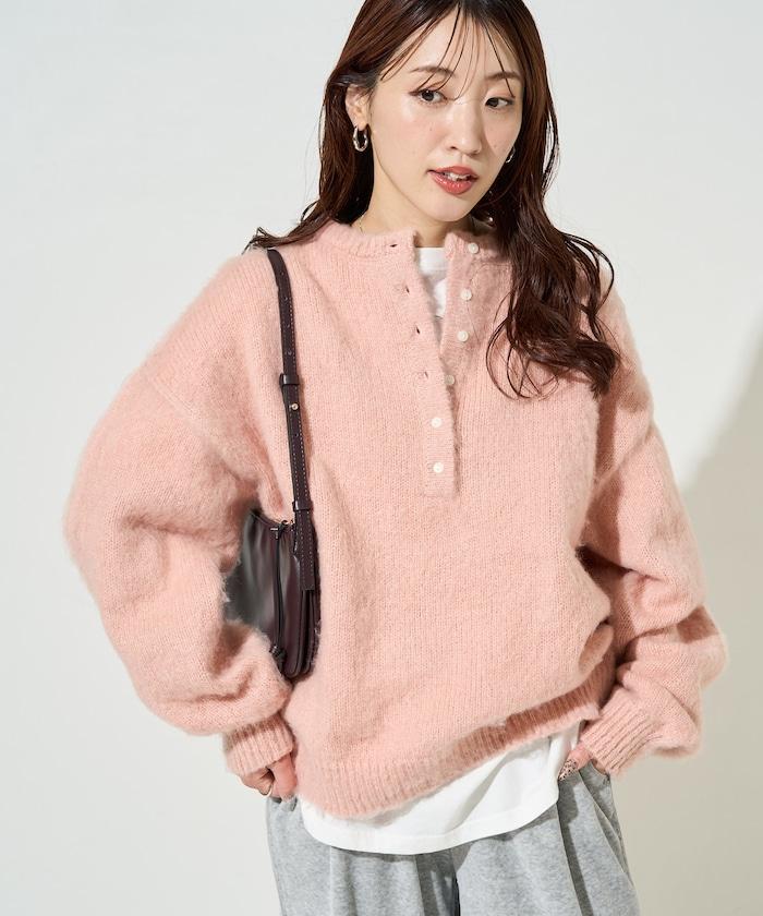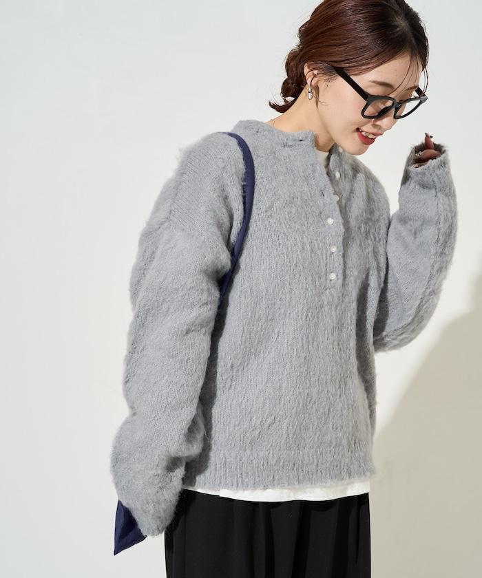 蓬鬆毛茸茸的外觀!寬鬆感亨利針織衫