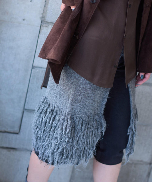 穿長筒靴的潮流仍在繼續,建議用迷你裙搭配大碼上衣或外套。