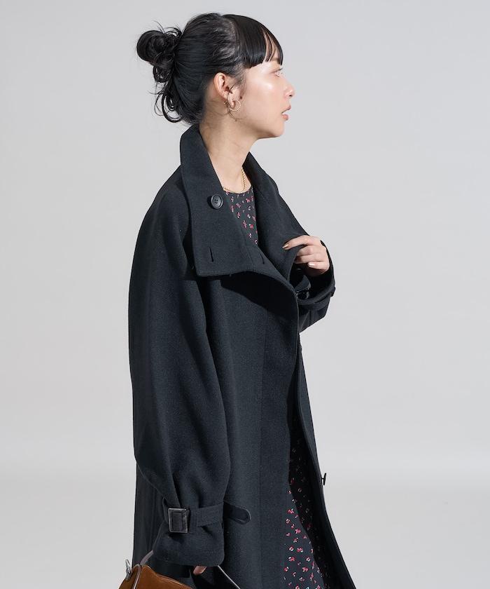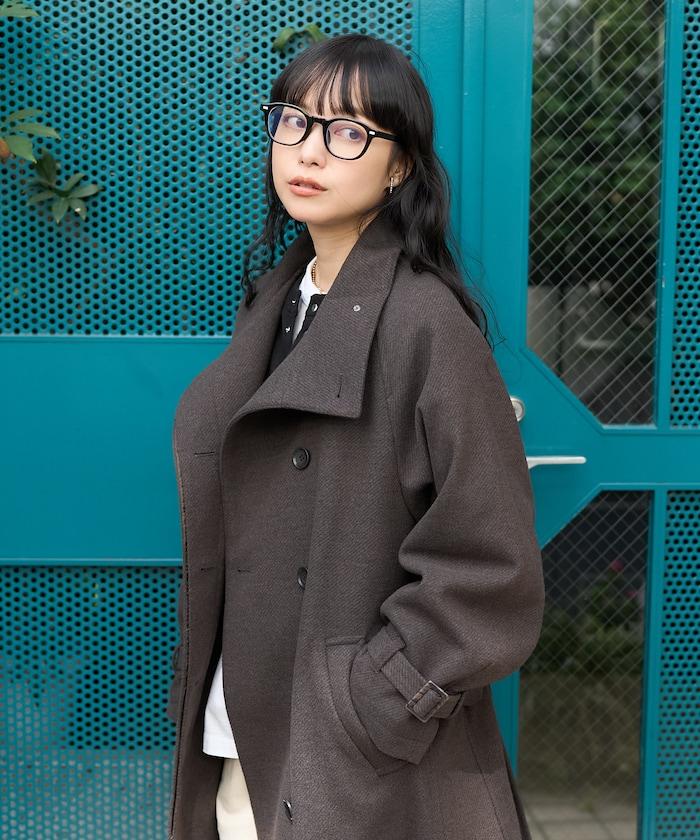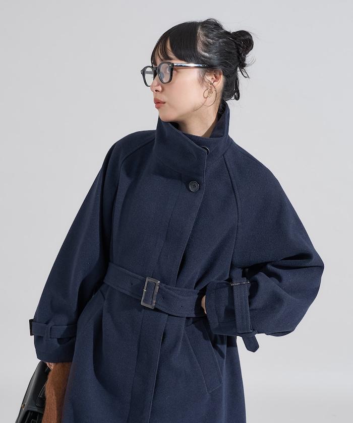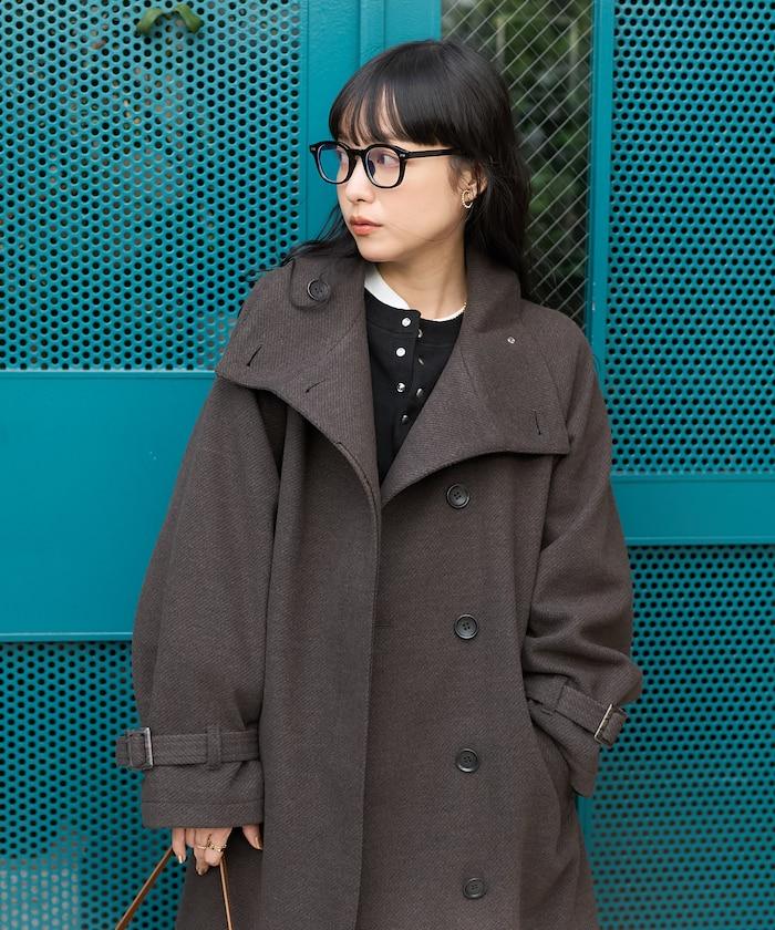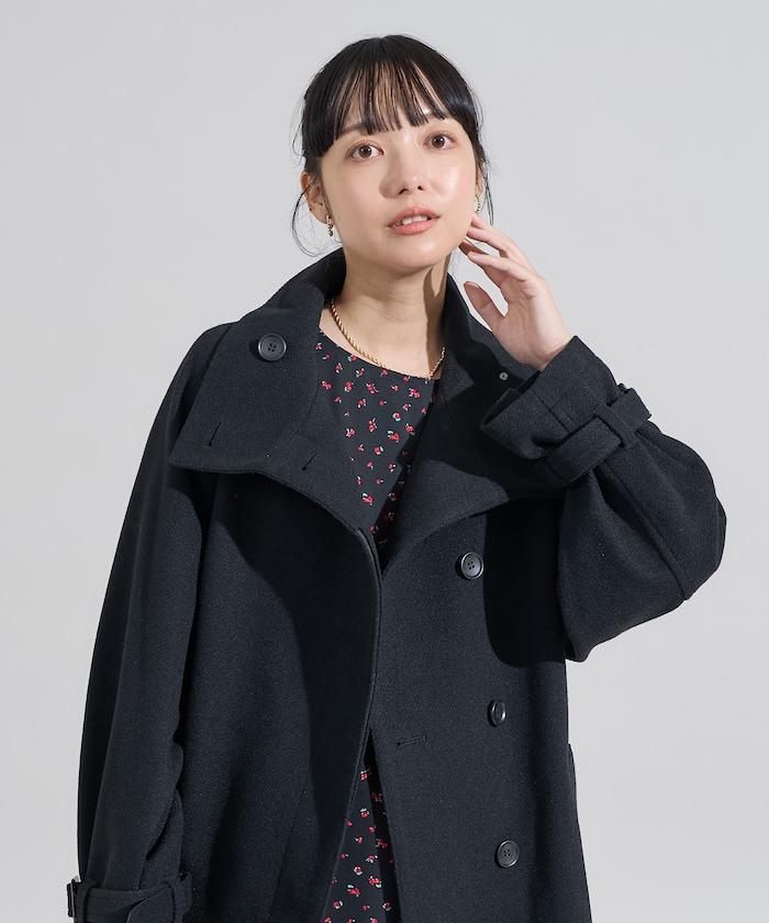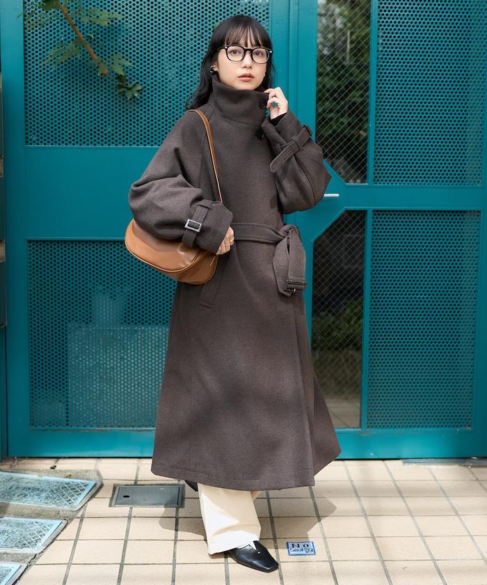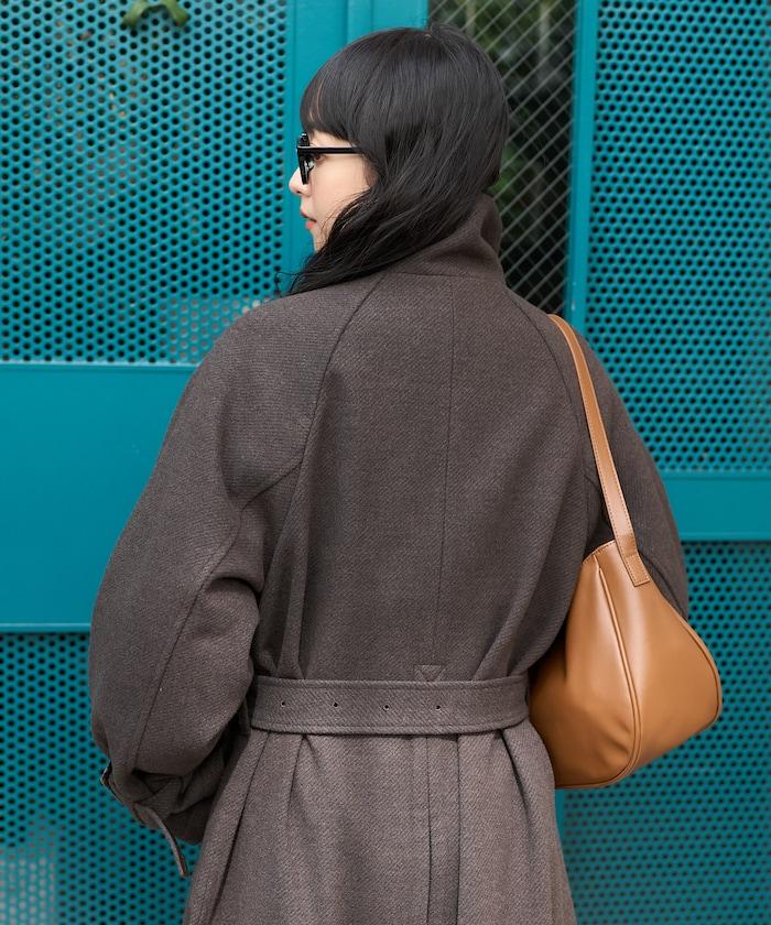 羊毛高領帳篷線中長款大衣/1153248901551