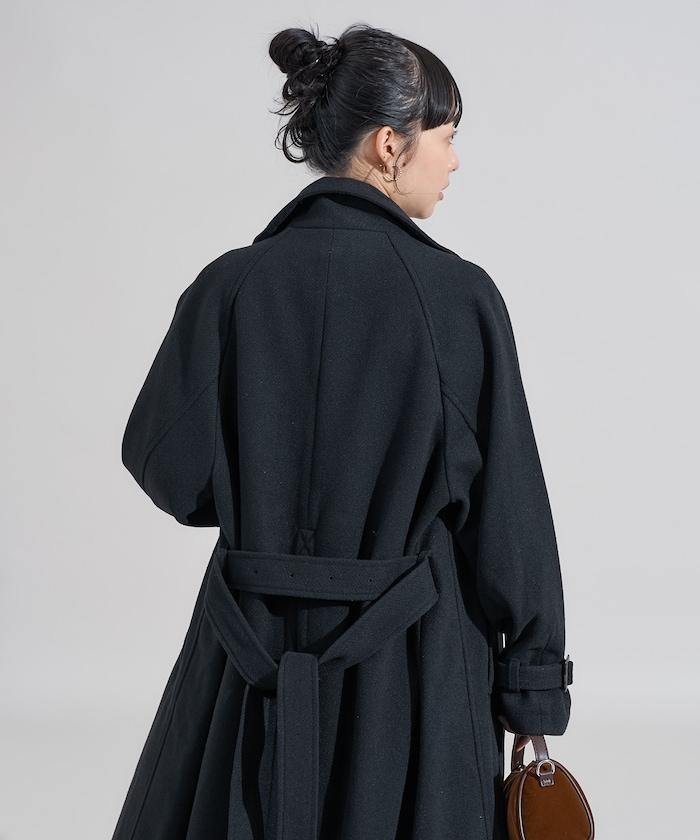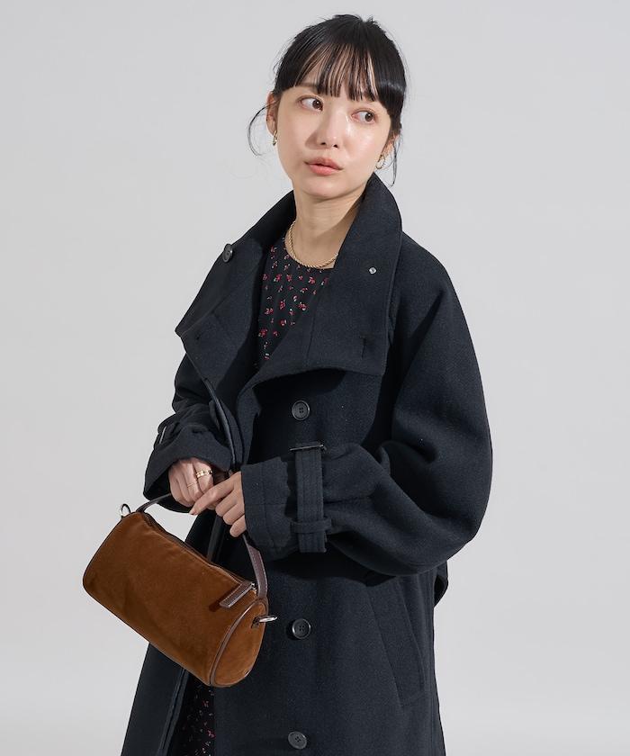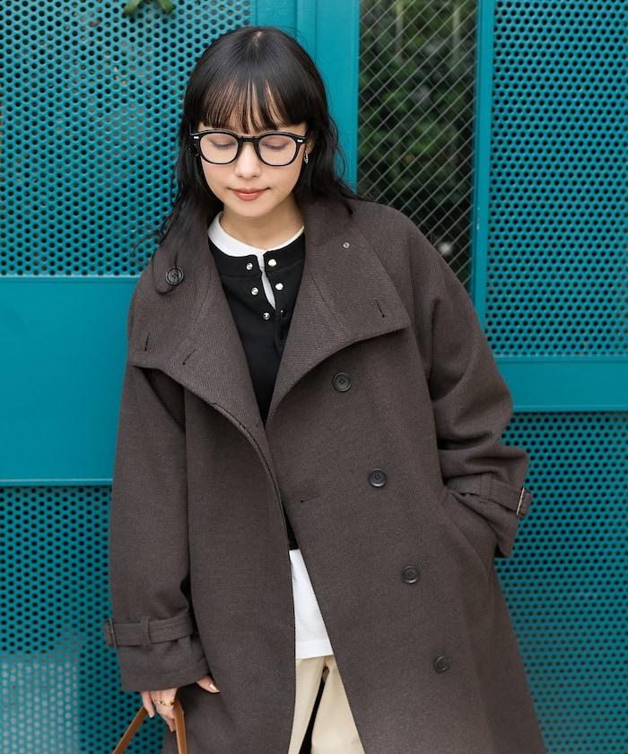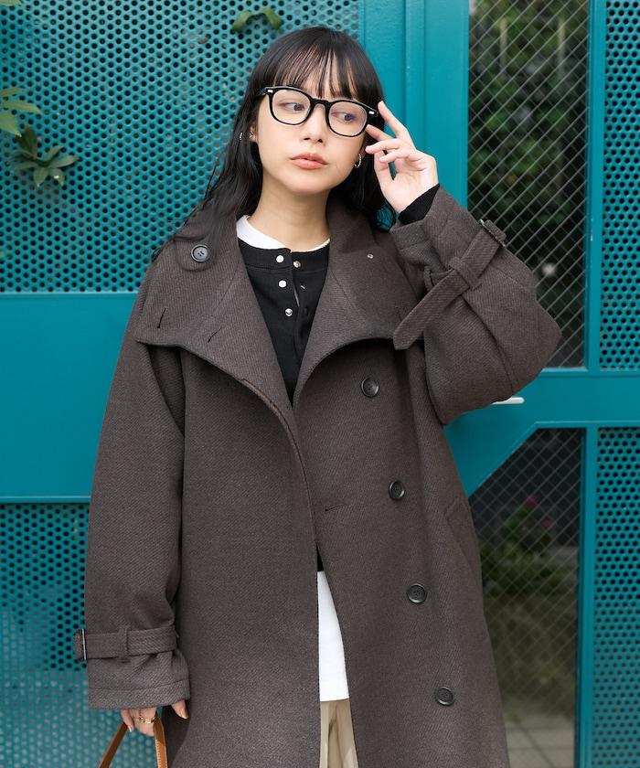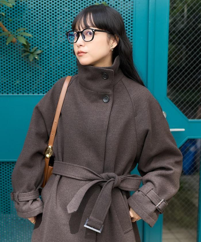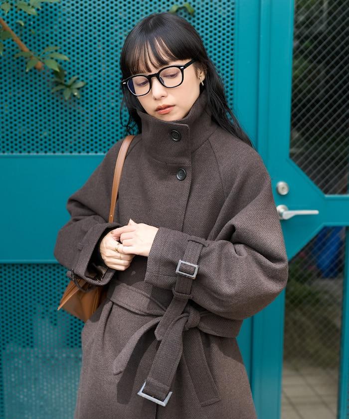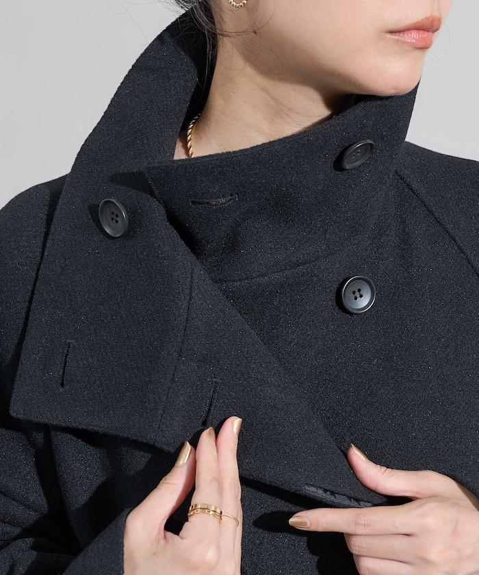 羊毛高領帳篷線中長款大衣/1153248901551