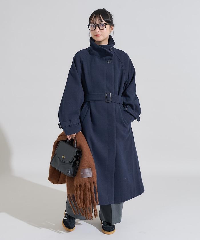 羊毛高領長款大衣/1152248900966