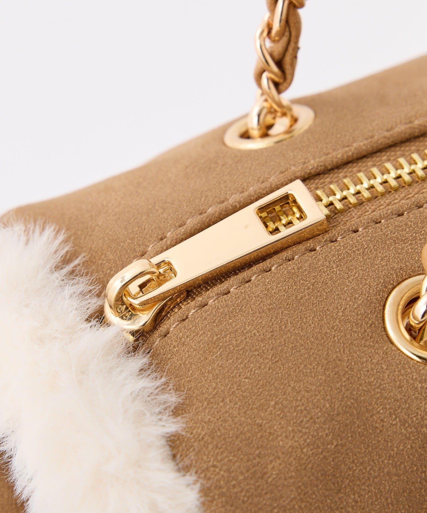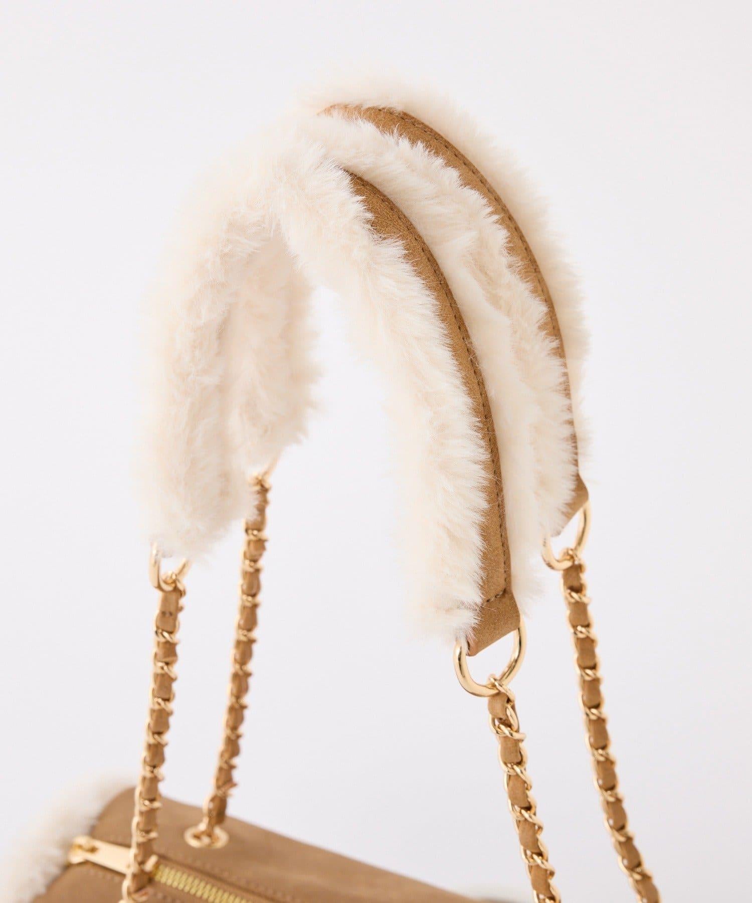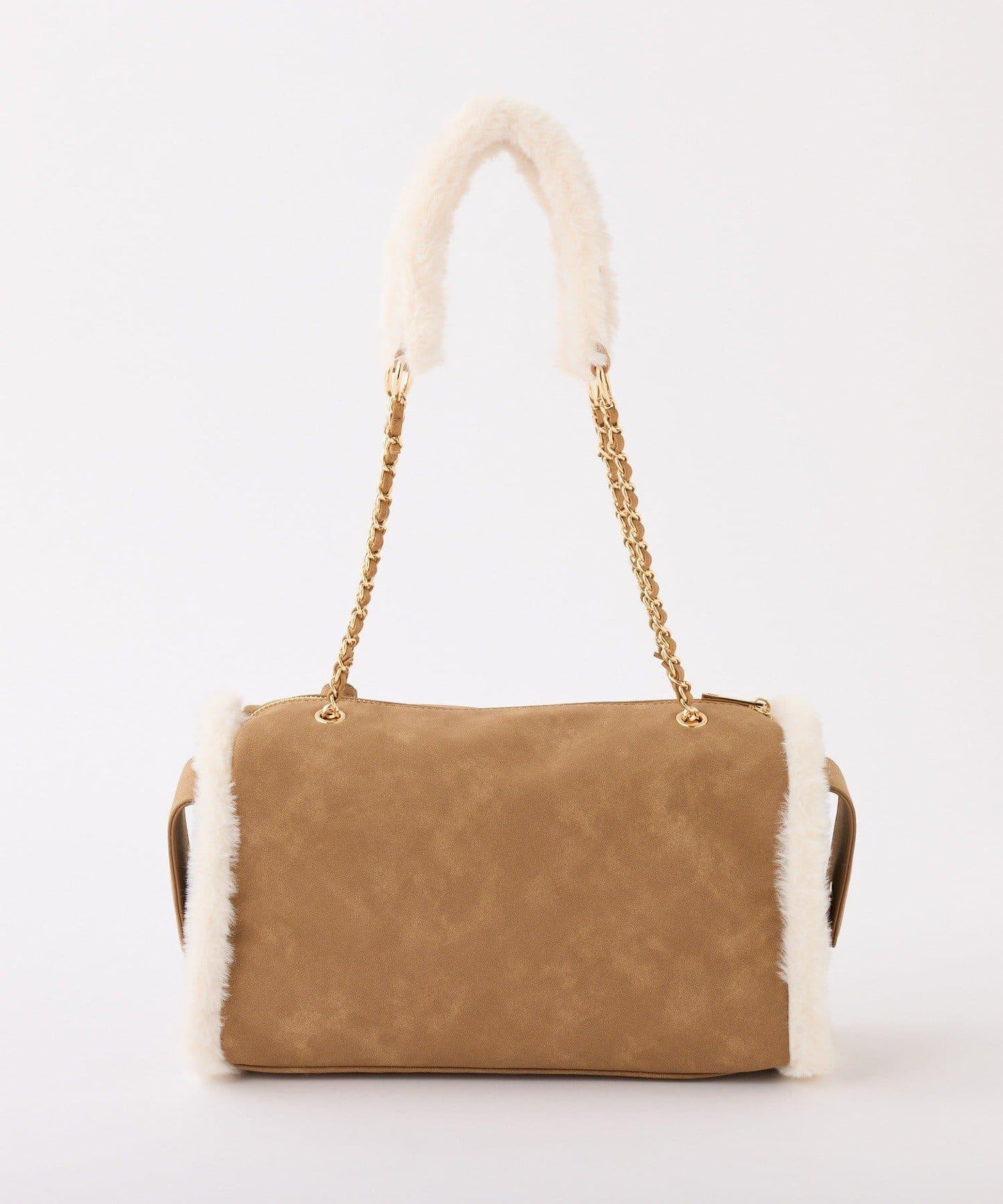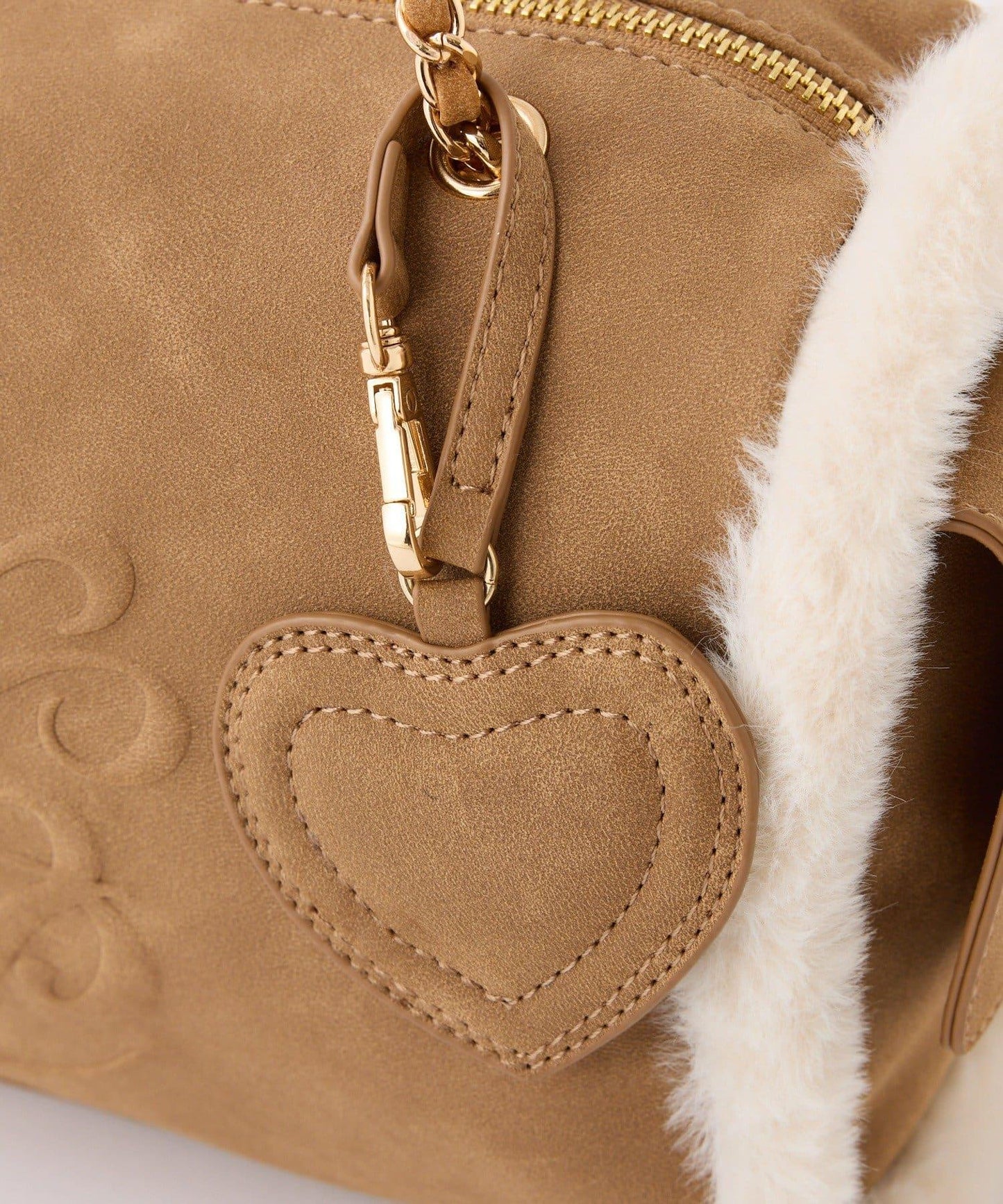 這款手袋採用柔軟的 Mouton 材料製成,帶有浮雕裝飾。