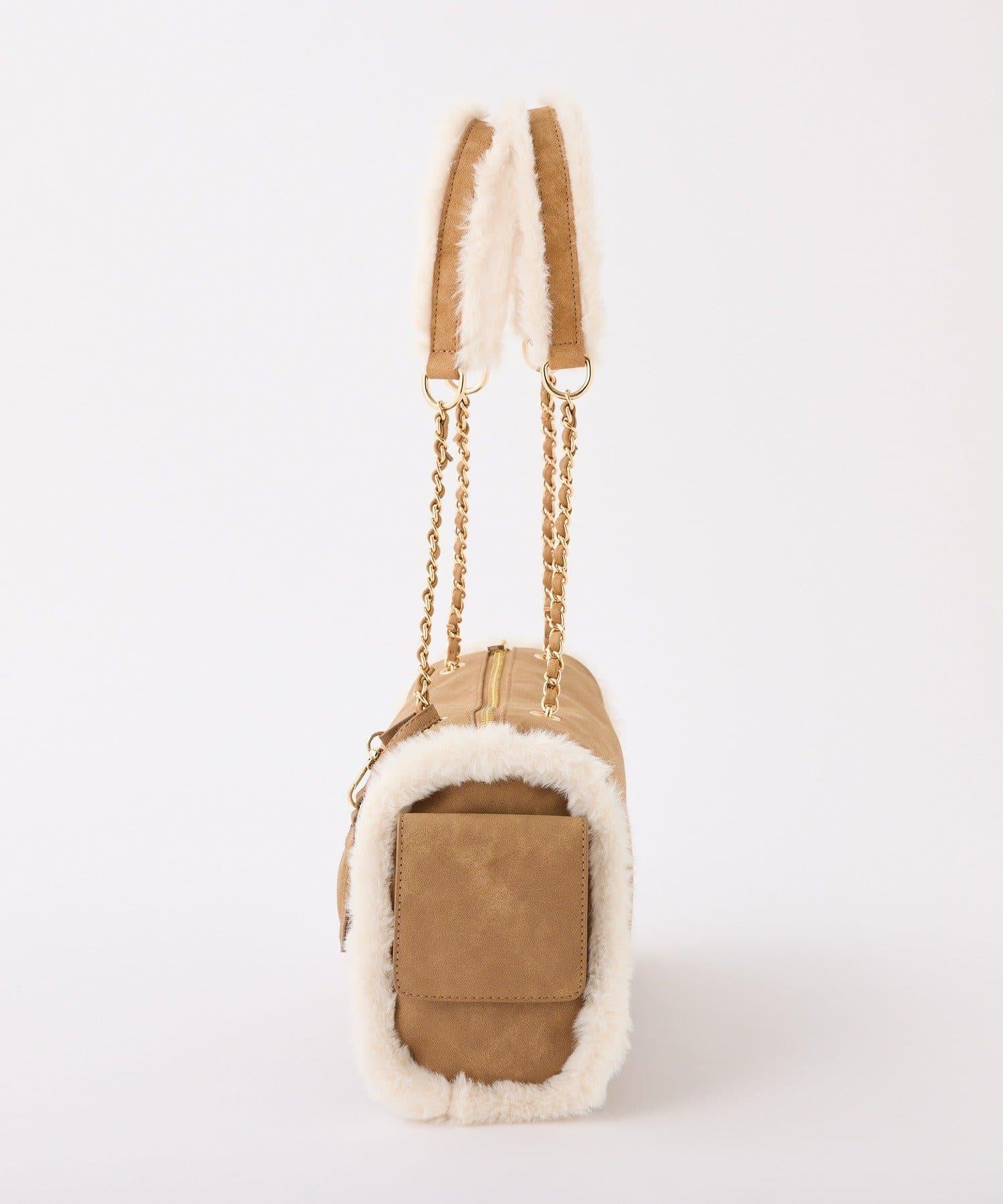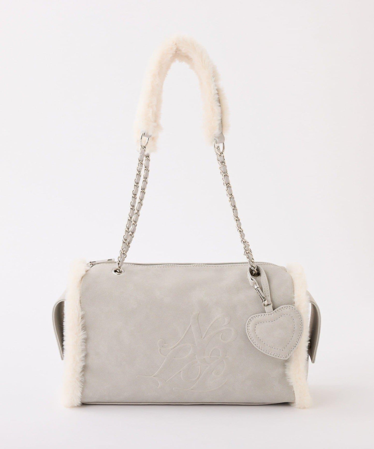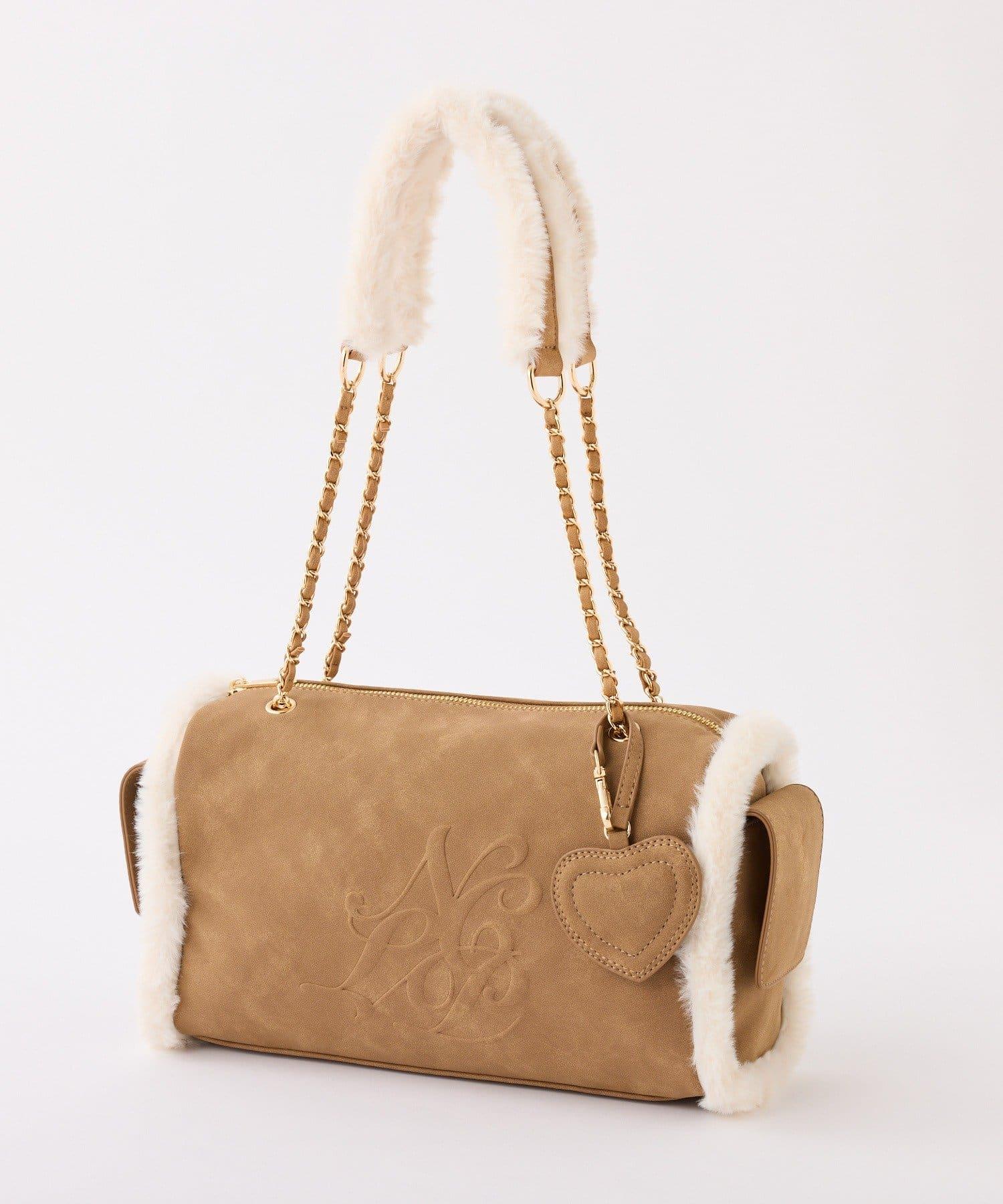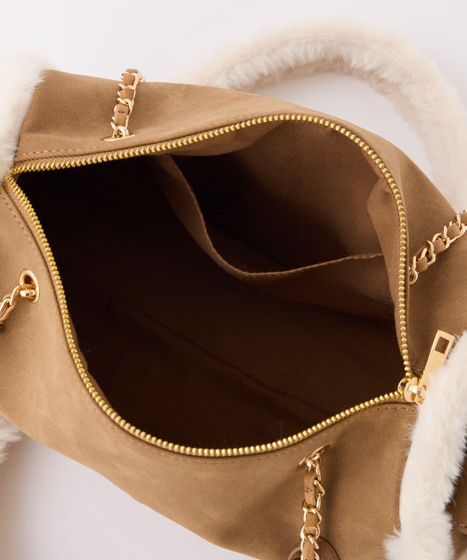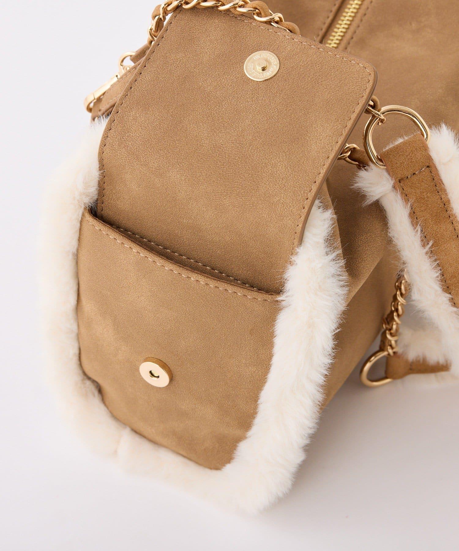 這款手袋採用柔軟的 Mouton 材料製成,帶有浮雕裝飾。