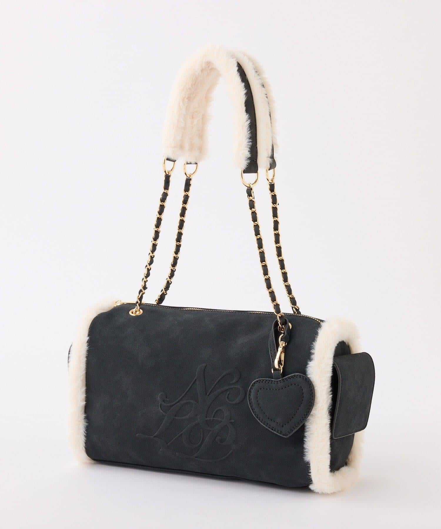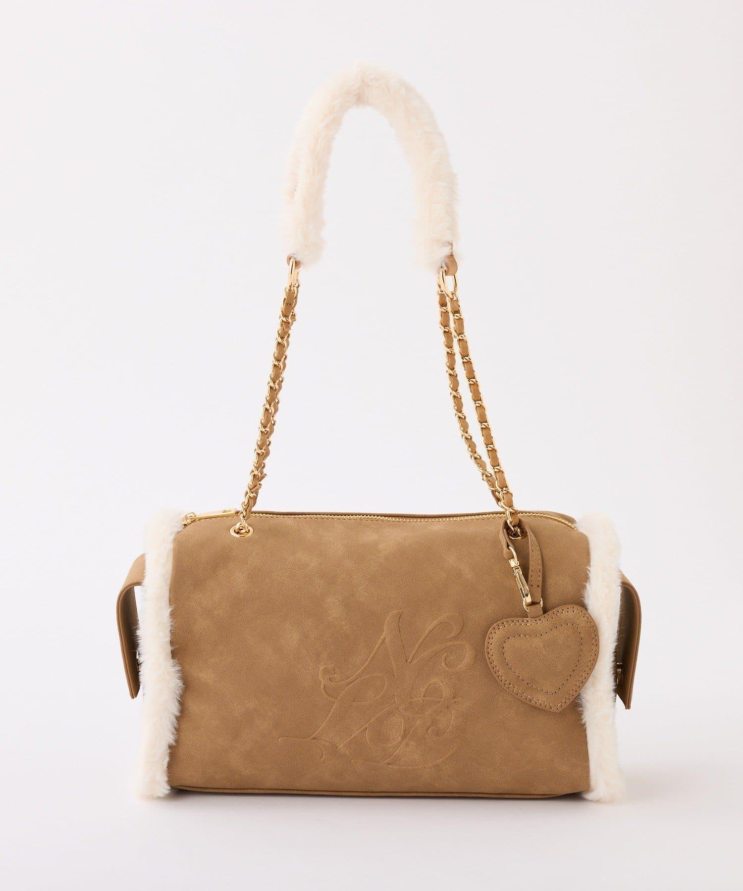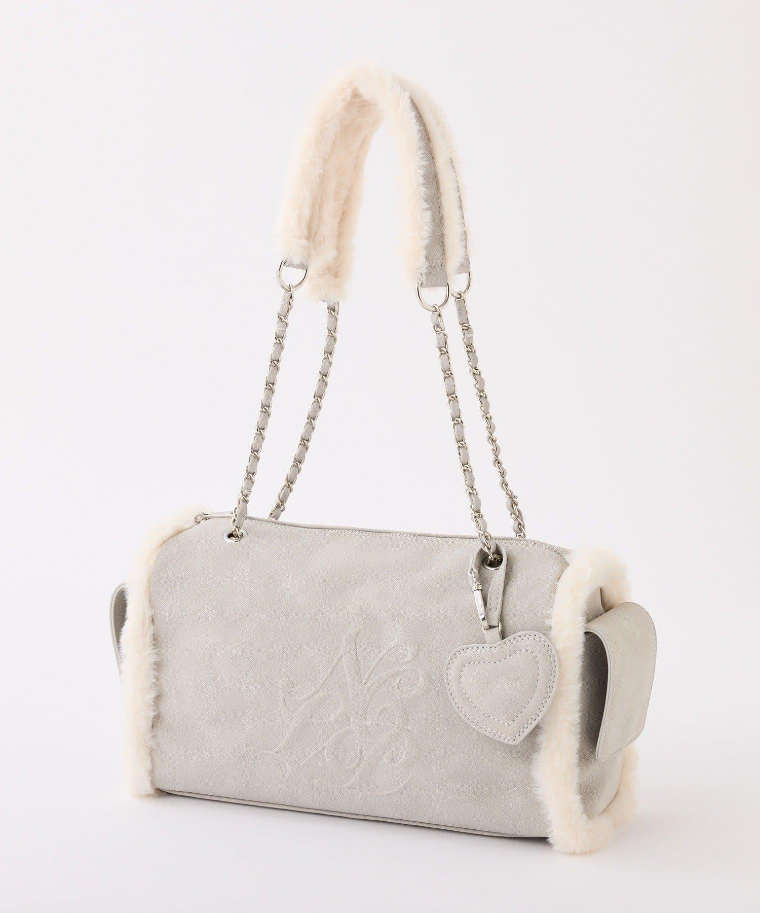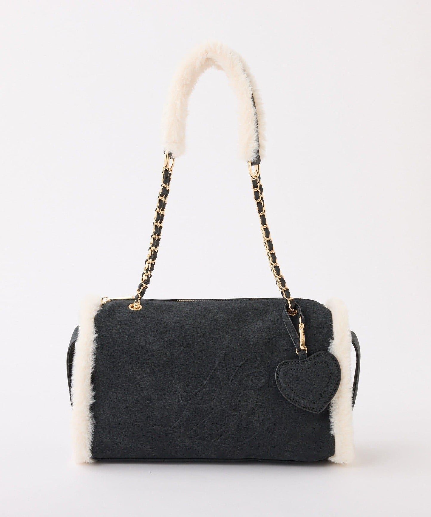 這款手袋採用柔軟的 Mouton 材料製成,帶有浮雕裝飾。