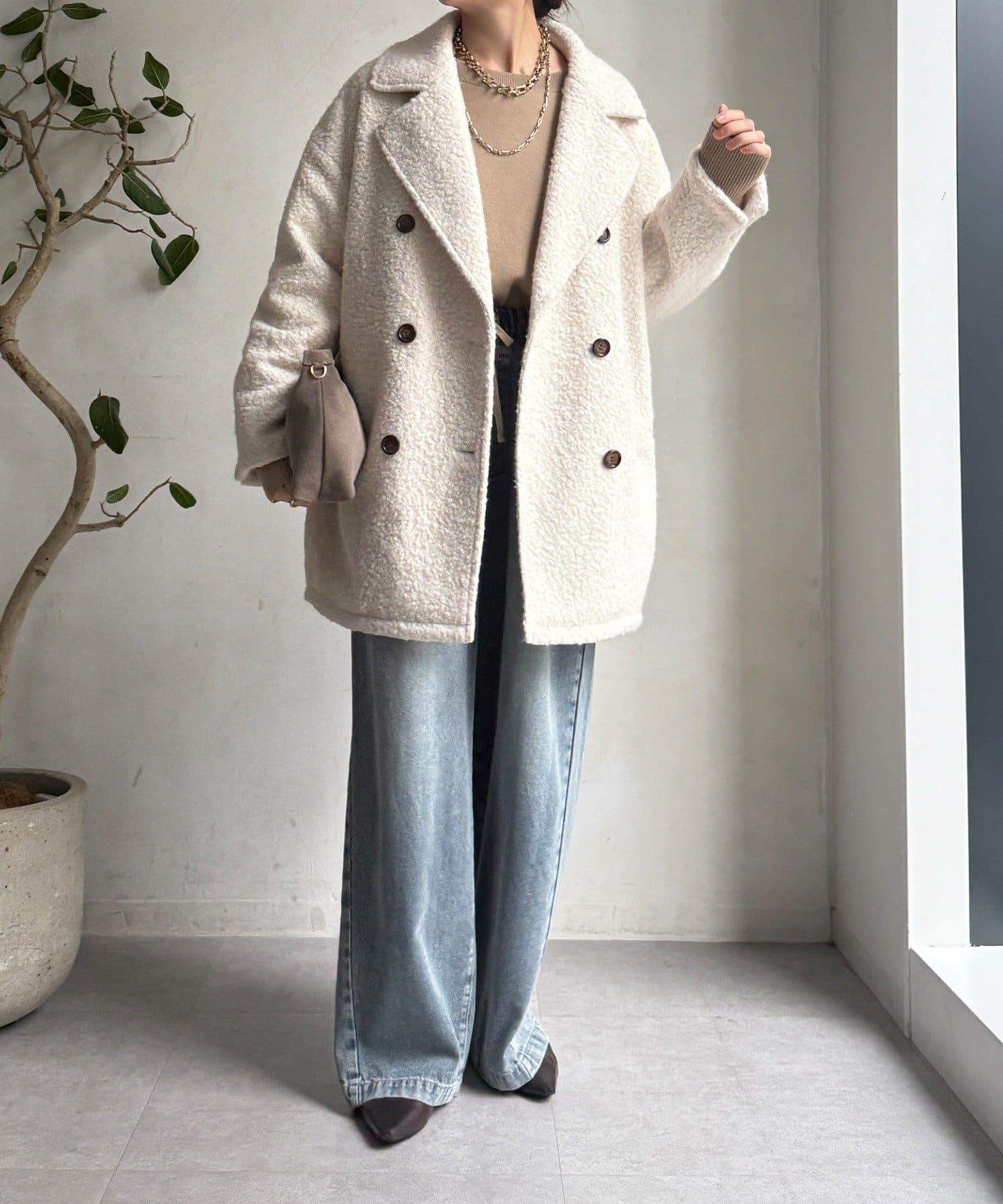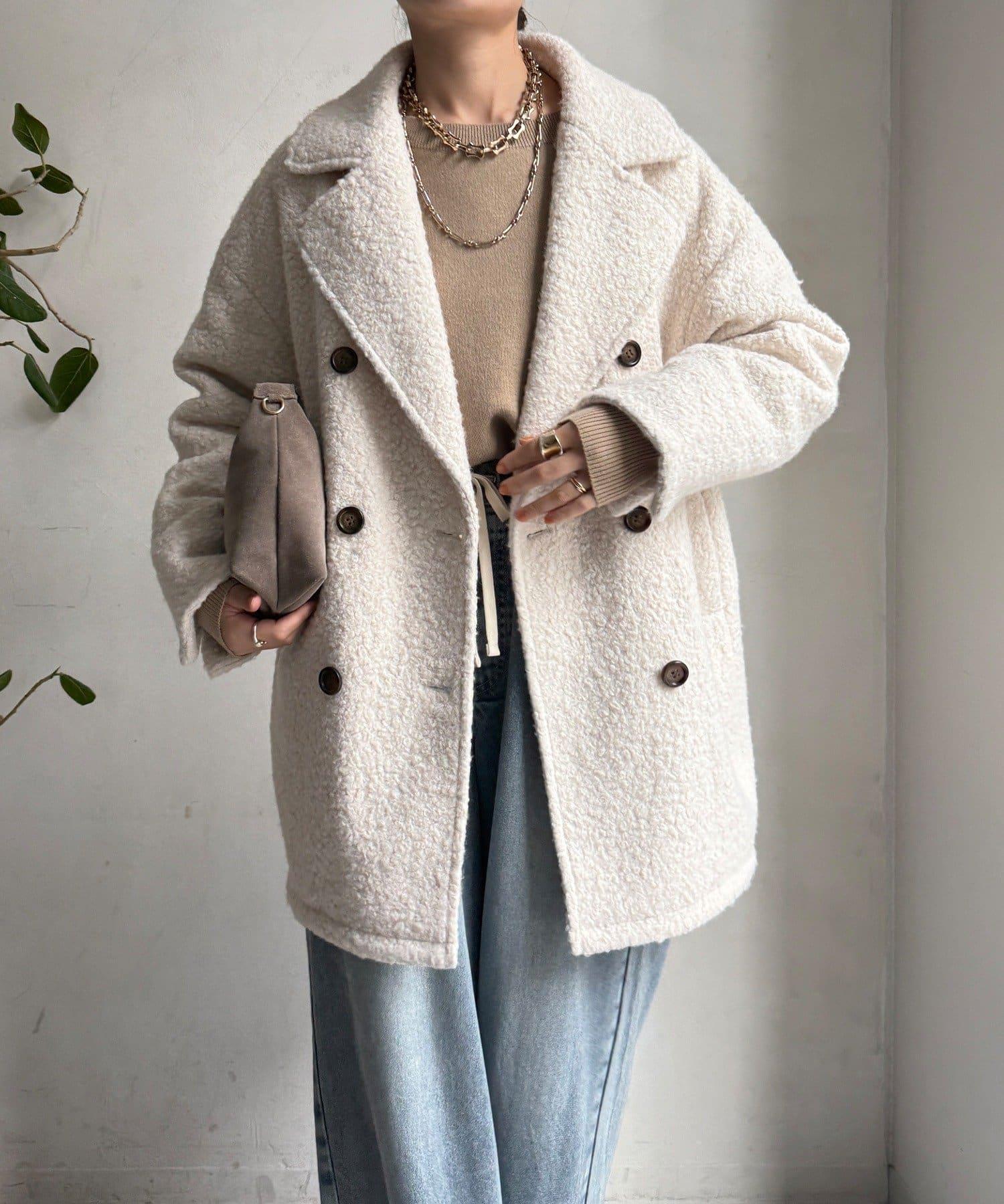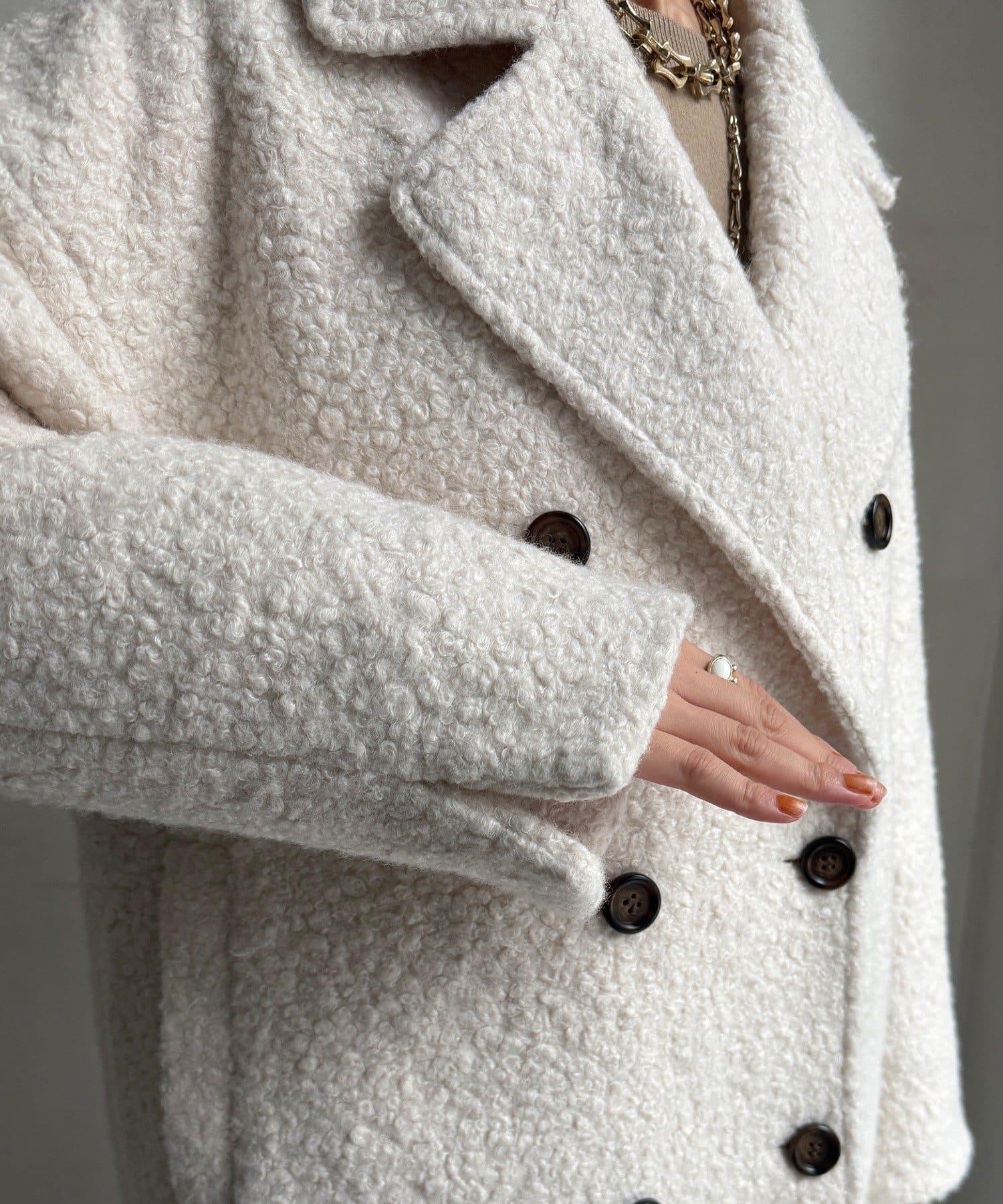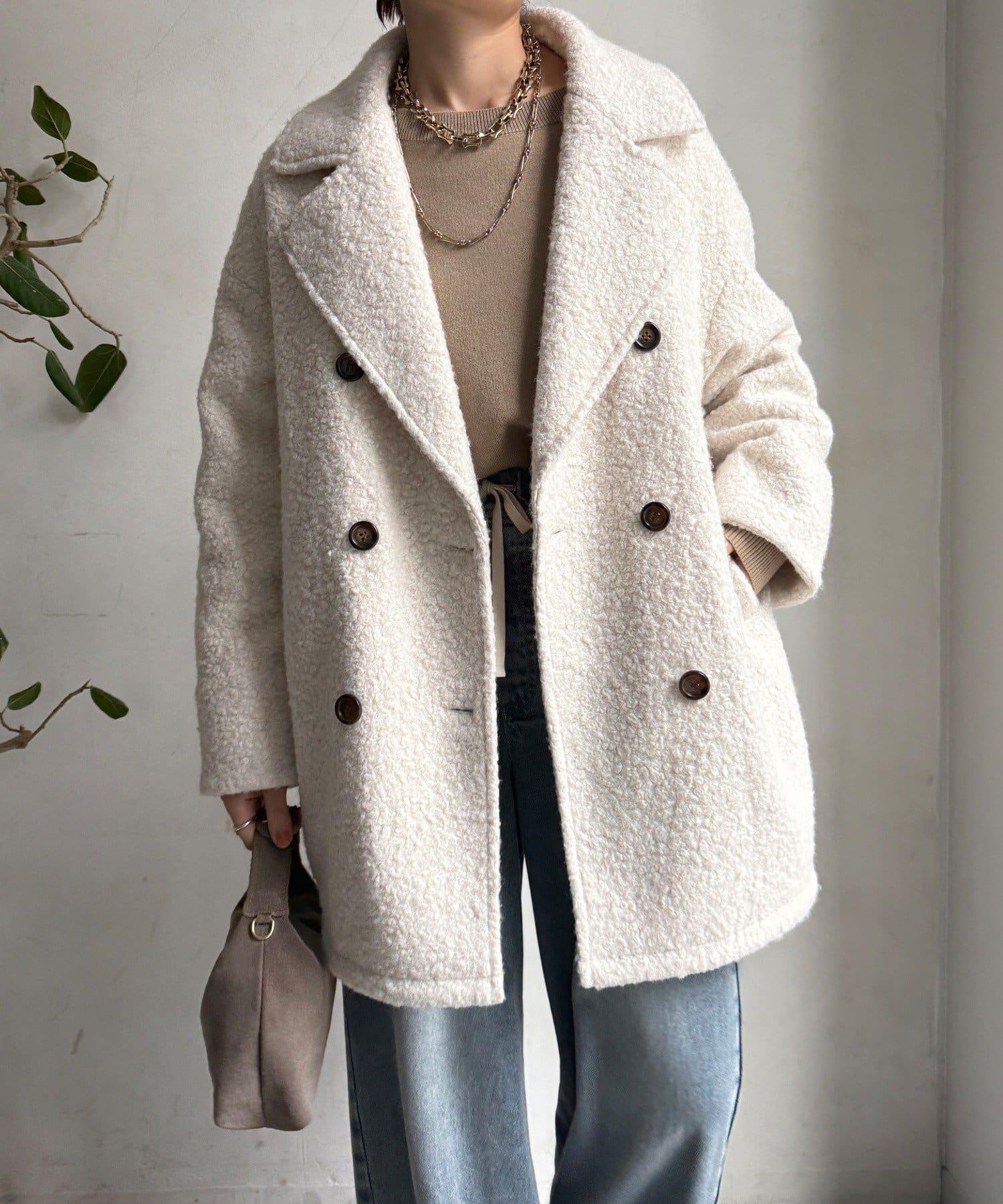 本季👍熱門的雙排扣大衣將蟒蛇毛的蓬鬆質感與整齊的剪裁設計完美結合!