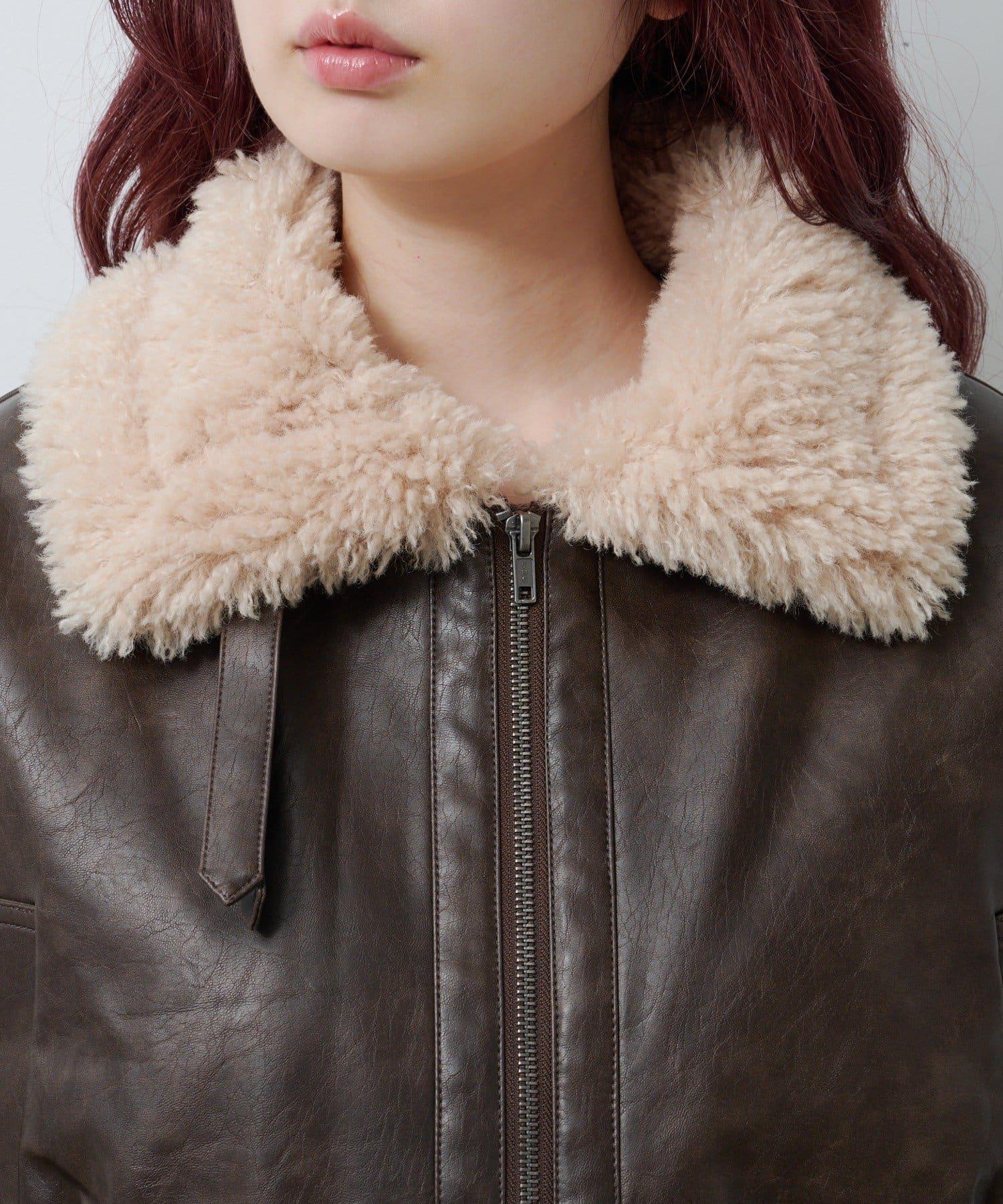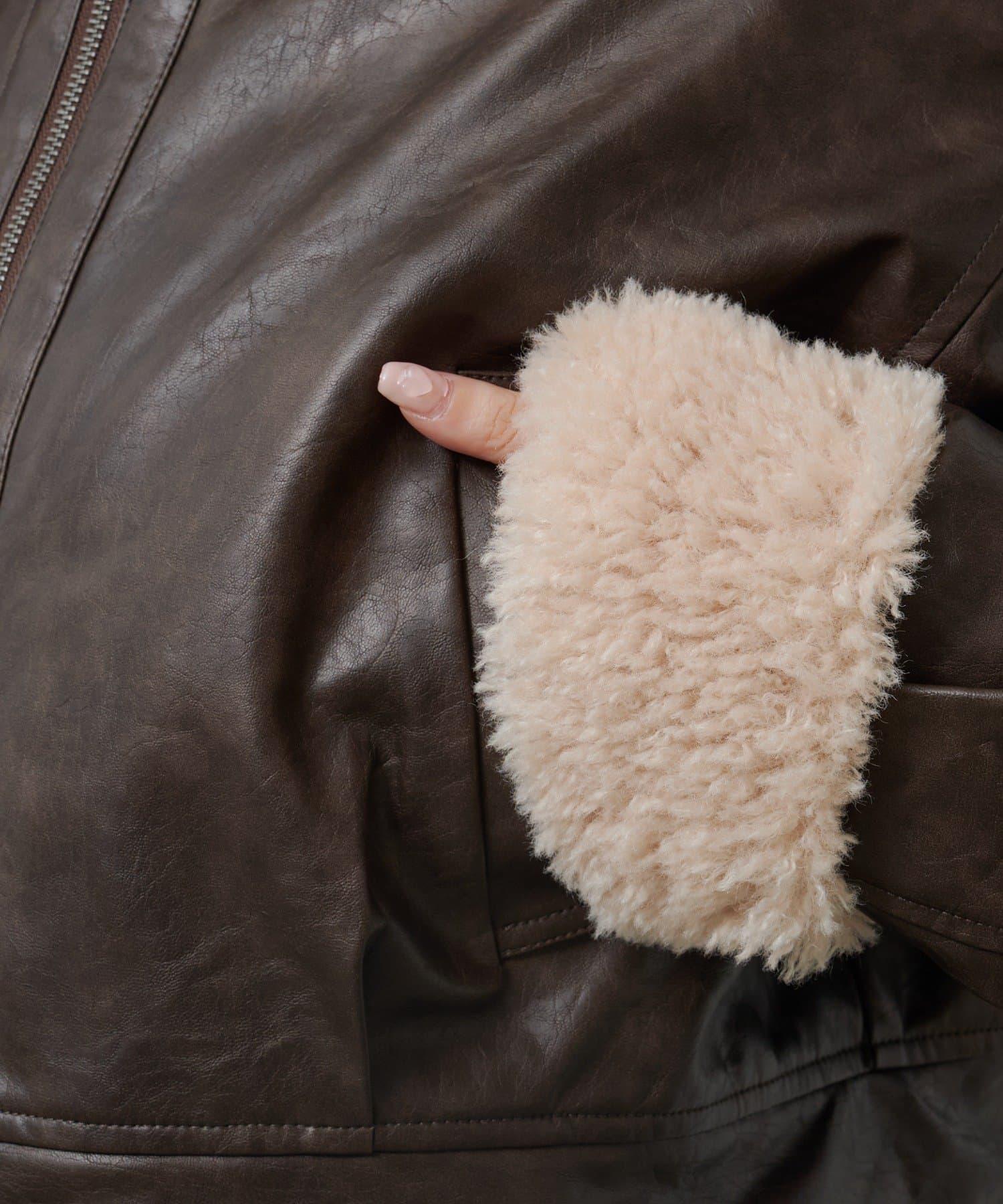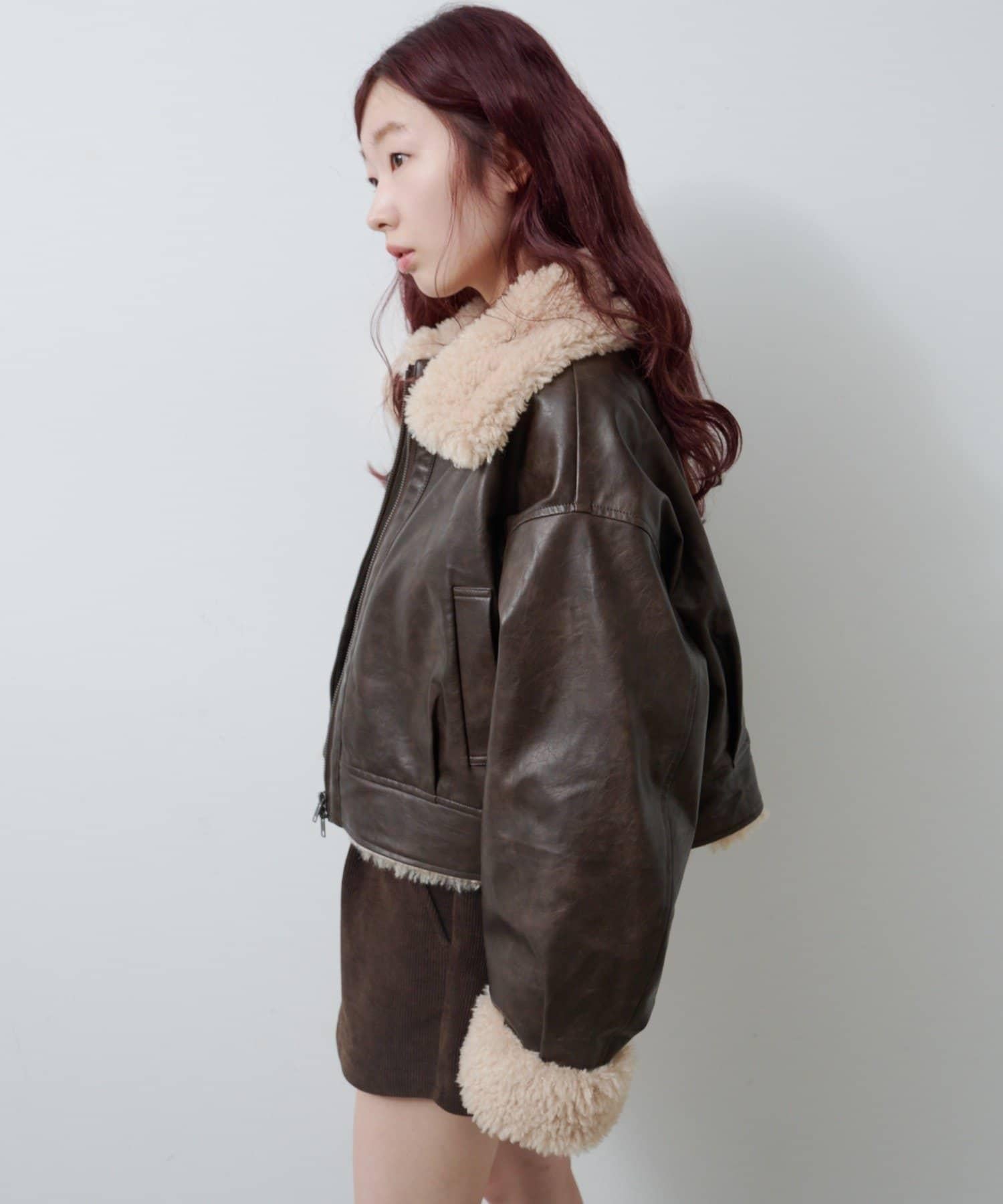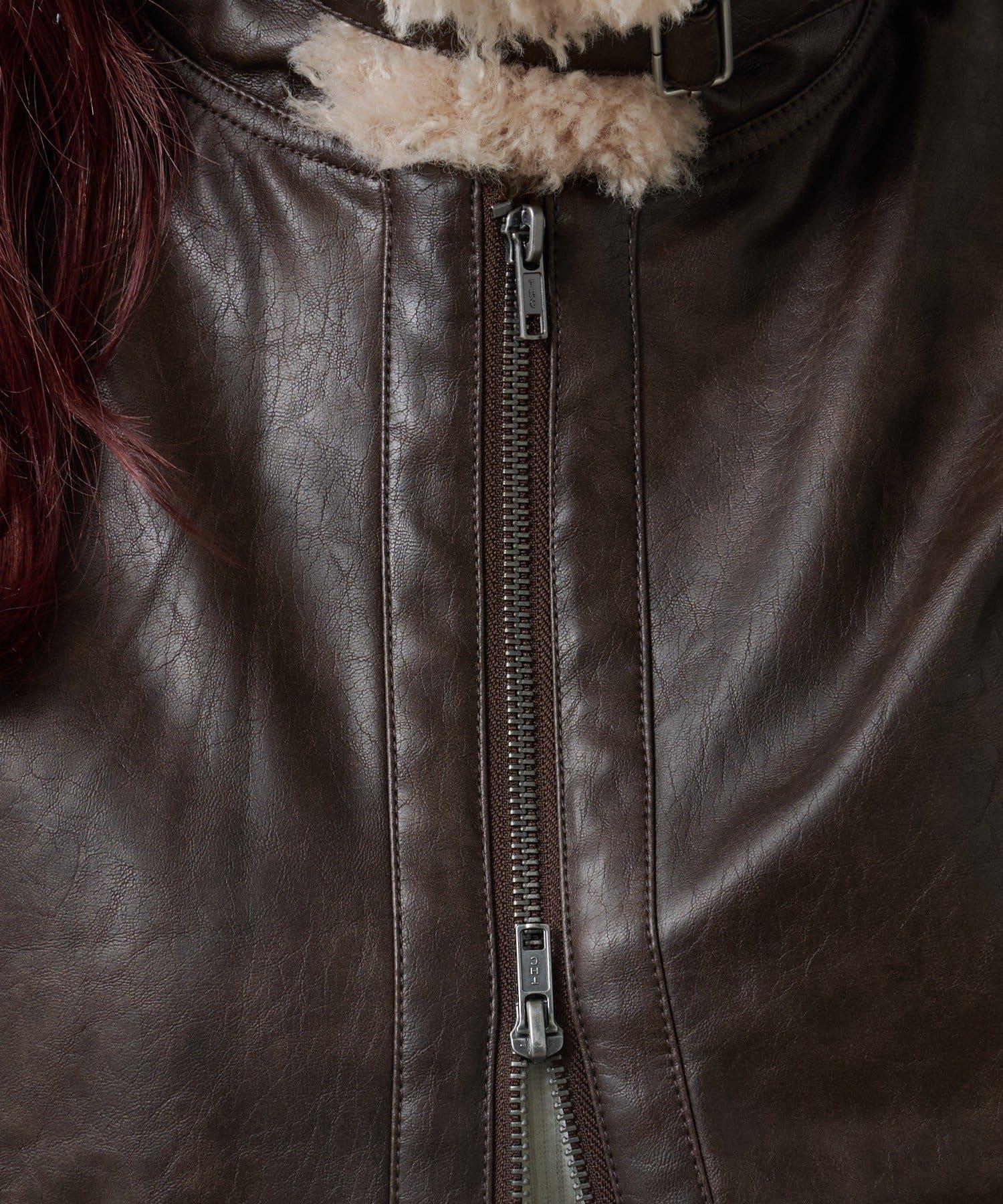 豐滿的蟒蛇毛領與仿皮材質的結合,打造出令人印象深刻的蟒蛇毛飛行夾克。