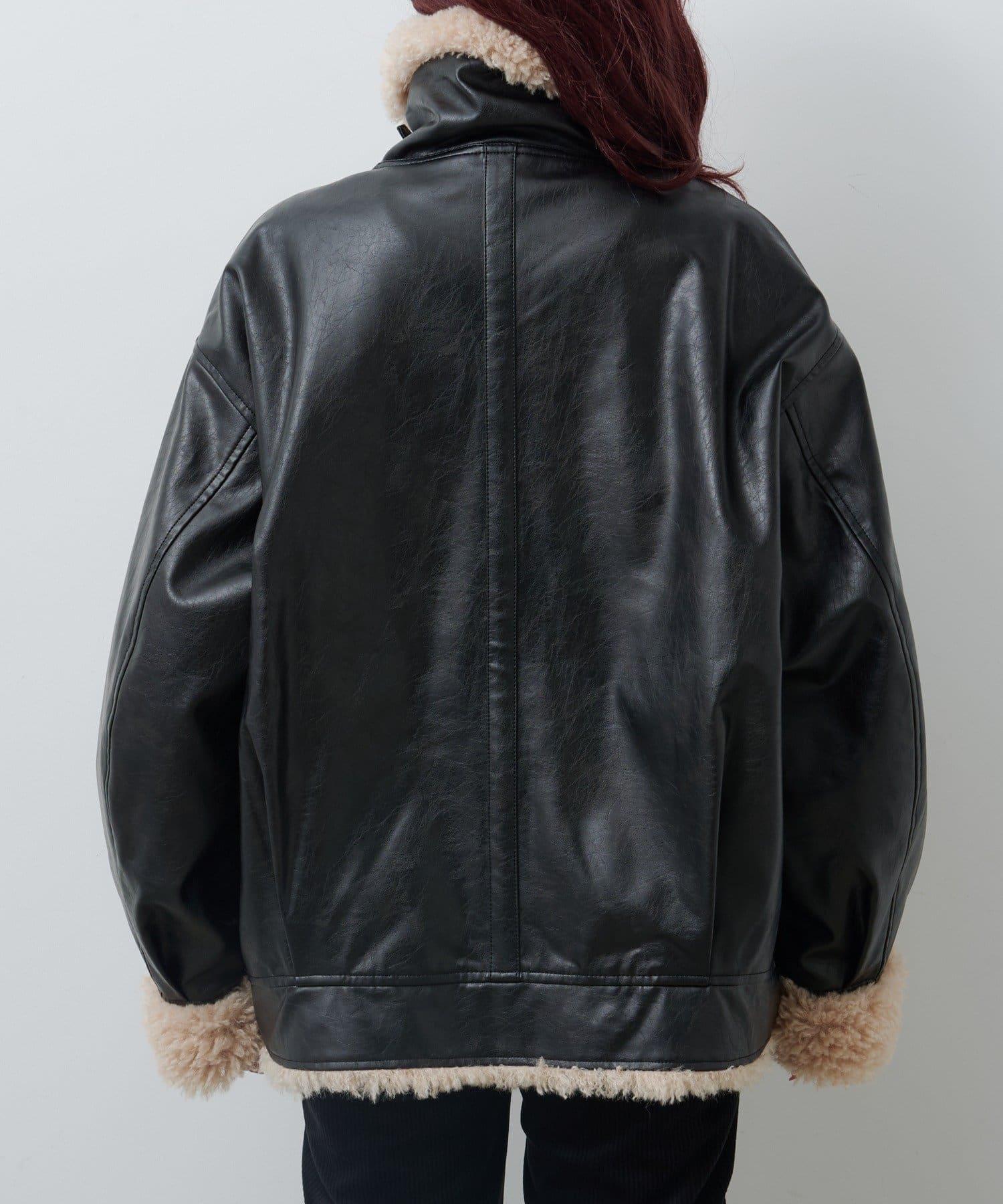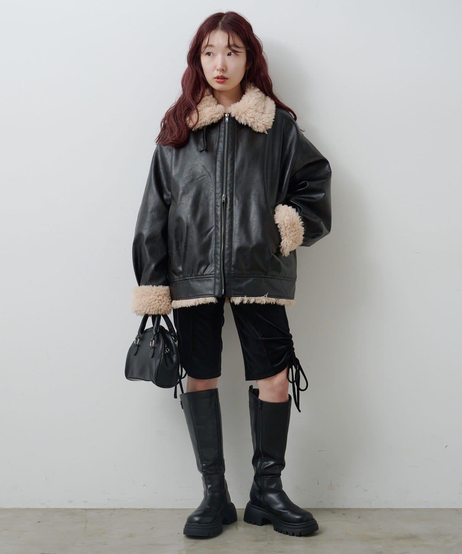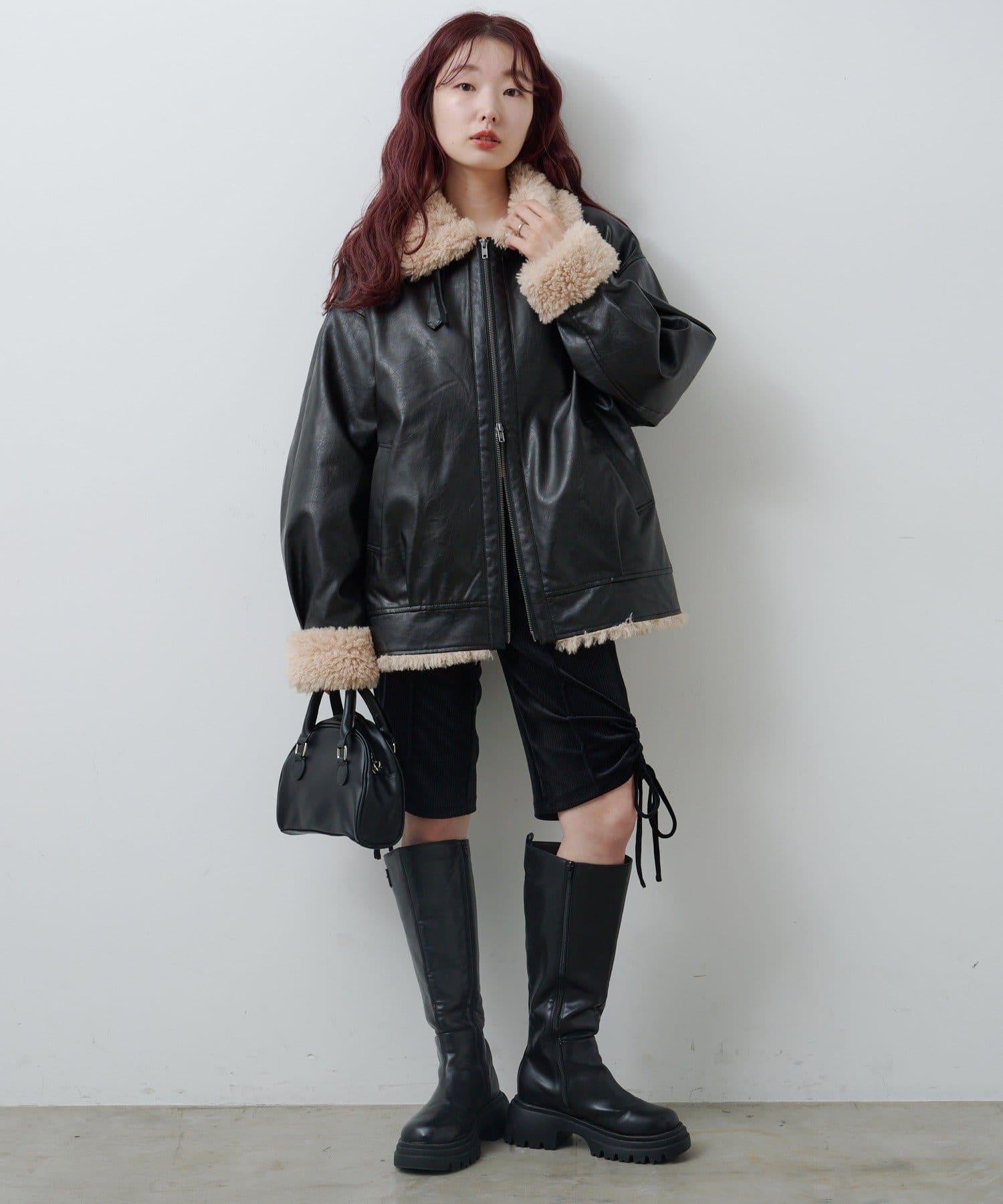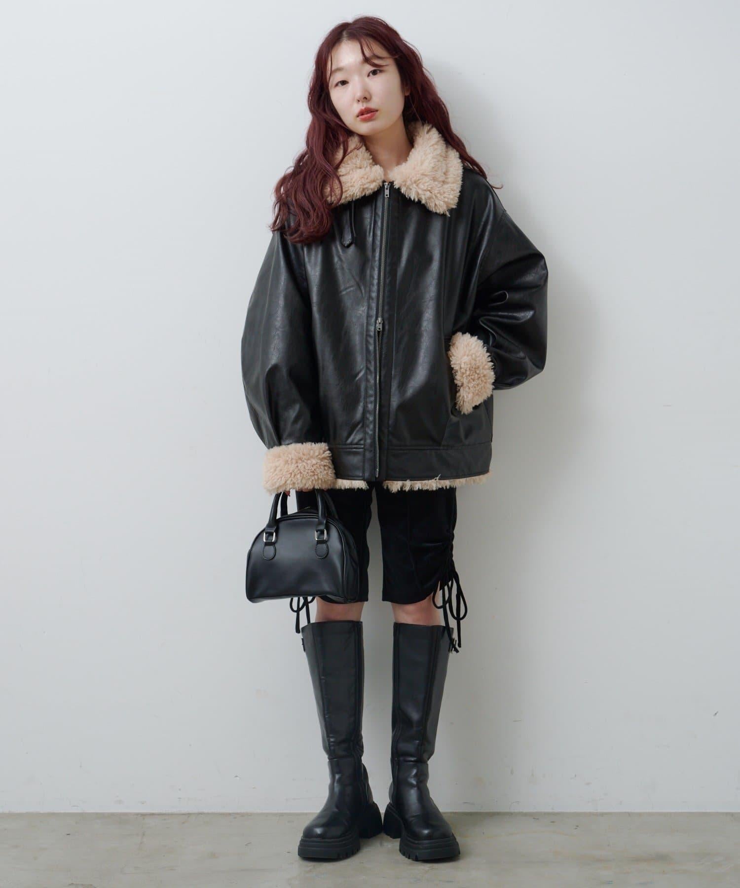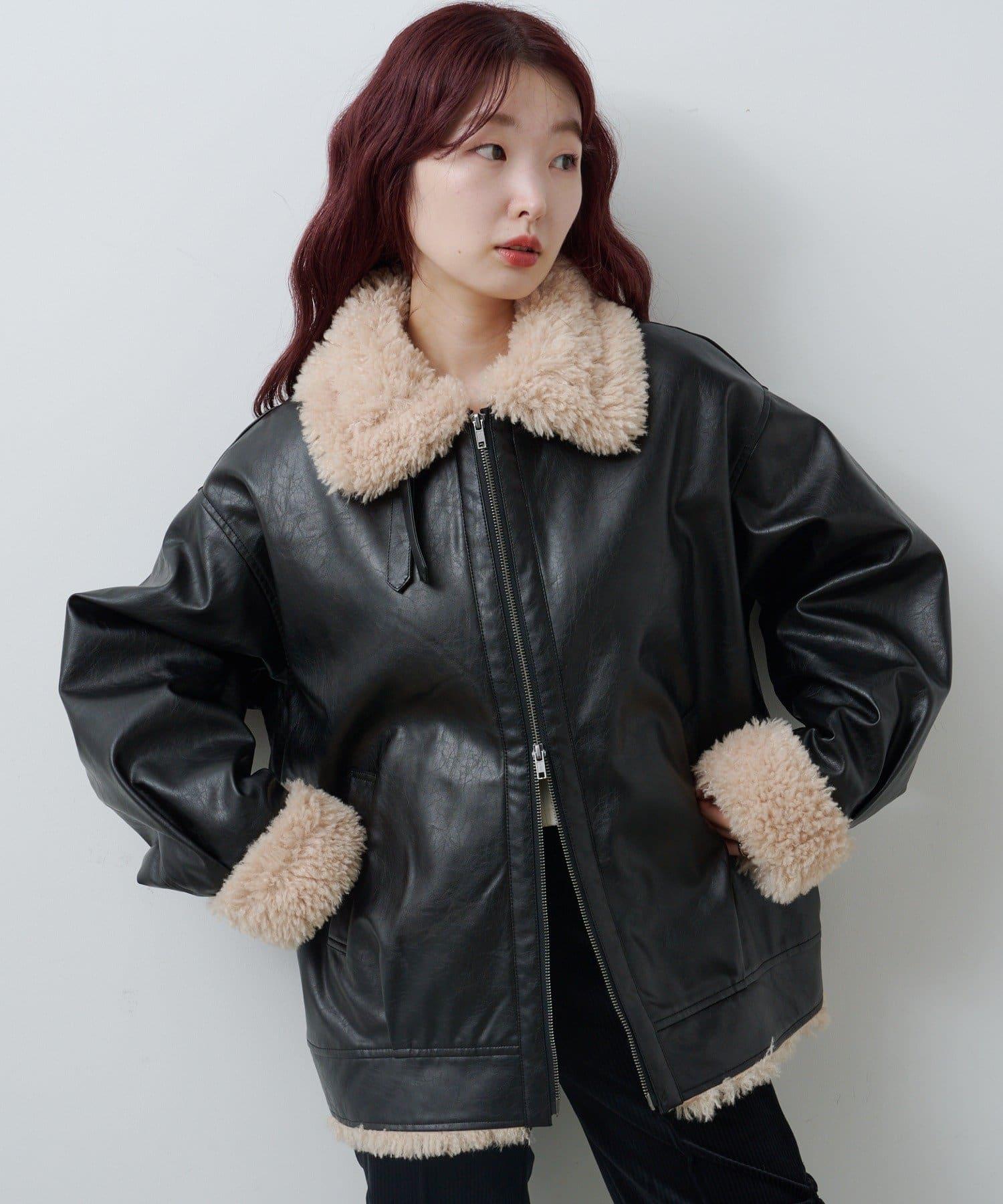 豐滿的蟒蛇毛領與仿皮材質的結合,打造出令人印象深刻的蟒蛇毛飛行夾克。