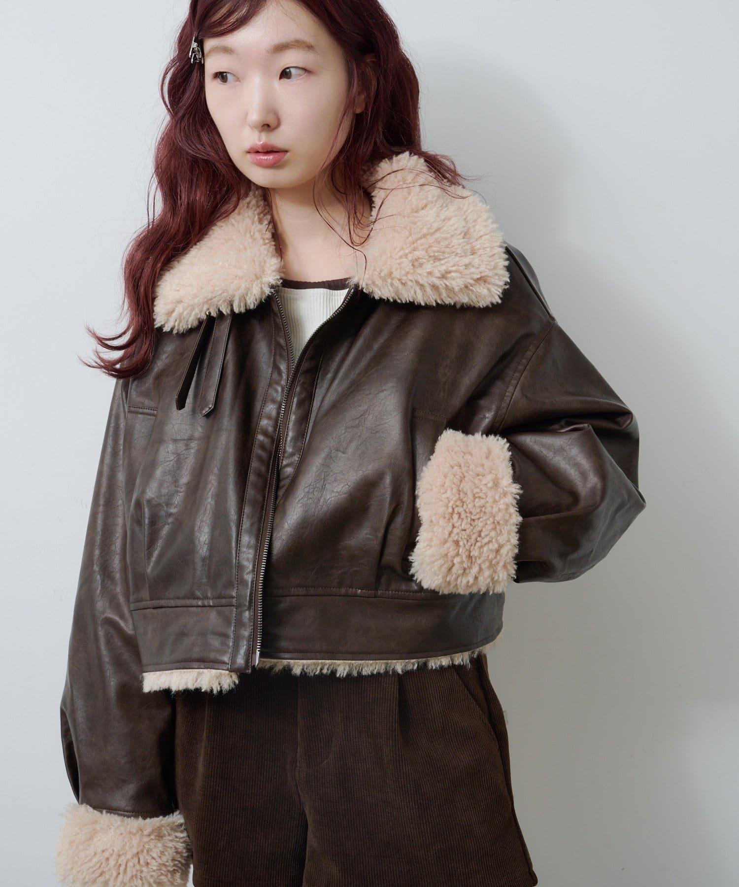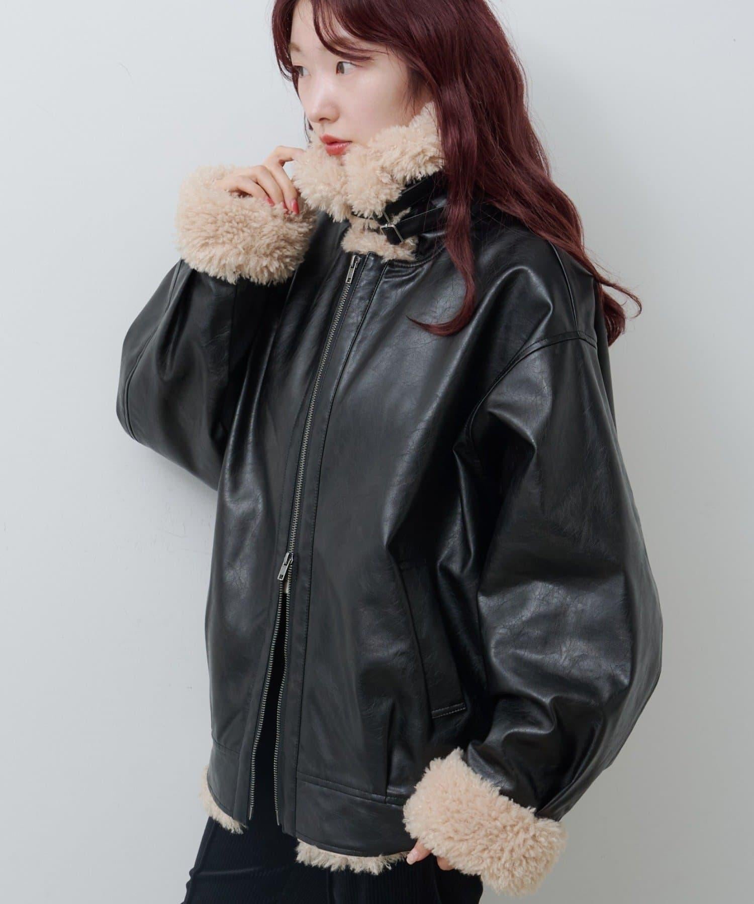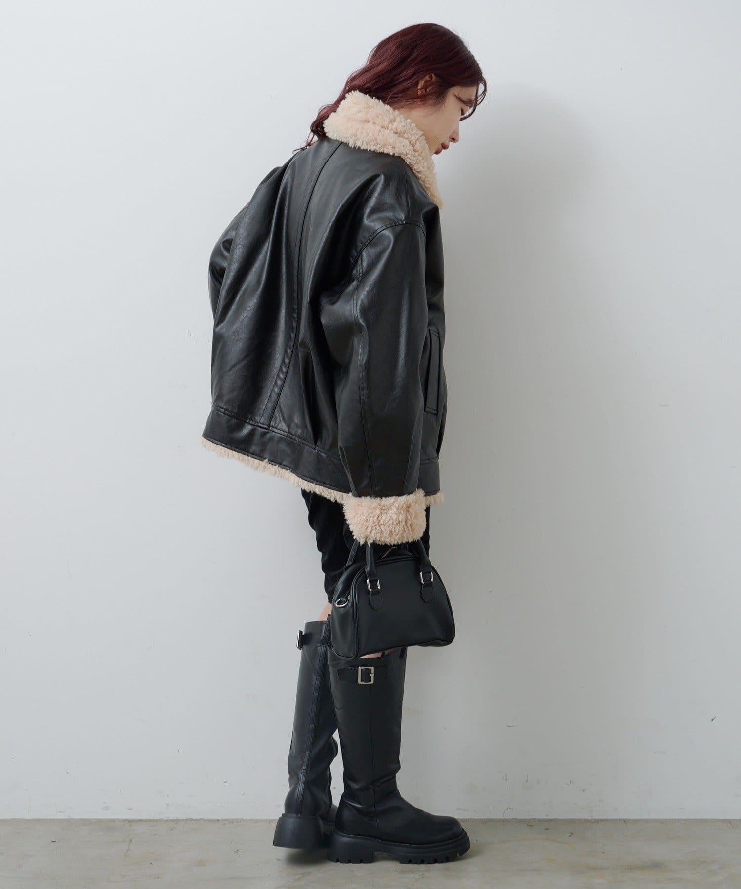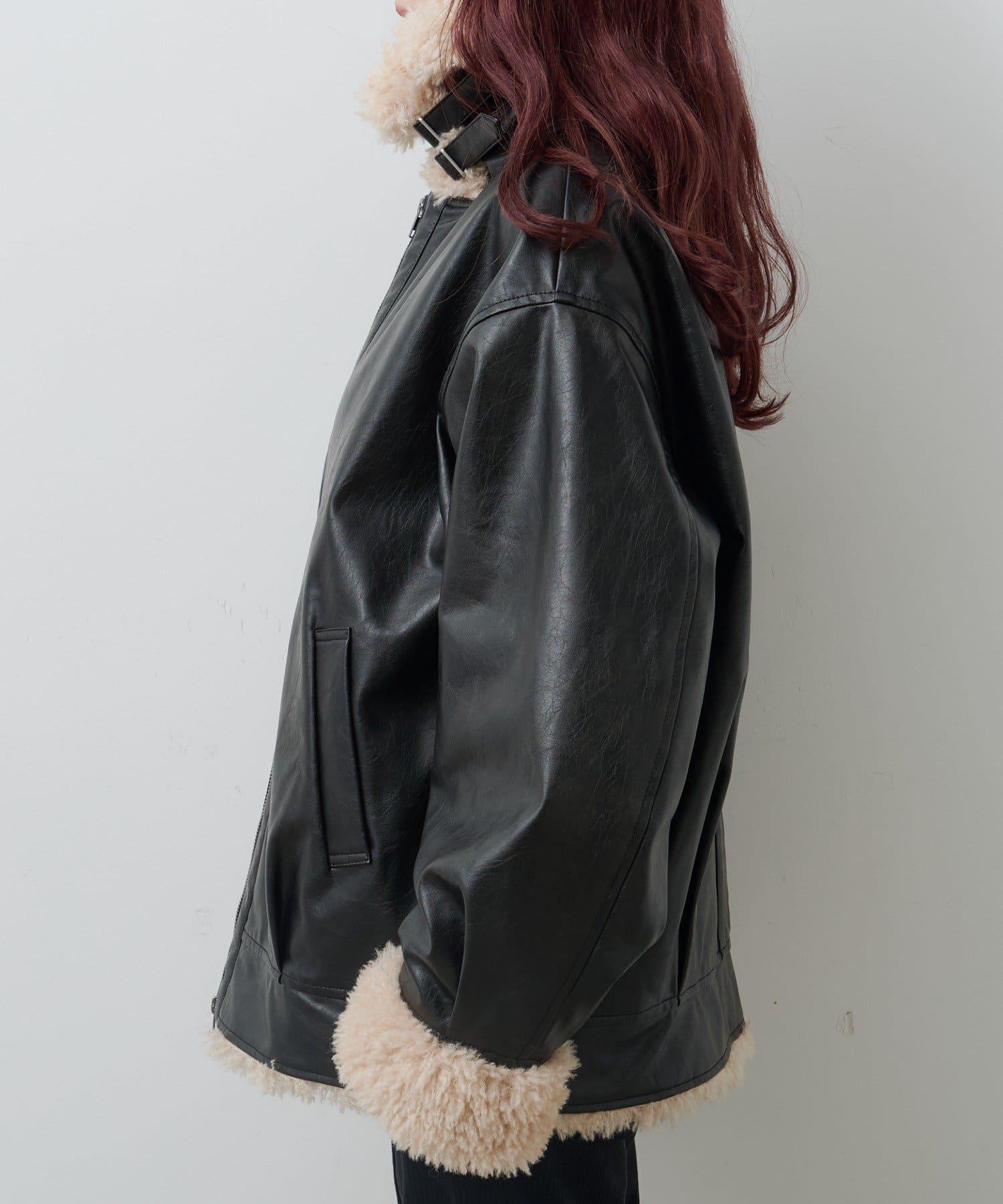 豐滿的蟒蛇毛領與仿皮材質的結合,打造出令人印象深刻的蟒蛇毛飛行夾克。