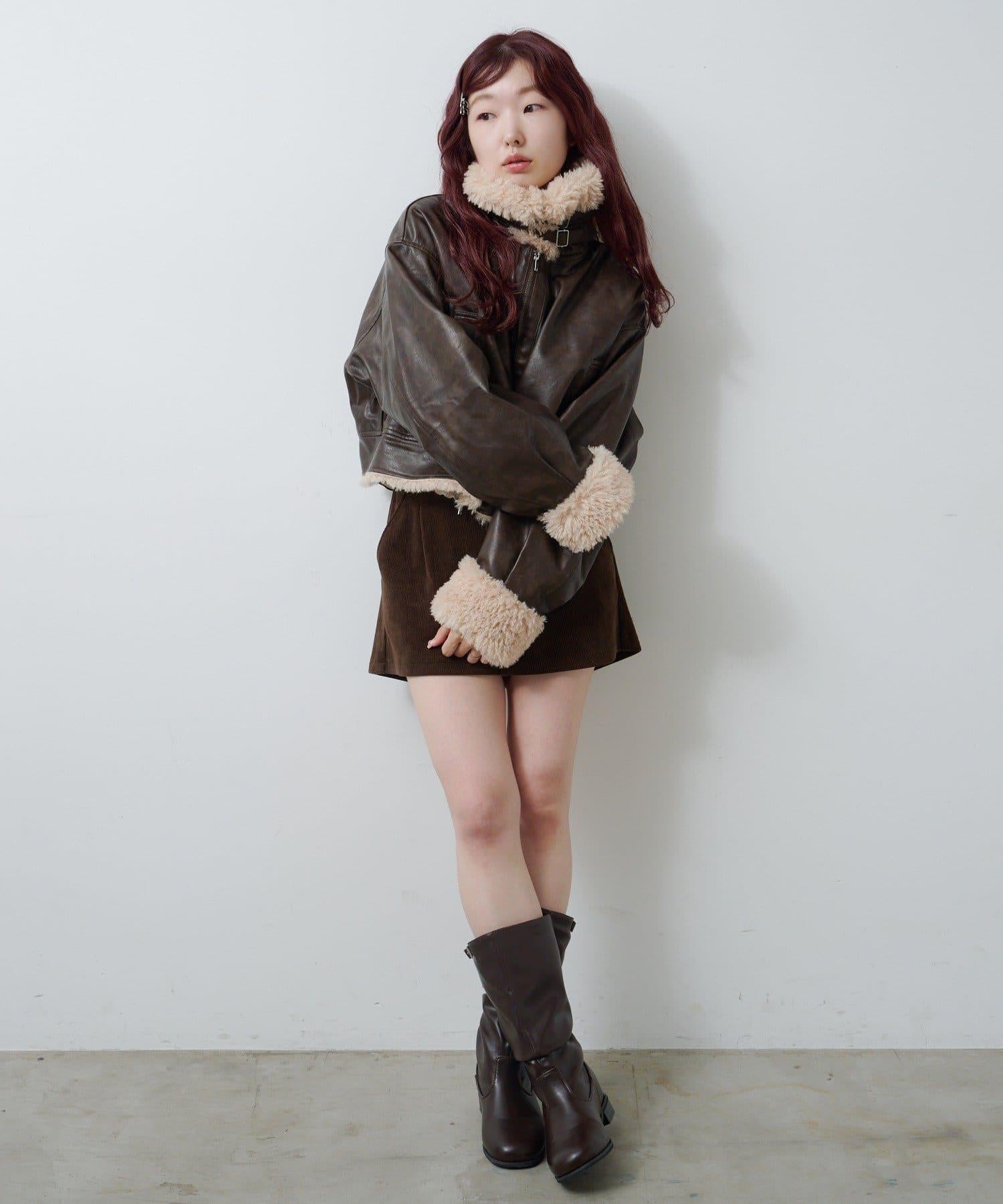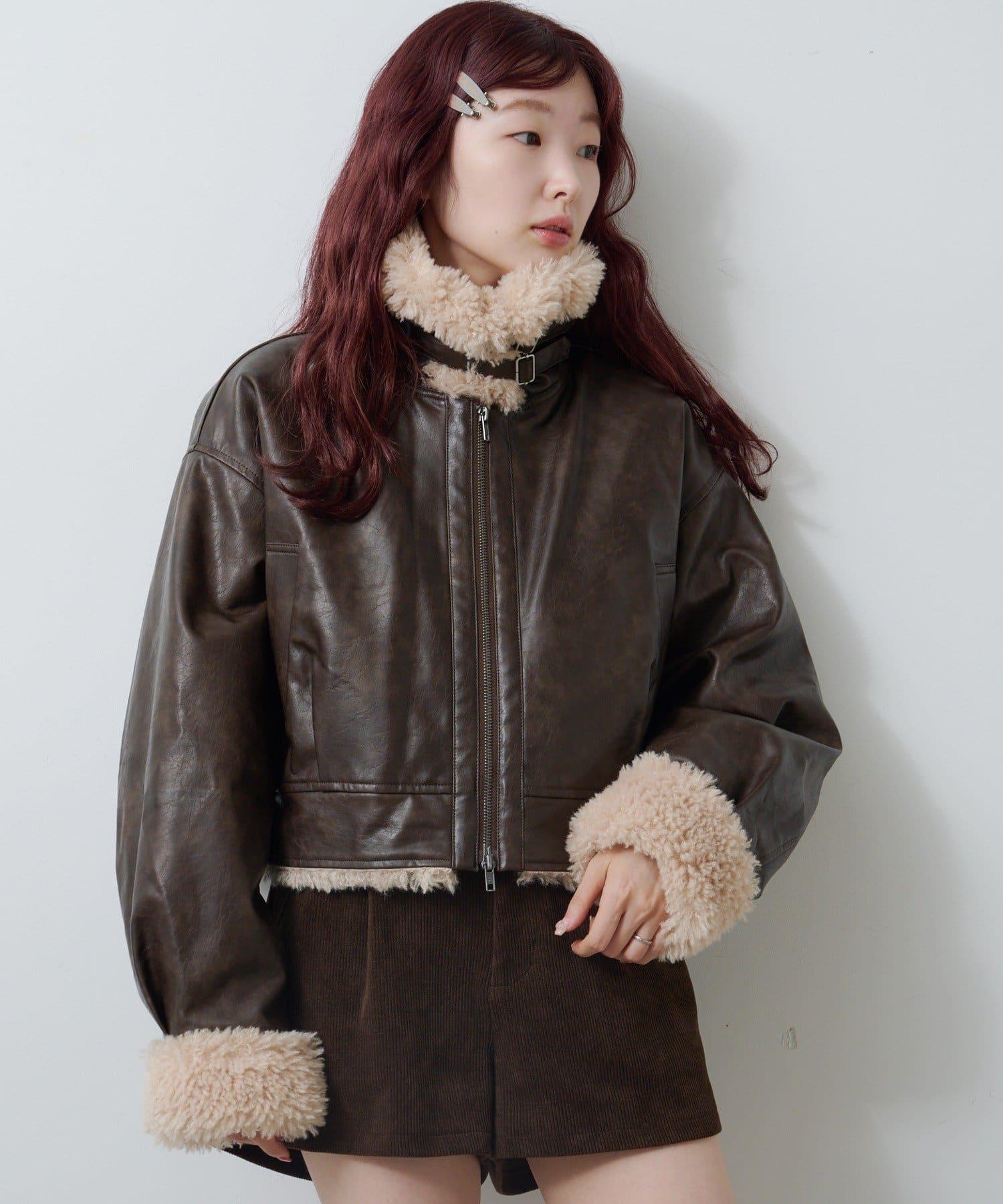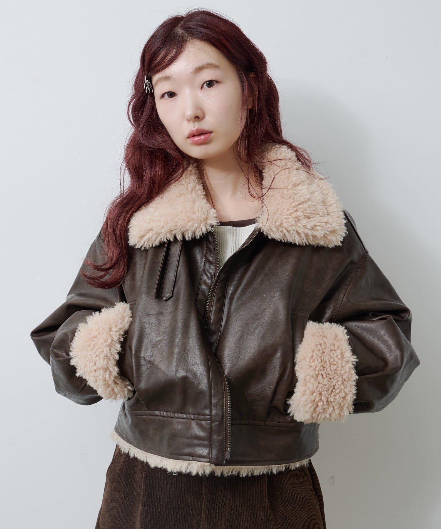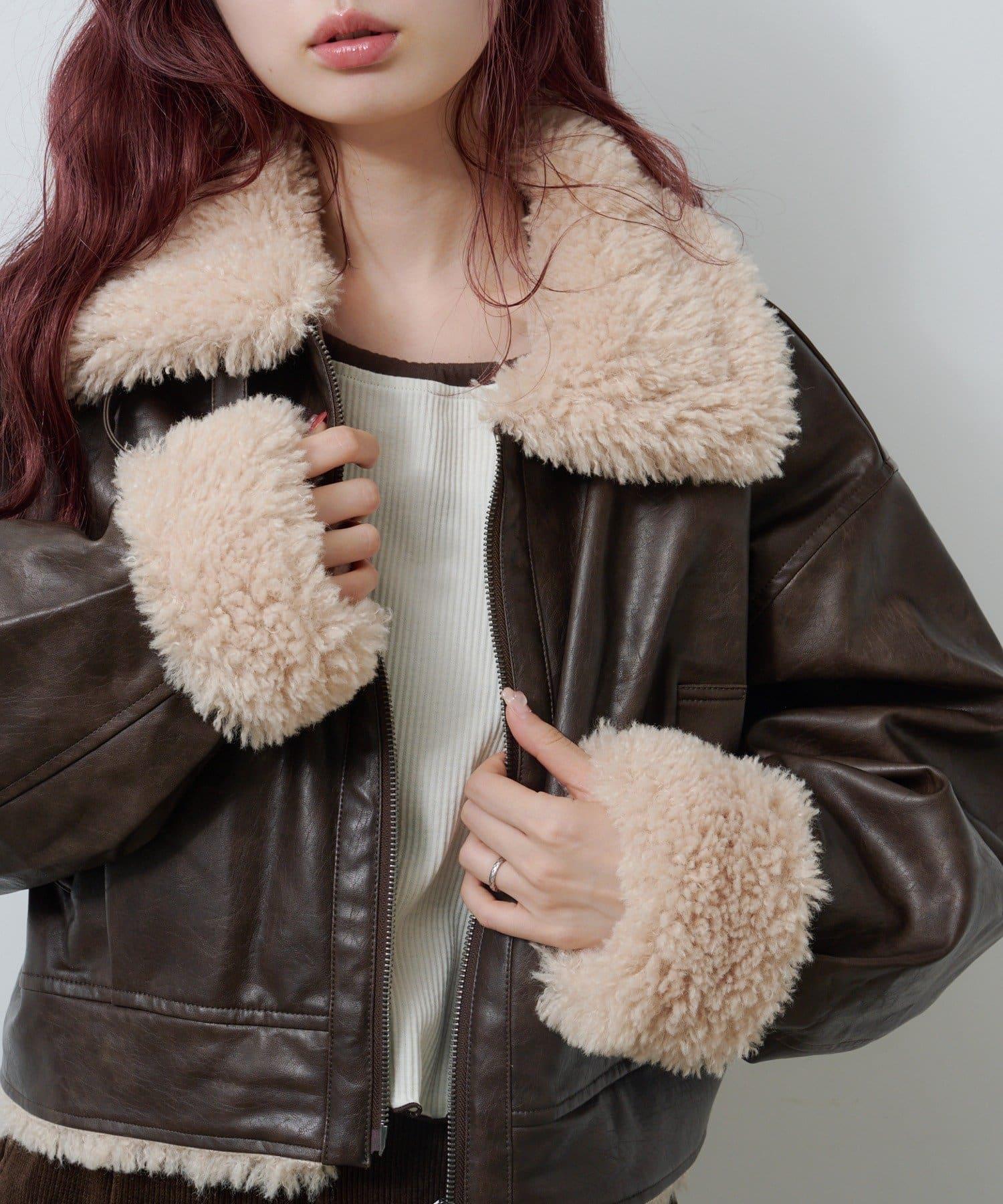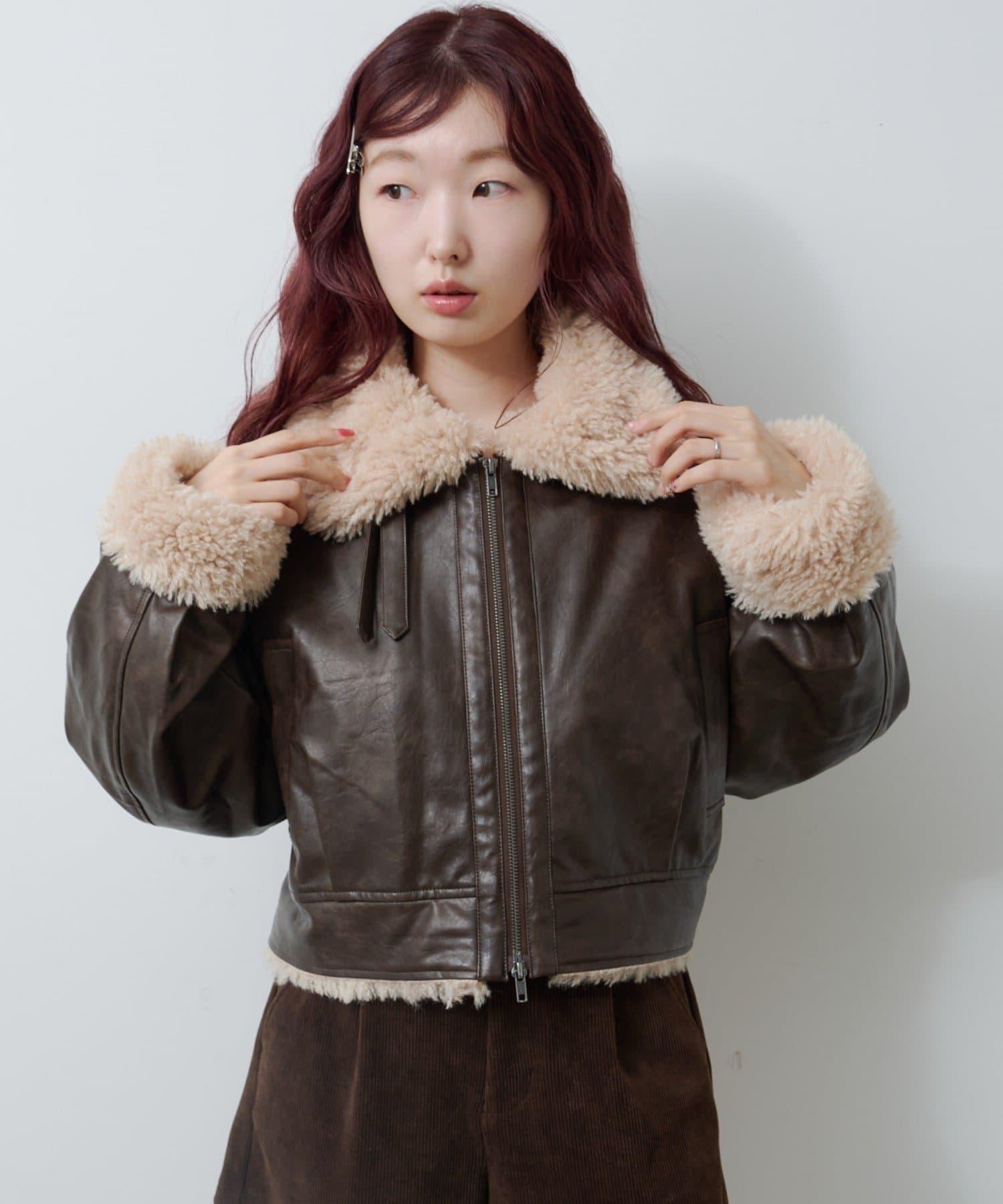 豐滿的蟒蛇毛領與仿皮材質的結合,打造出令人印象深刻的蟒蛇毛飛行夾克。