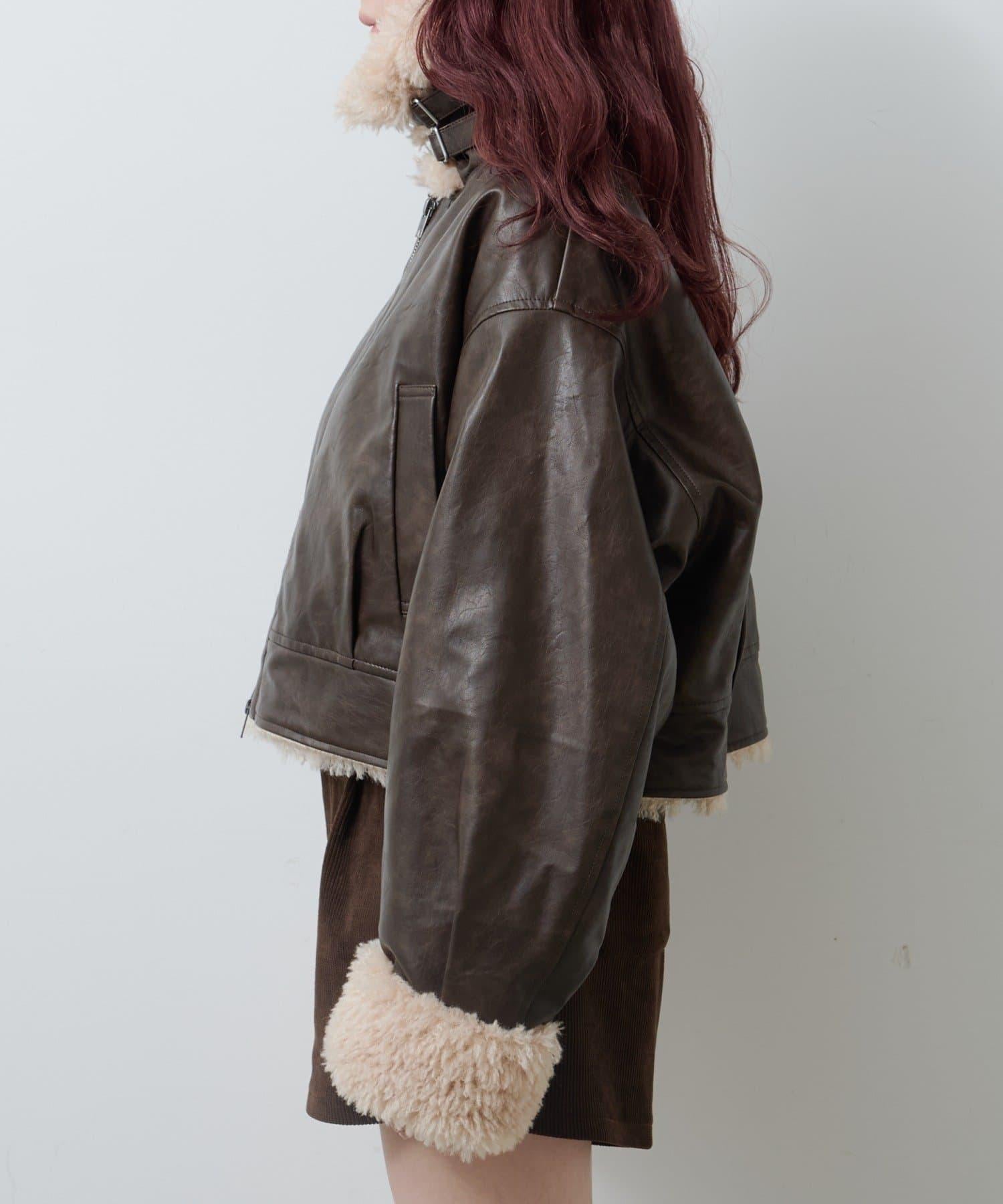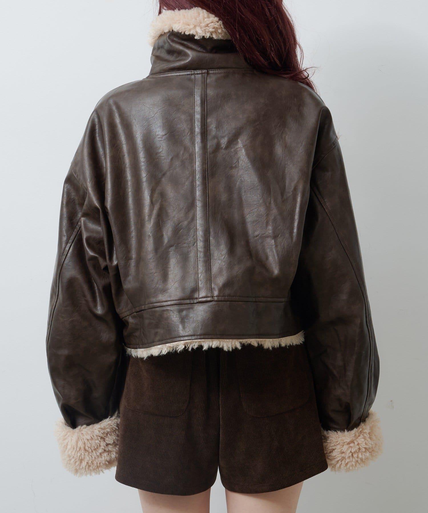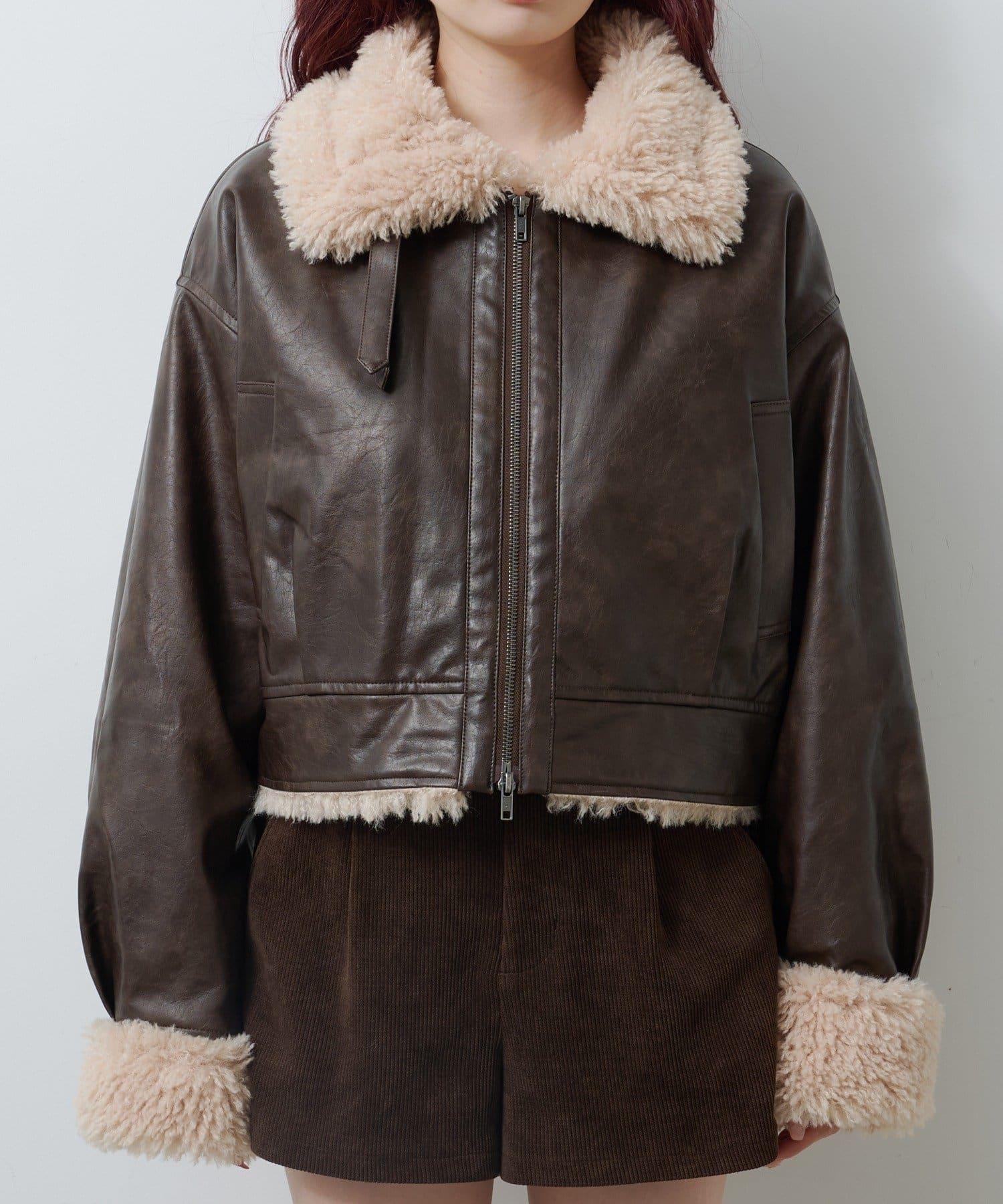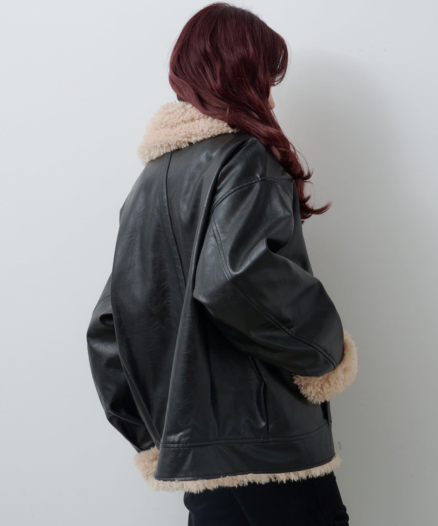 豐滿的蟒蛇毛領與仿皮材質的結合,打造出令人印象深刻的蟒蛇毛飛行夾克。