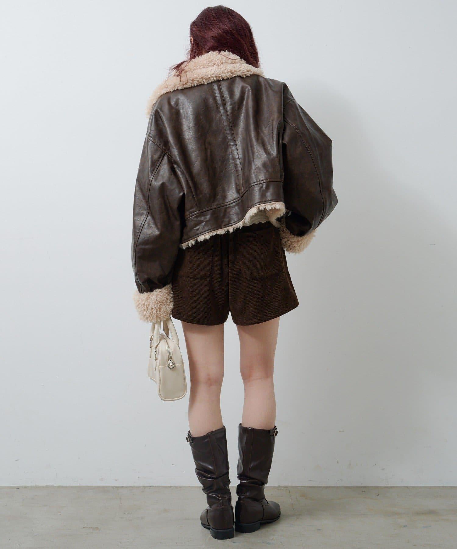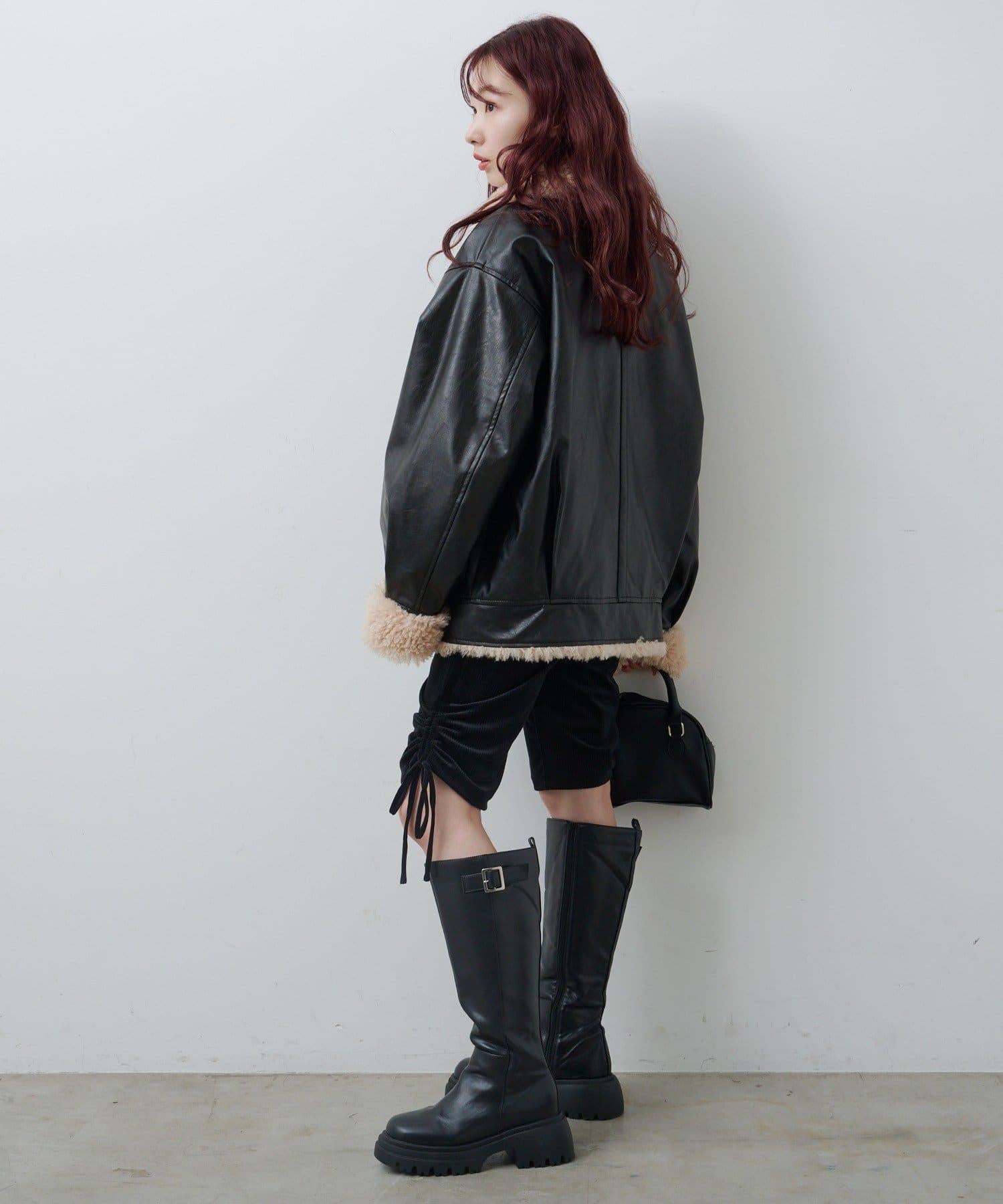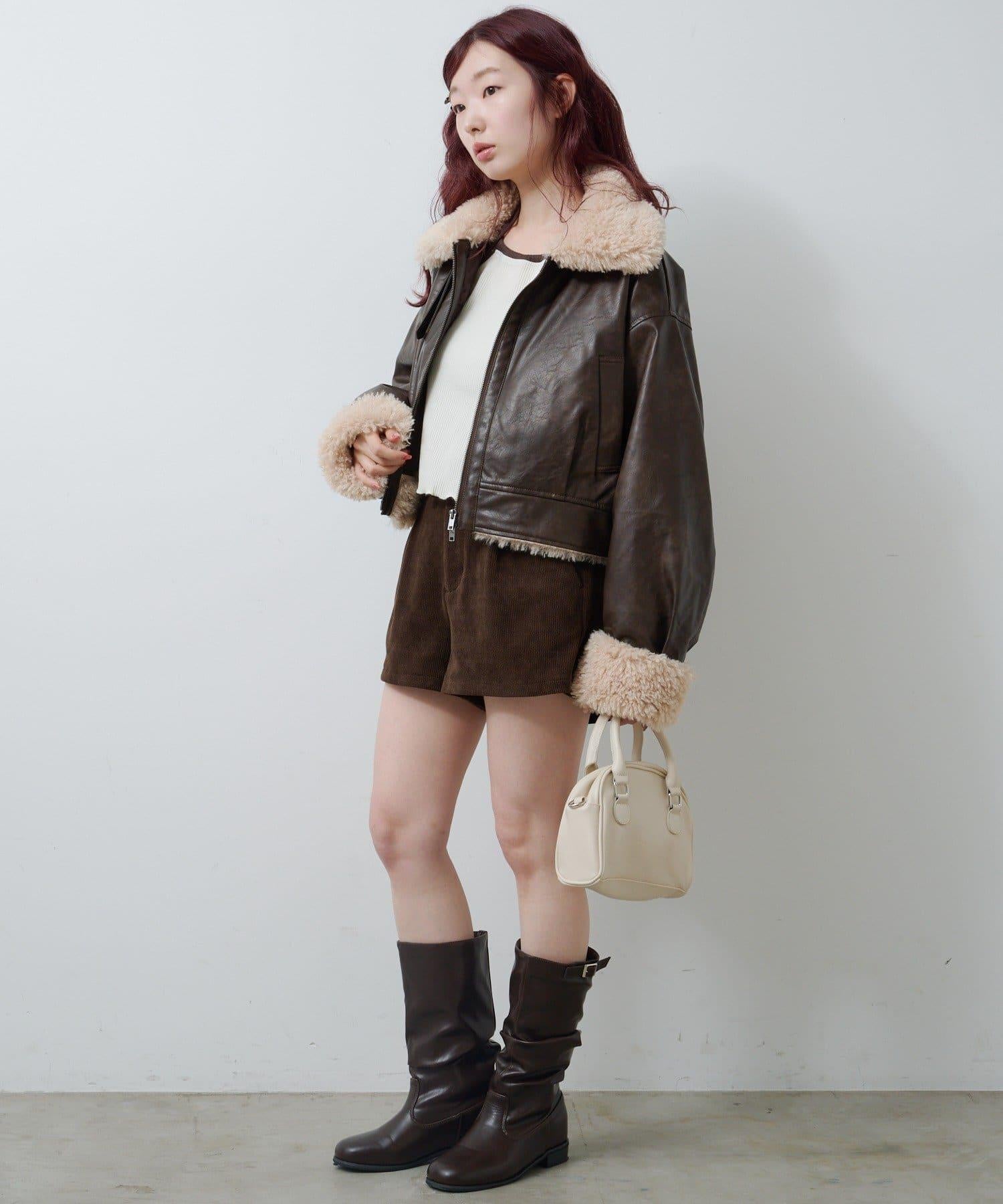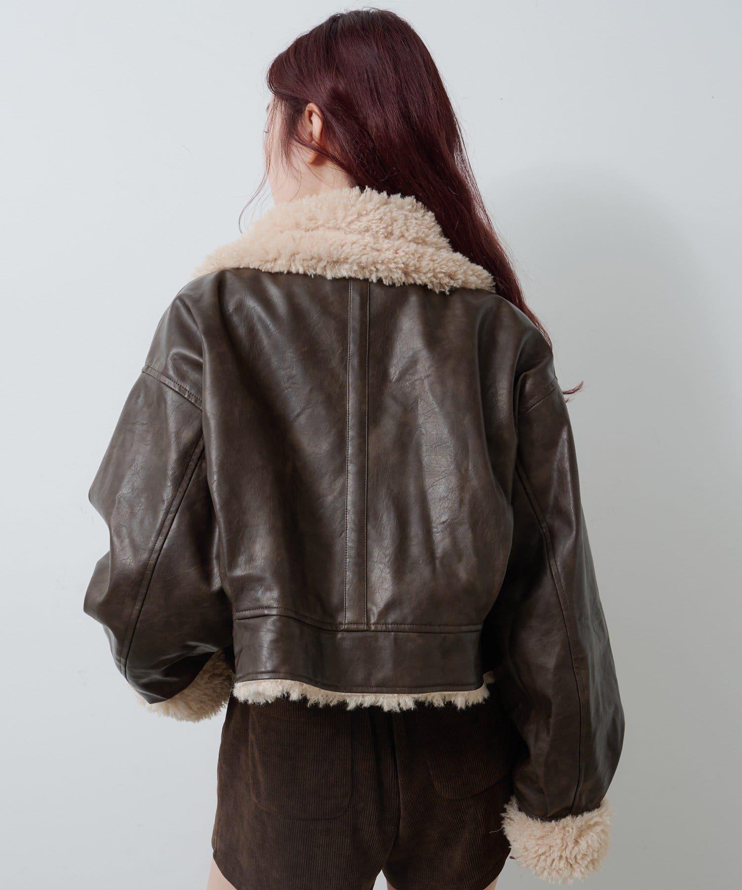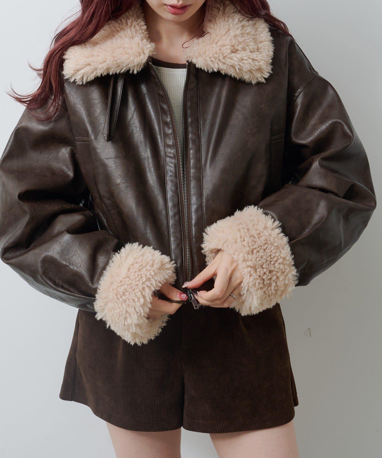 豐滿的蟒蛇毛領與仿皮材質的結合,打造出令人印象深刻的蟒蛇毛飛行夾克。