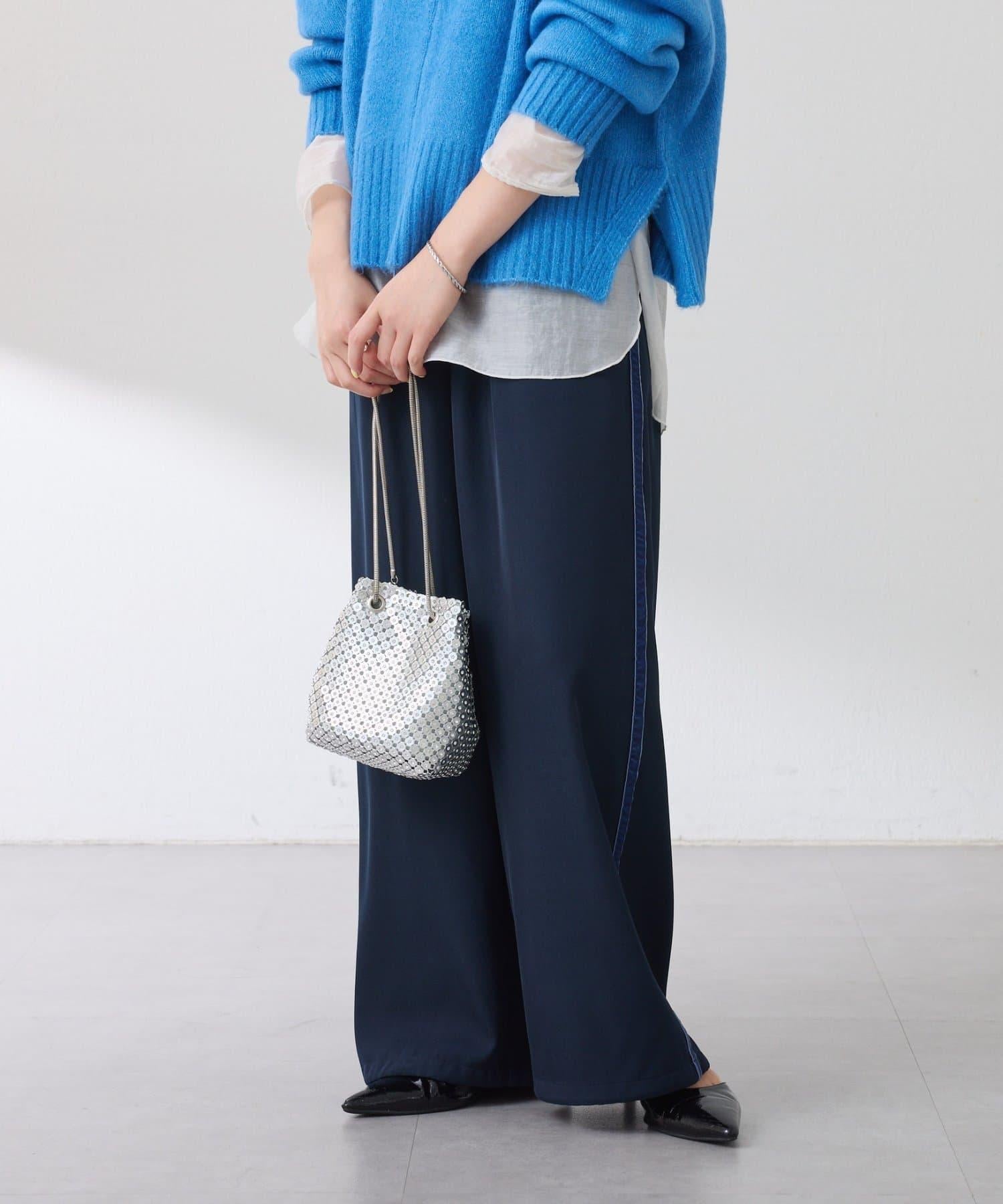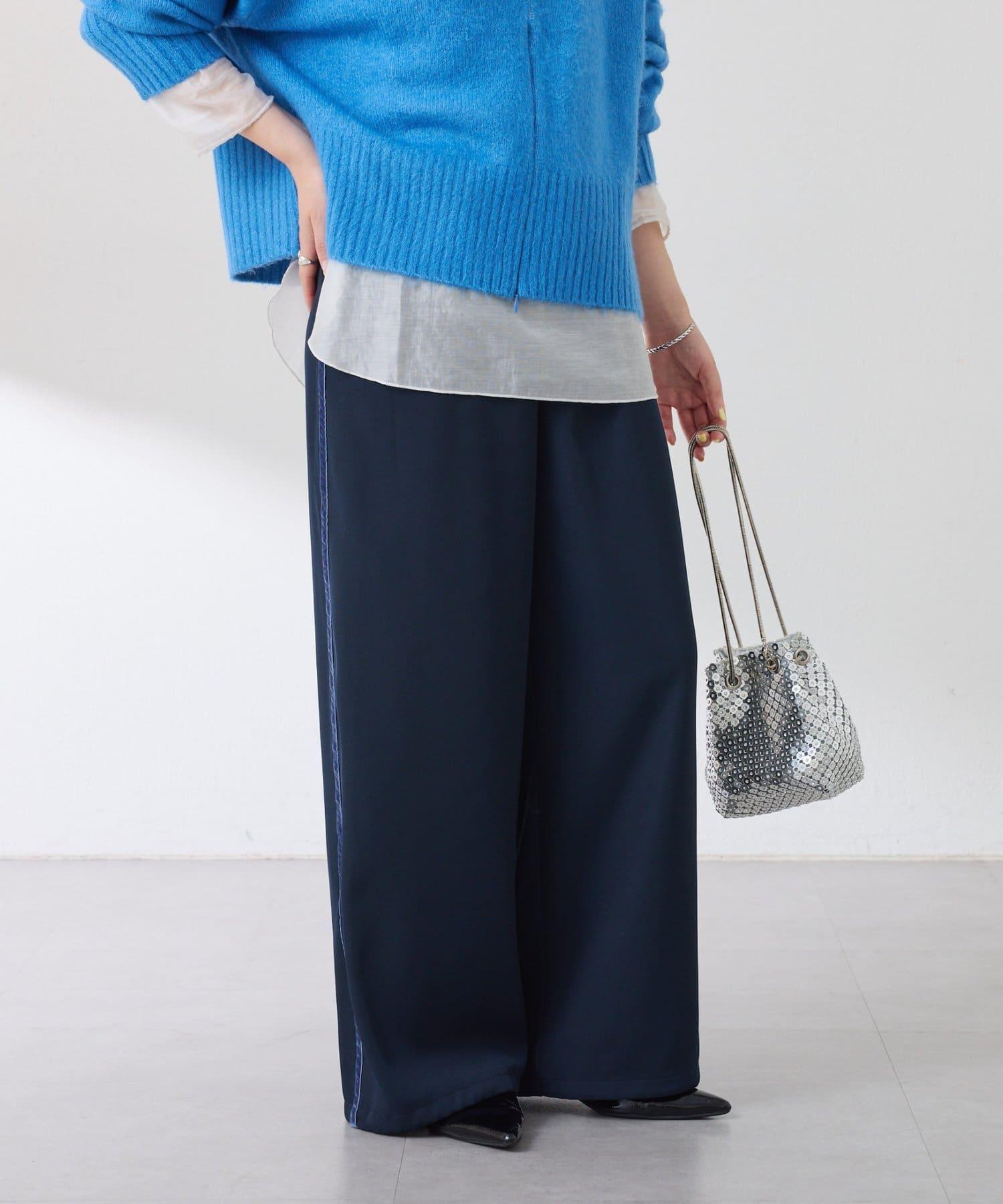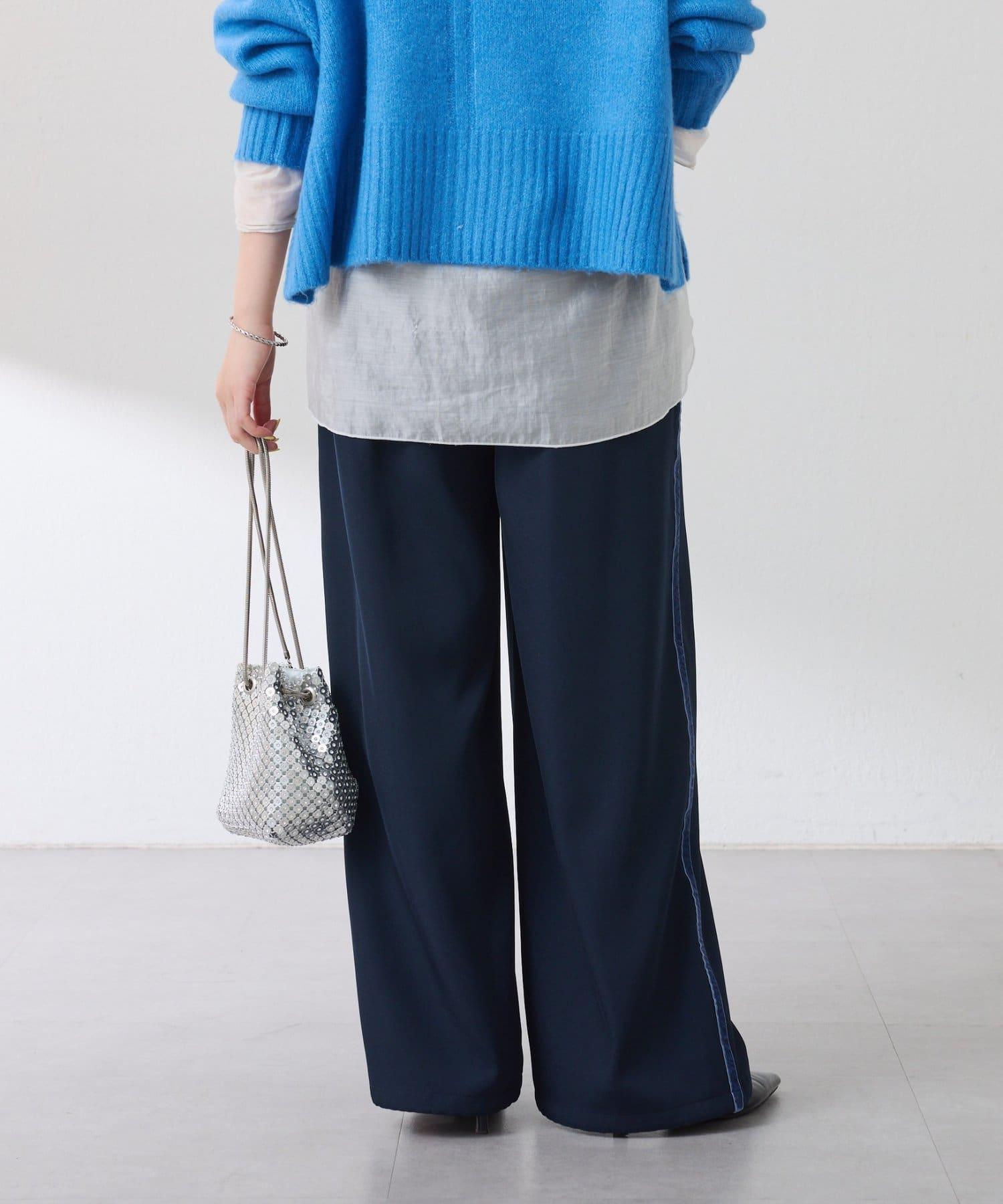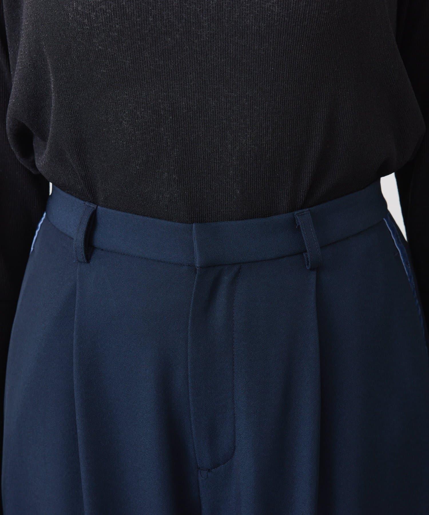 寬大的褲型輪廓優美,但由於採用了具有墜落感的面料,因此不會顯得過於寬大。