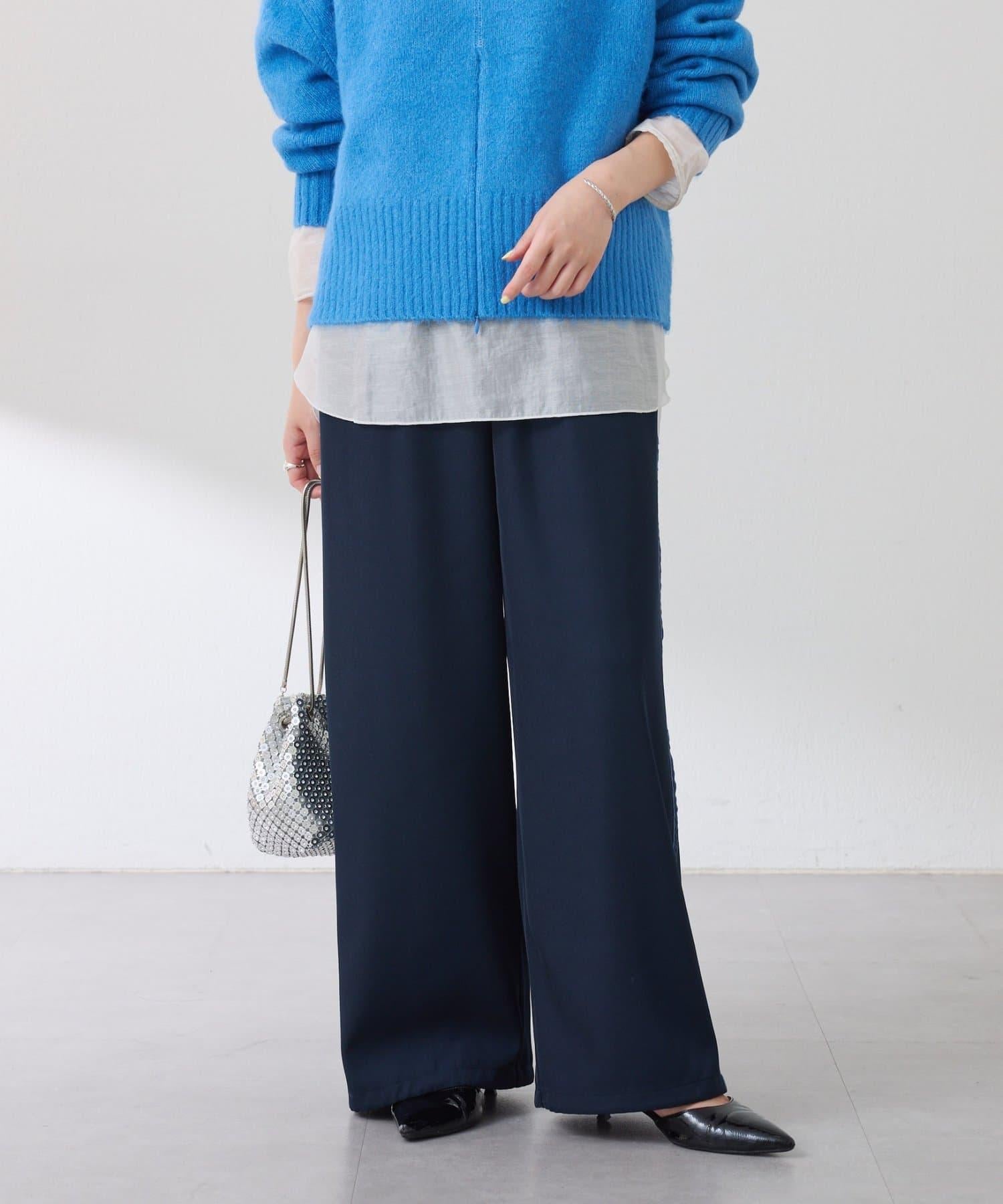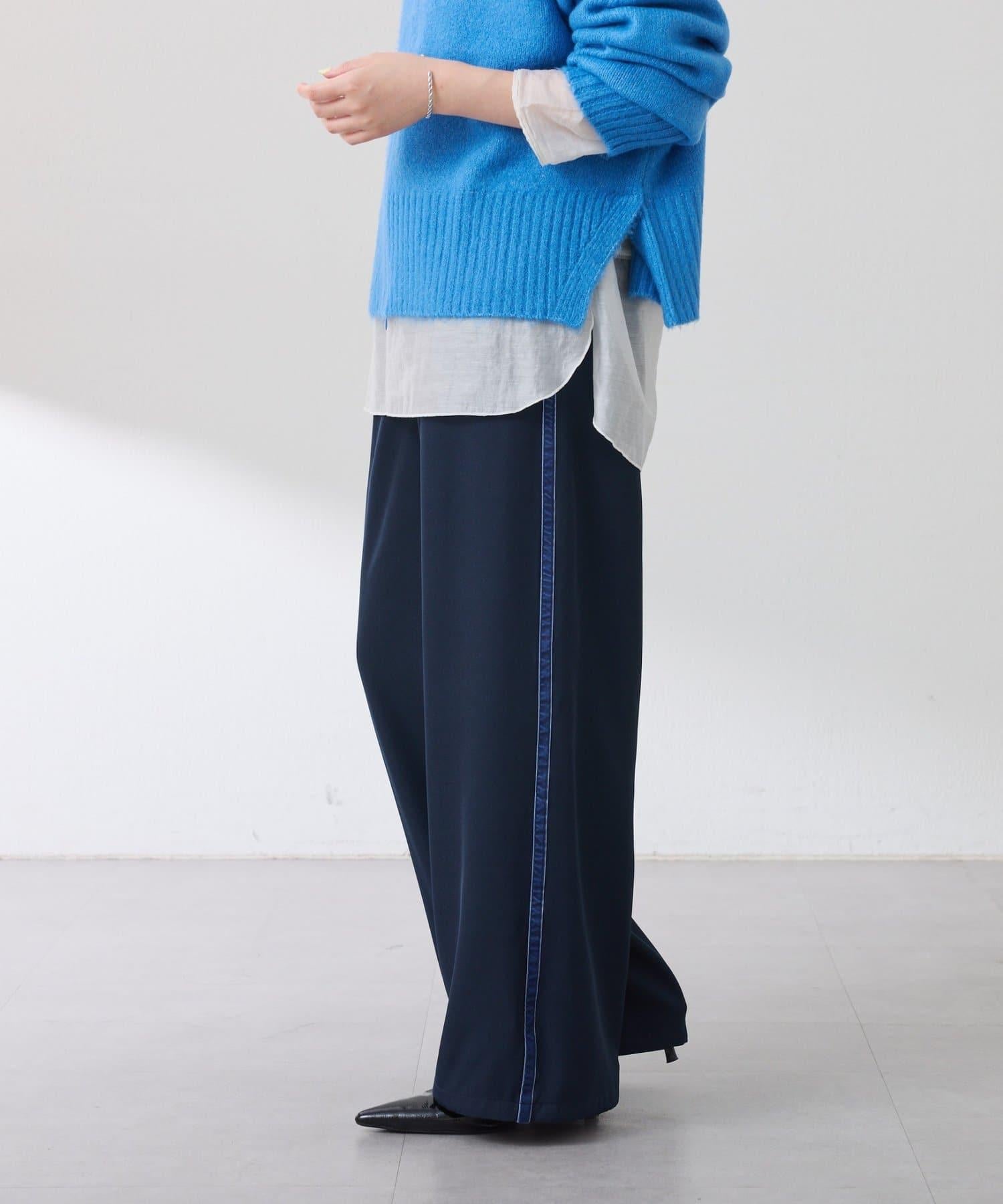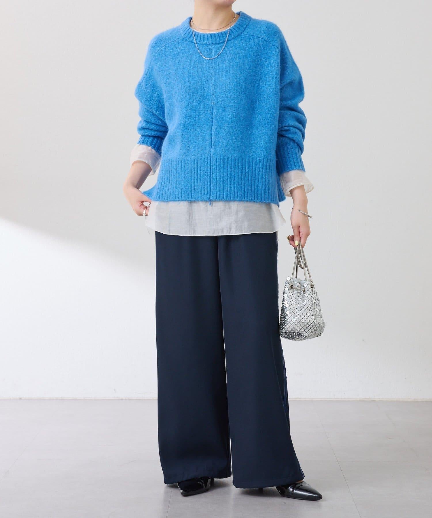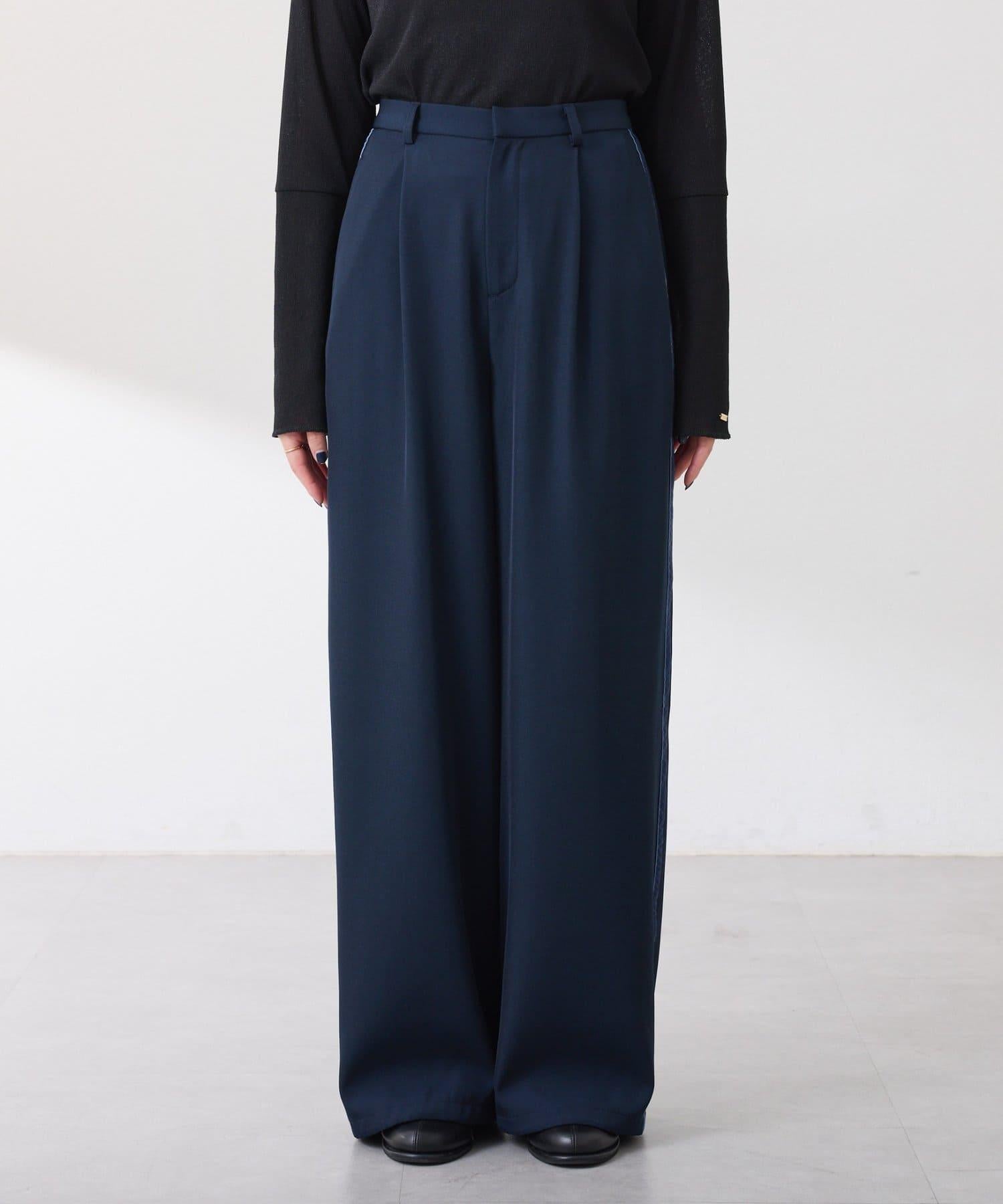 寬大的褲型輪廓優美,但由於採用了具有墜落感的面料,因此不會顯得過於寬大。